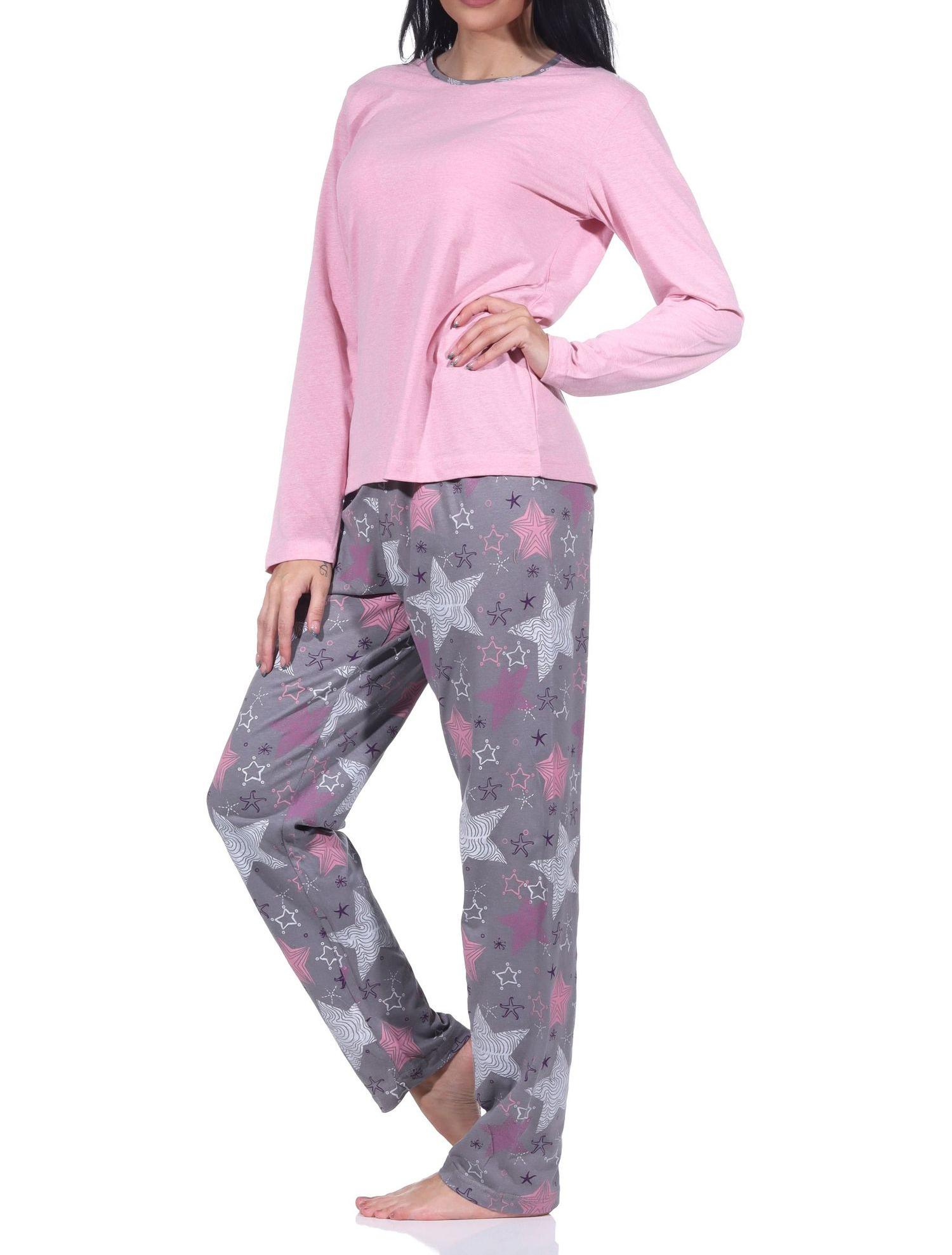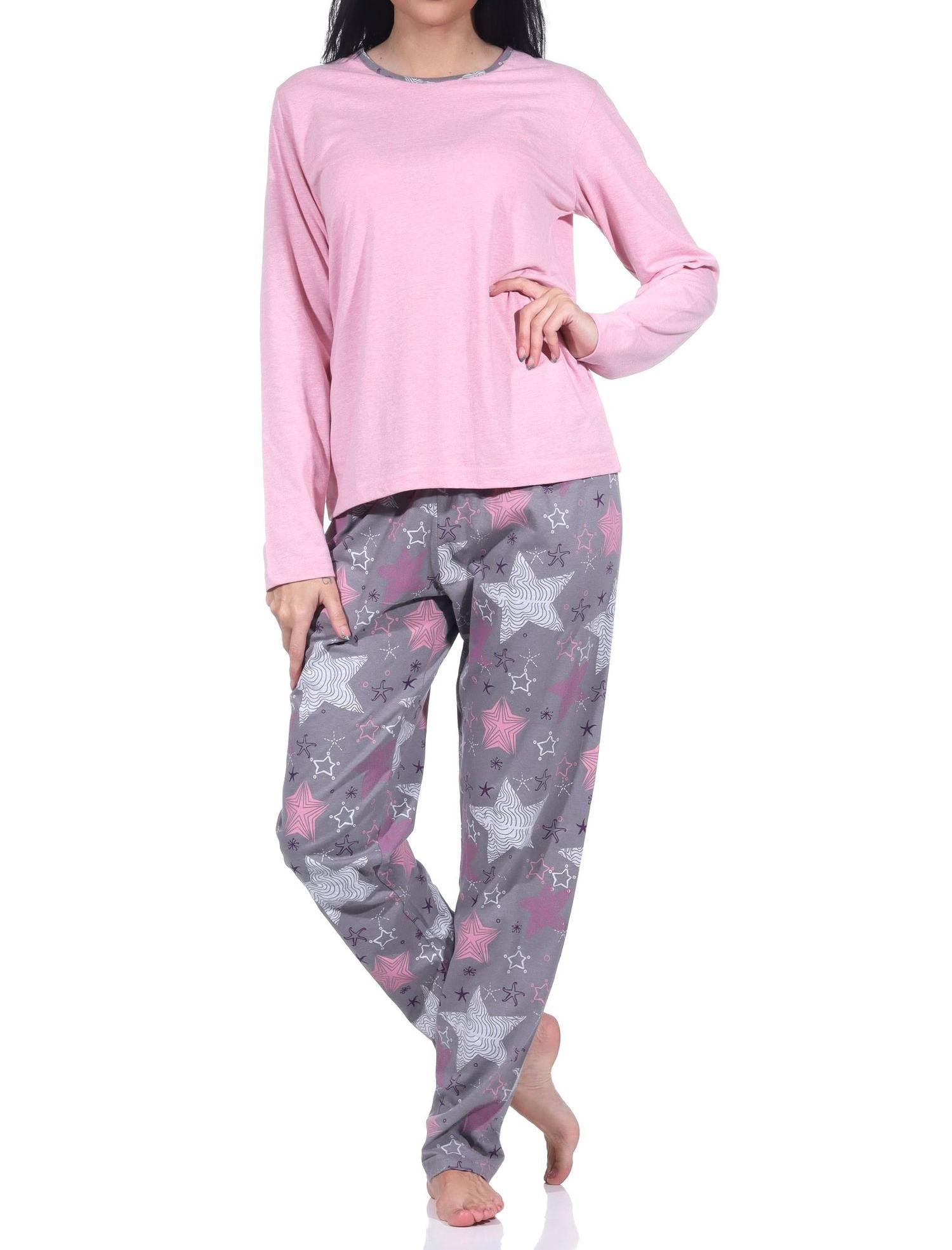 Normann Damen langarm Schlafanzug mit Pyjamahose in wunderschöner Sternenoptik