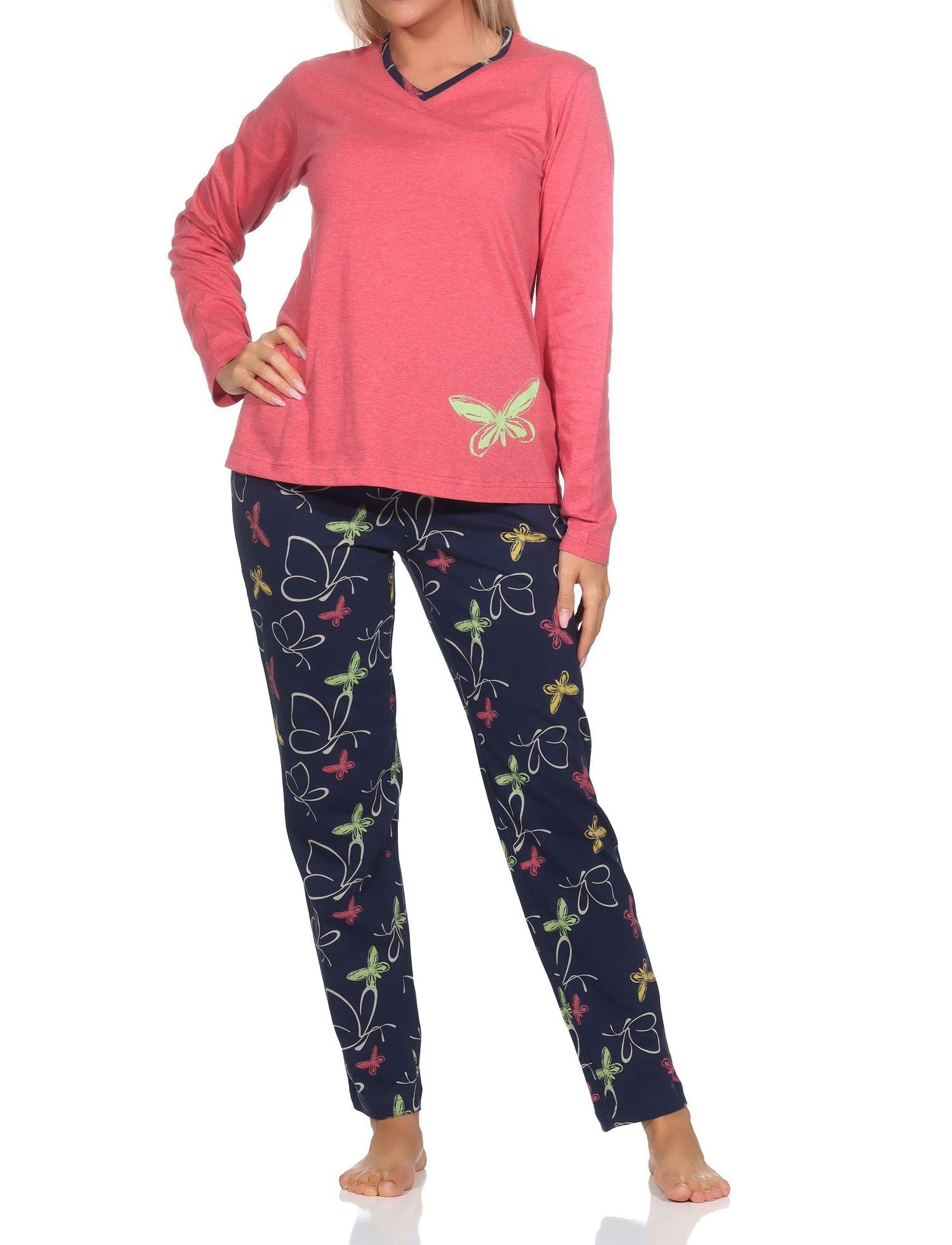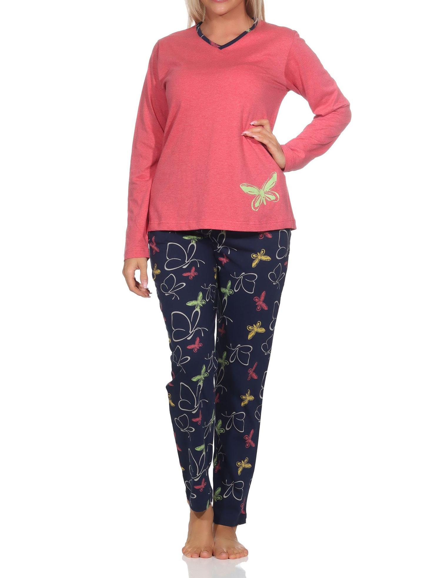 Normann Damen langarm Schlafanzug mit Schmetterling als Motiv - auch in Übergröße