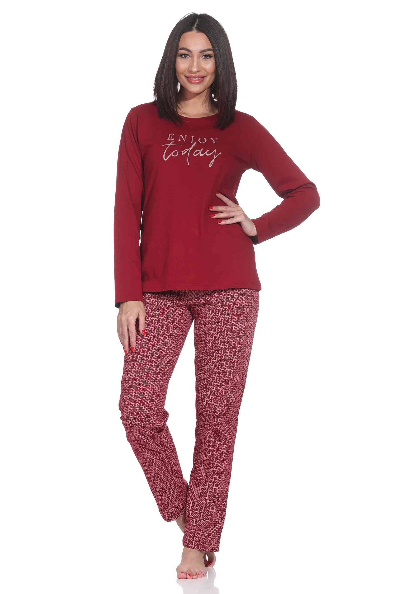 - ZEITLOS ELEGANTER LOOK: Langarm Damen Pyjama im zeitlos eleganten Look aus weichem, bequemen und elastischen Jersey Stoff, Oberteil mit stilvollen Frontprint