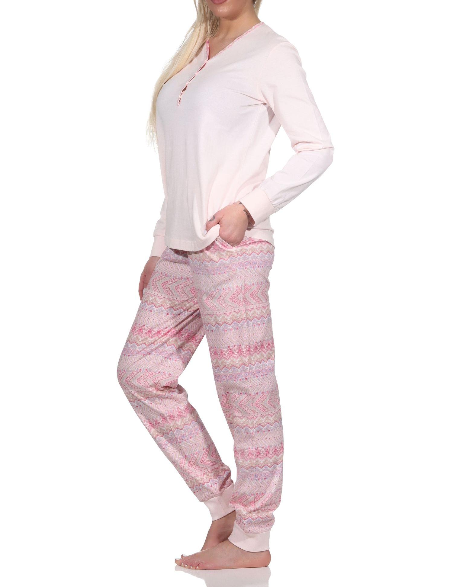 Normann Damen Langarm Schlafanzug Pyjama mit Bündchen im Ethnolook - auch in Übergrössen