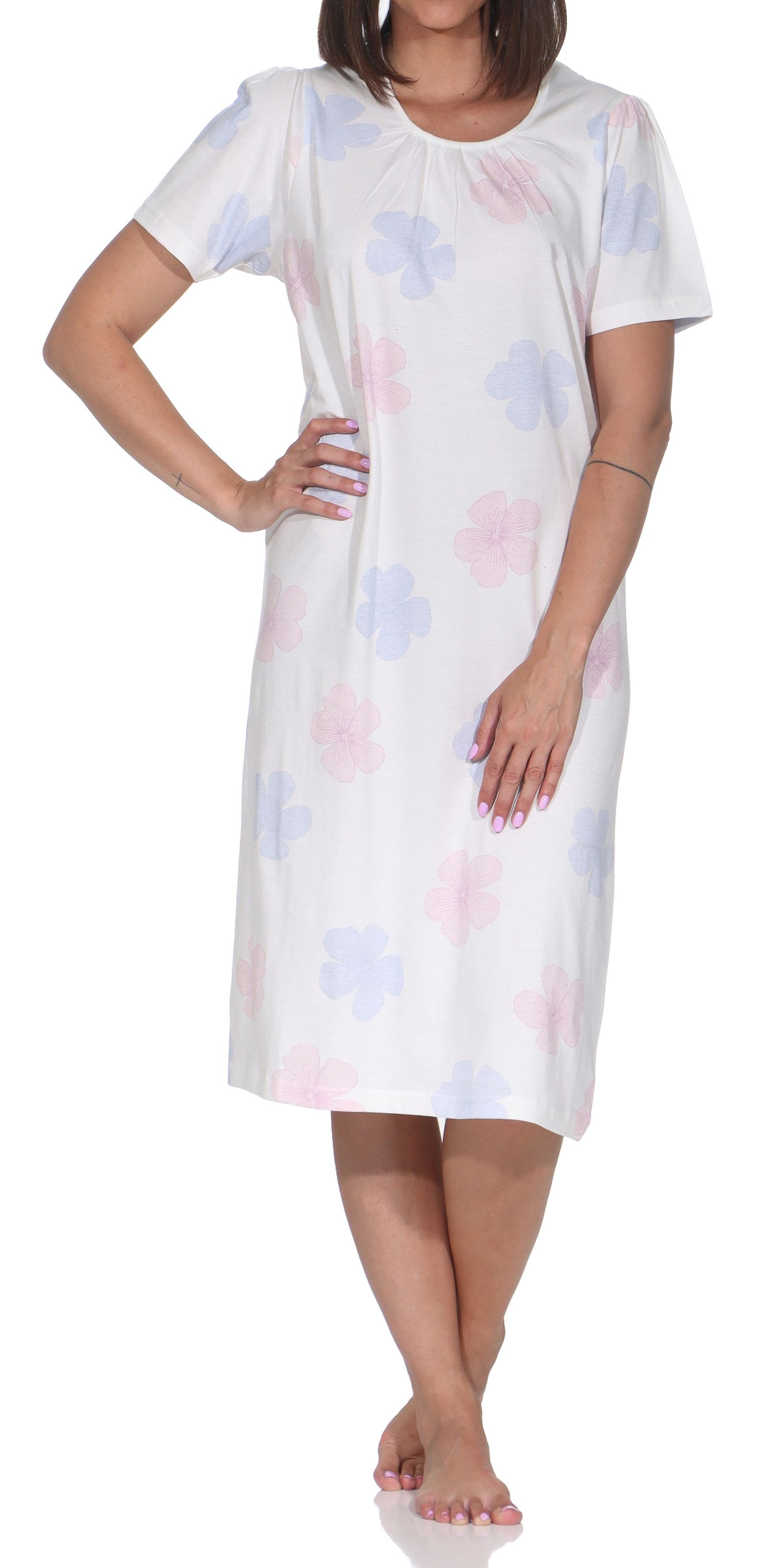 Normann Damen Nachthemd kurzarm – Femininer Floral-Print & purer Baumwoll-Komfort