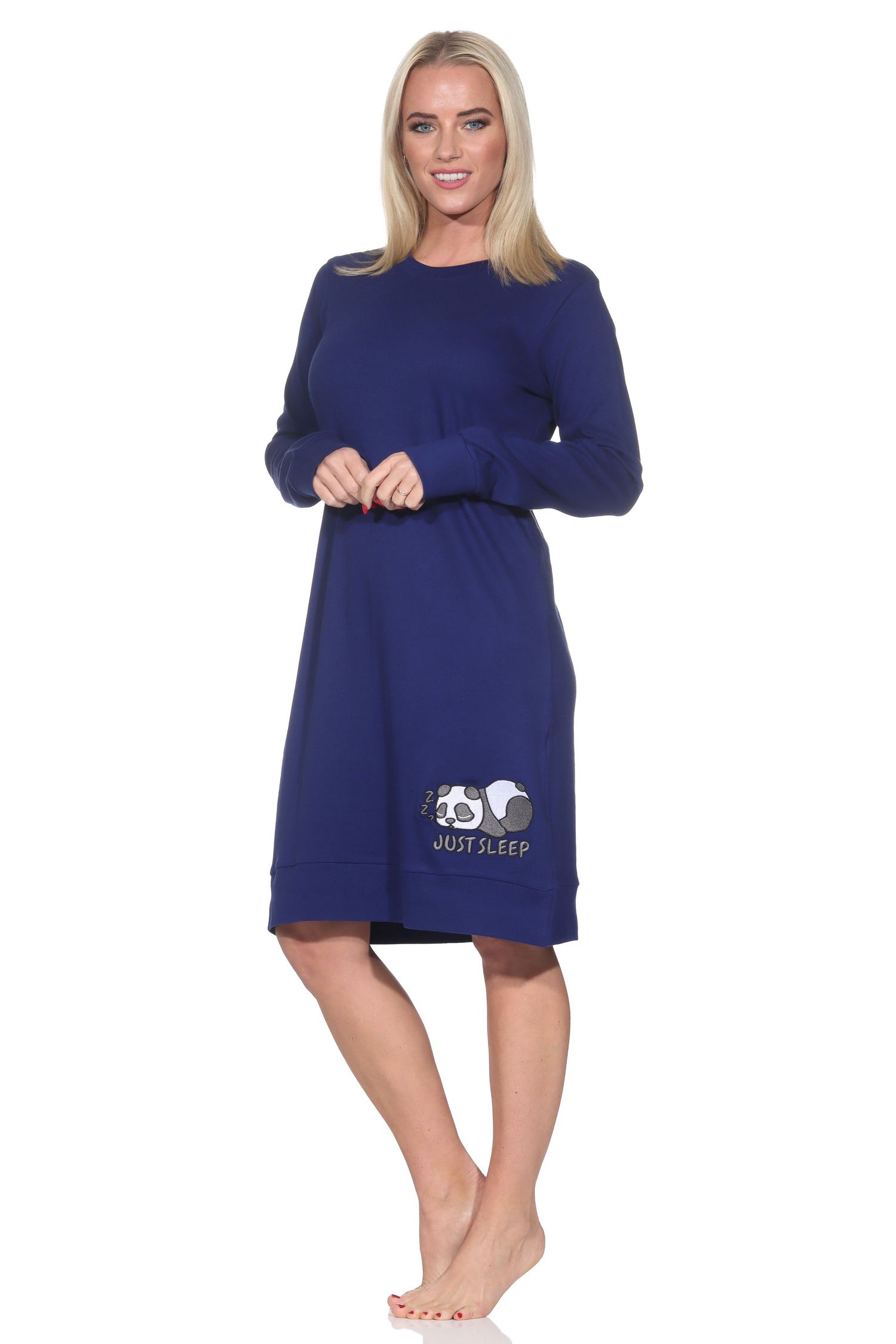 Normann Damen Nachthemd mit Bündchen in Kuschel Interlock Qualität mit süssen Tiermotiv
