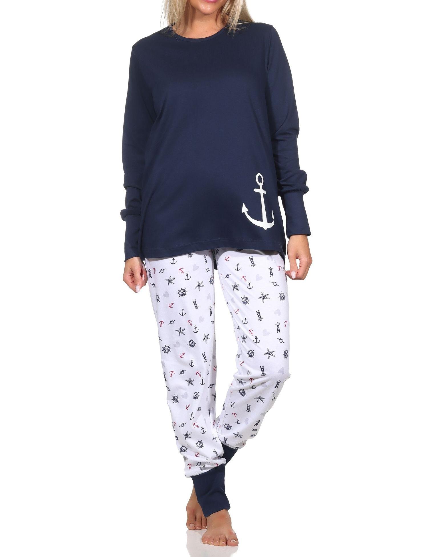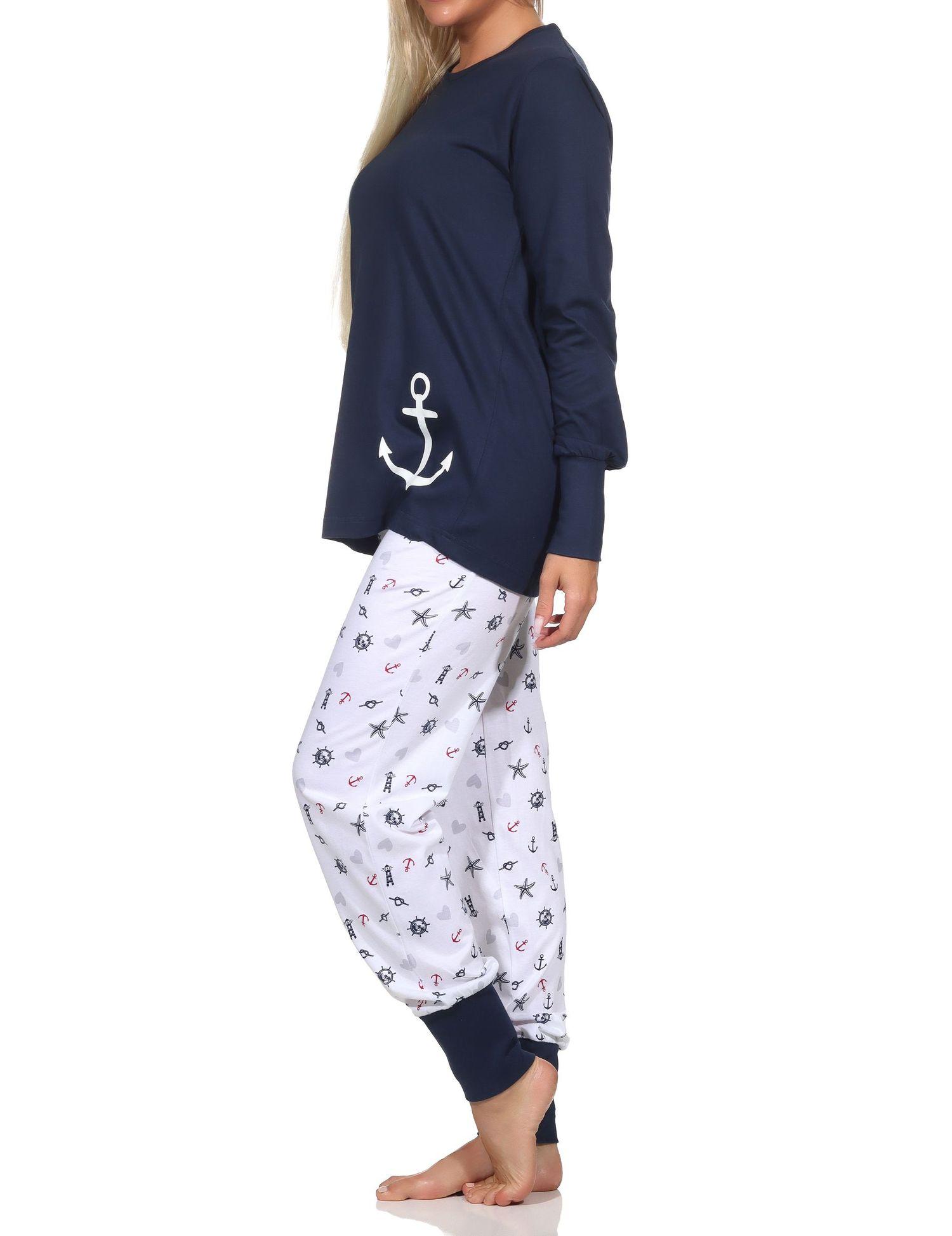 - MARITIME OPTIK: Langärmliger Damen Pyjama mit Bündchen in wunderschöner maritimer Optik wie Leuchtturm oder Anker als Motiv