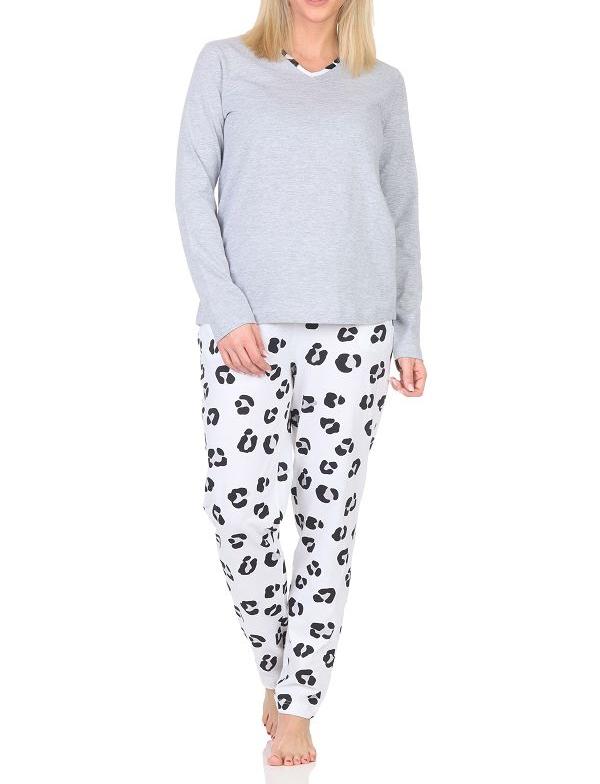 Normann Damen Schlafanzug lang Pyjama aus weichem Jersey mit Tiermotiv