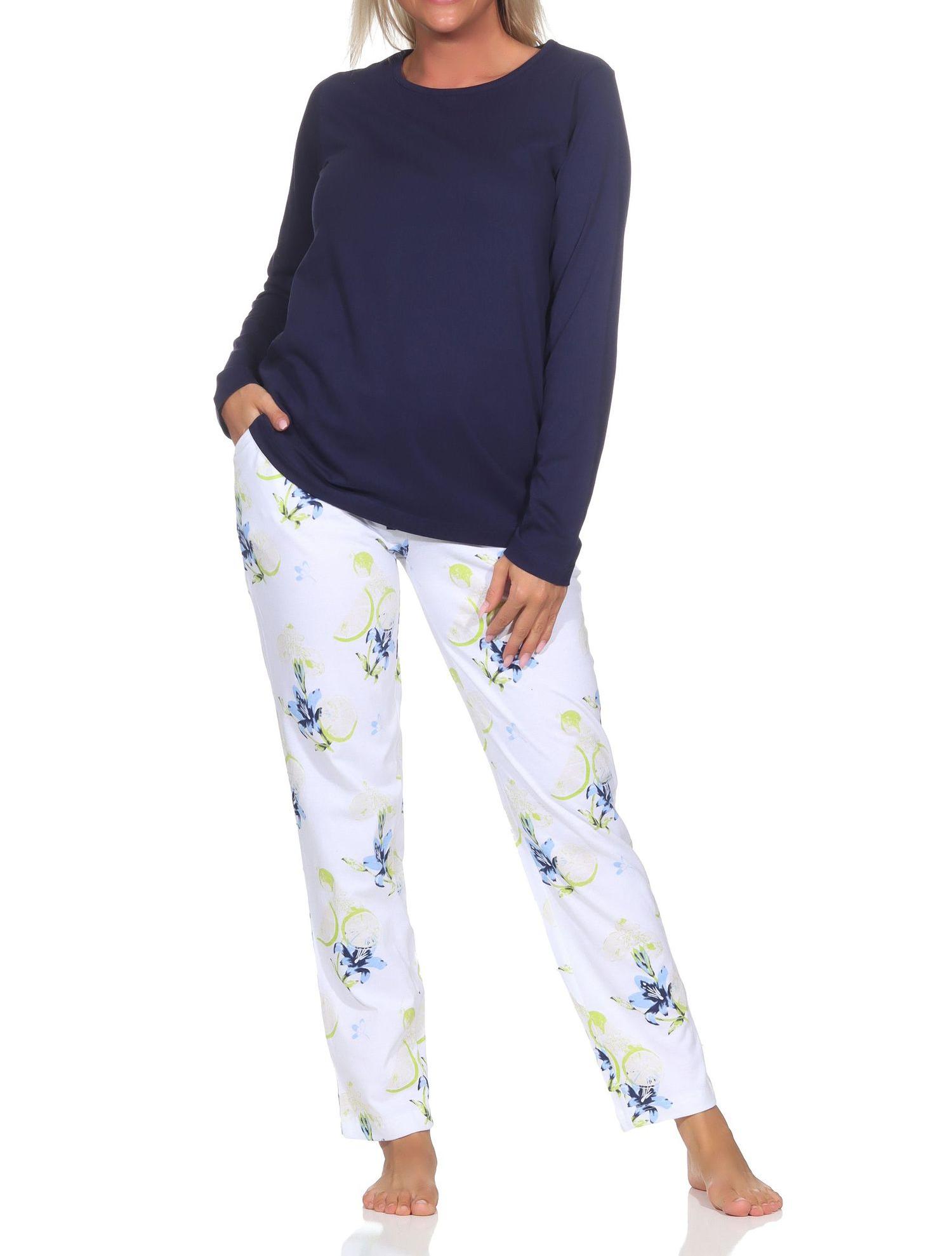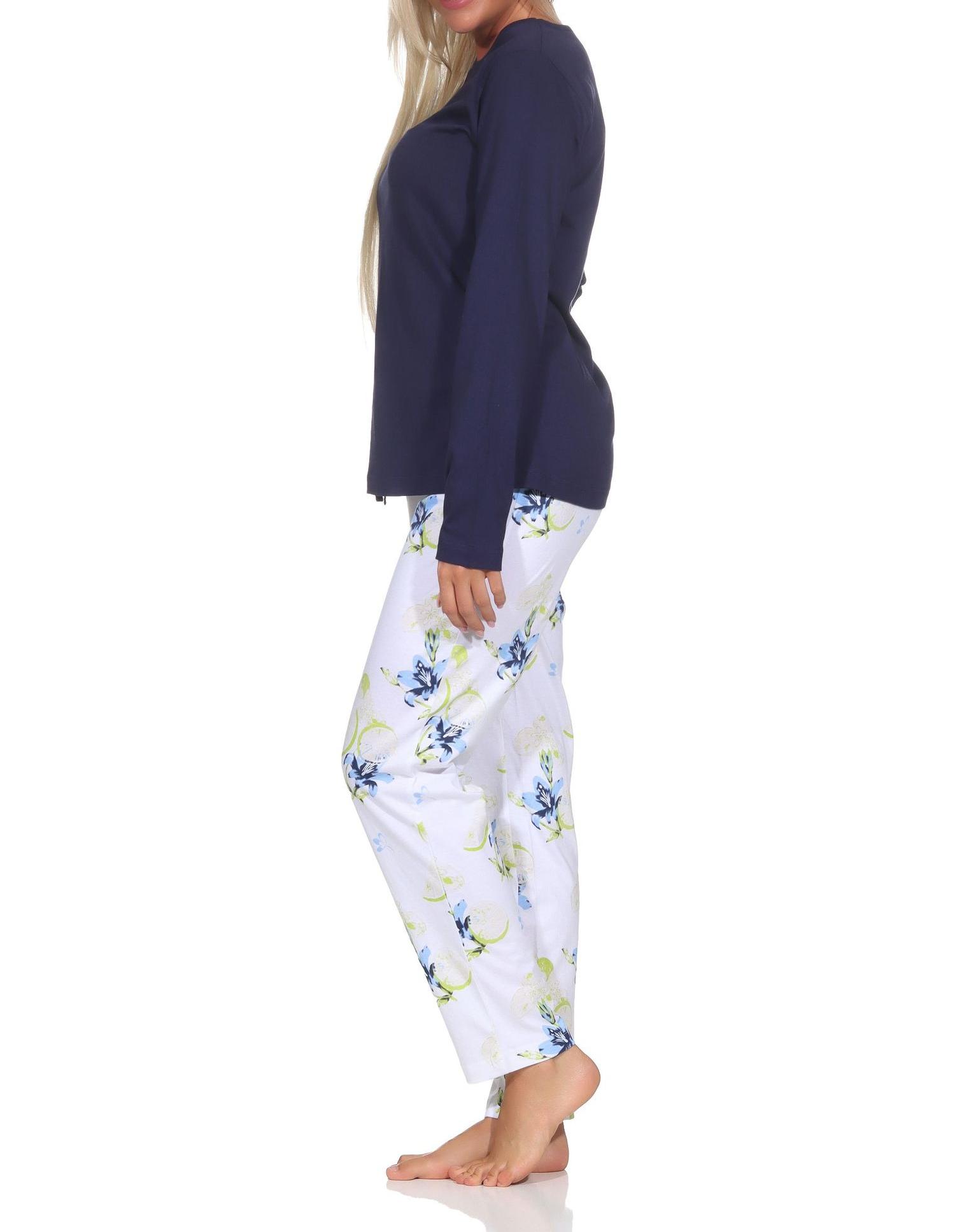 Normann Damen Schlafanzug lang, Pyjamahose mit floralen Print - auch in Übergrößen