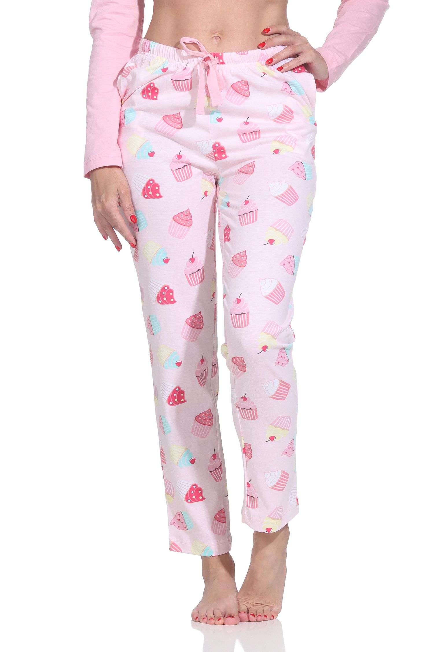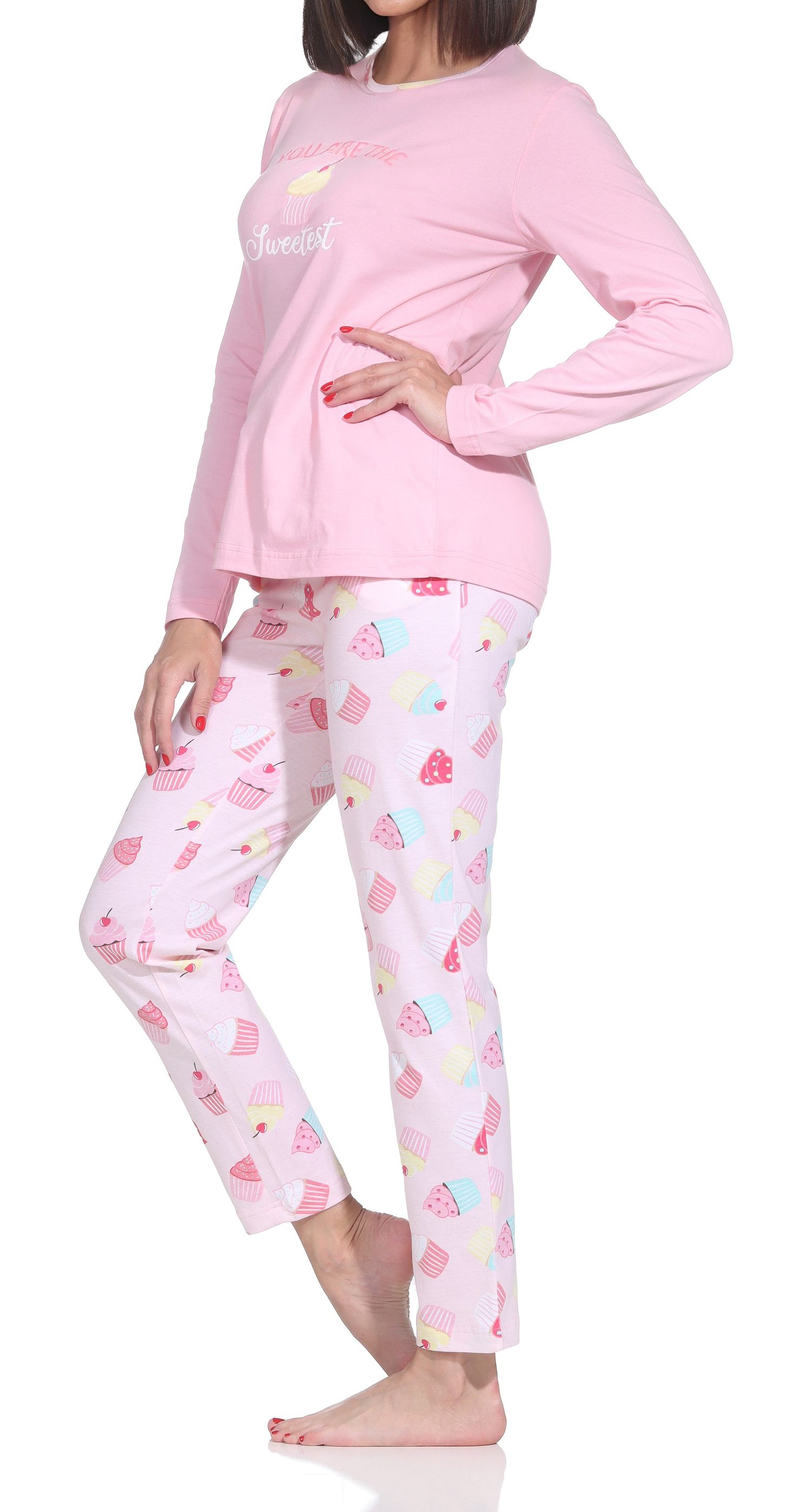 Normann Damen Schlafanzug lang – Süßes Cupcake-Motiv – auch in Übergrößen