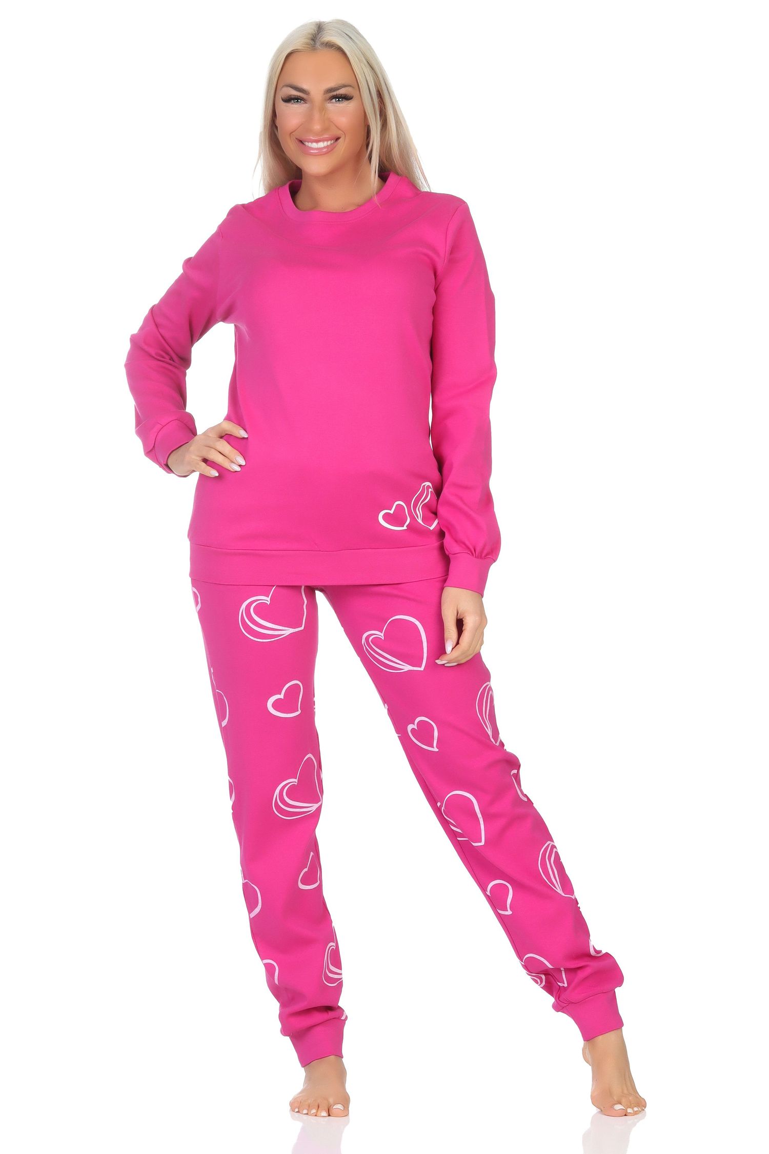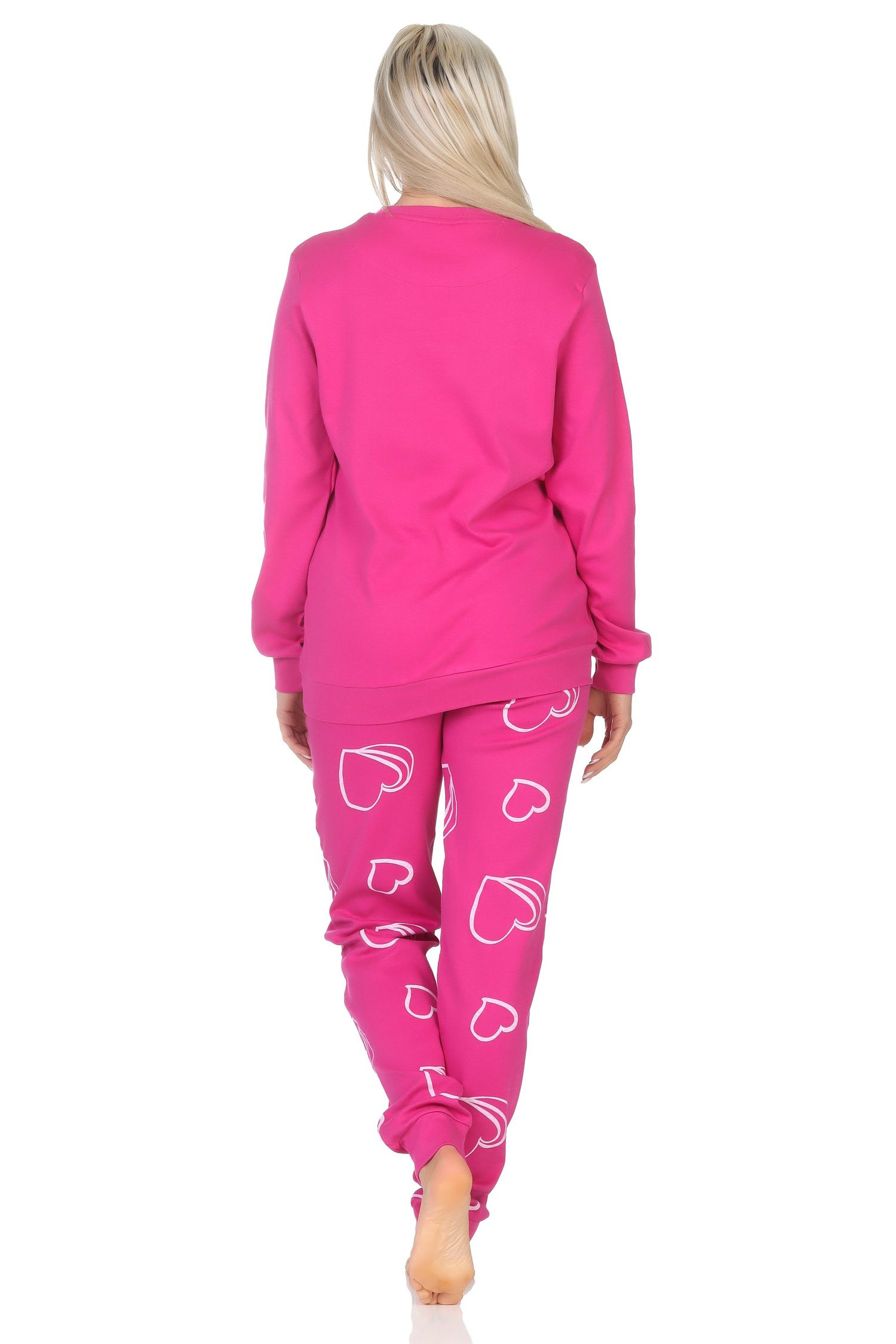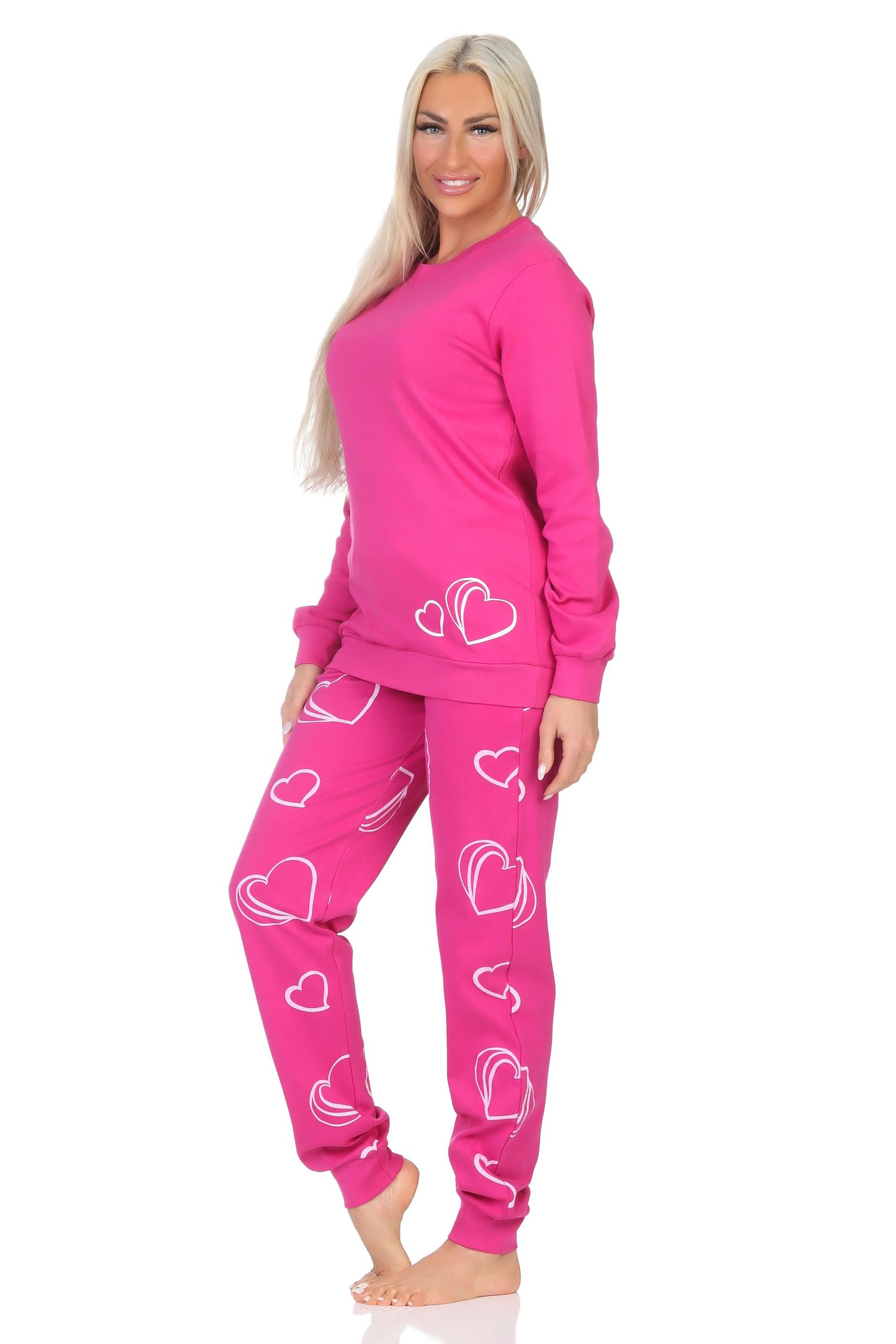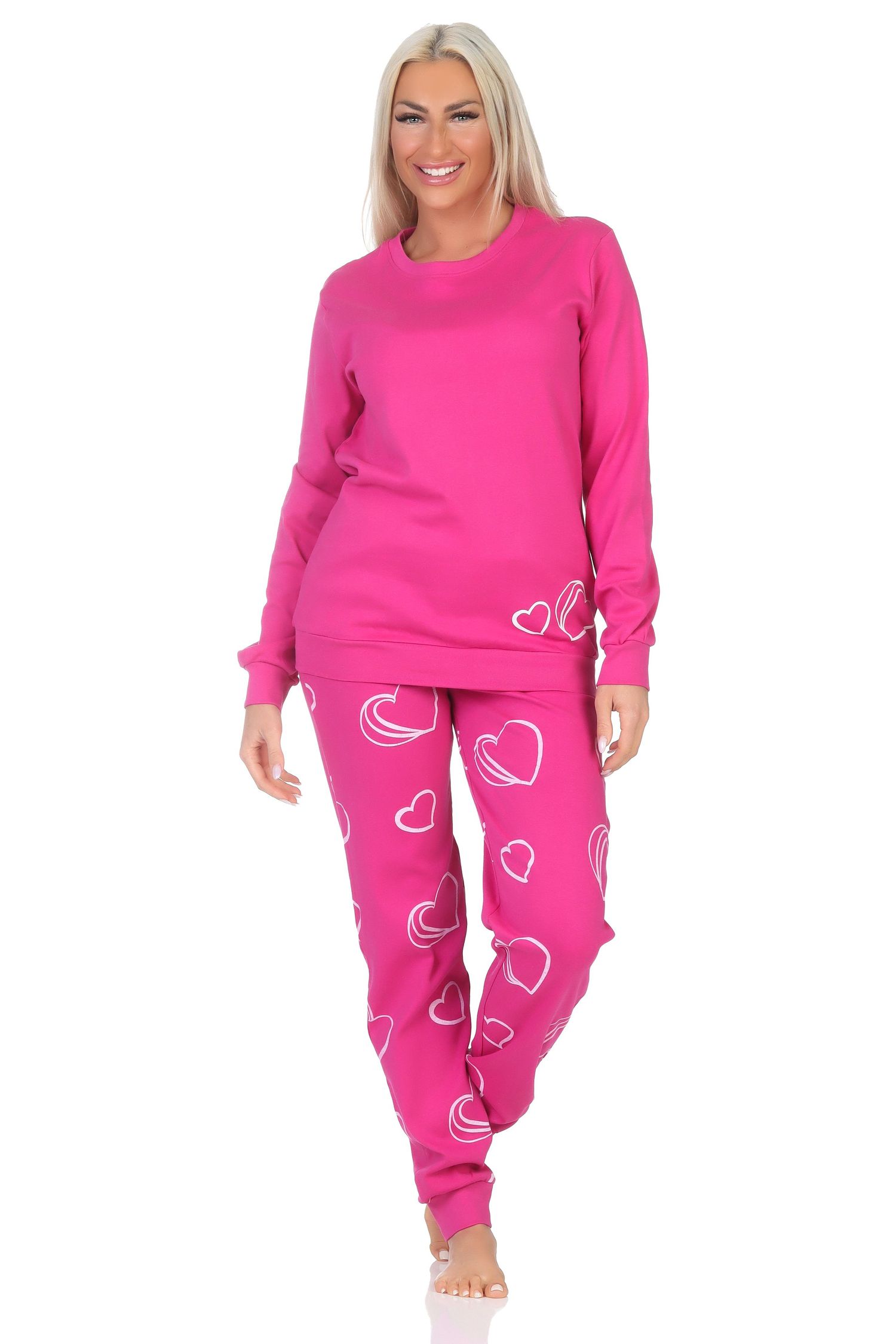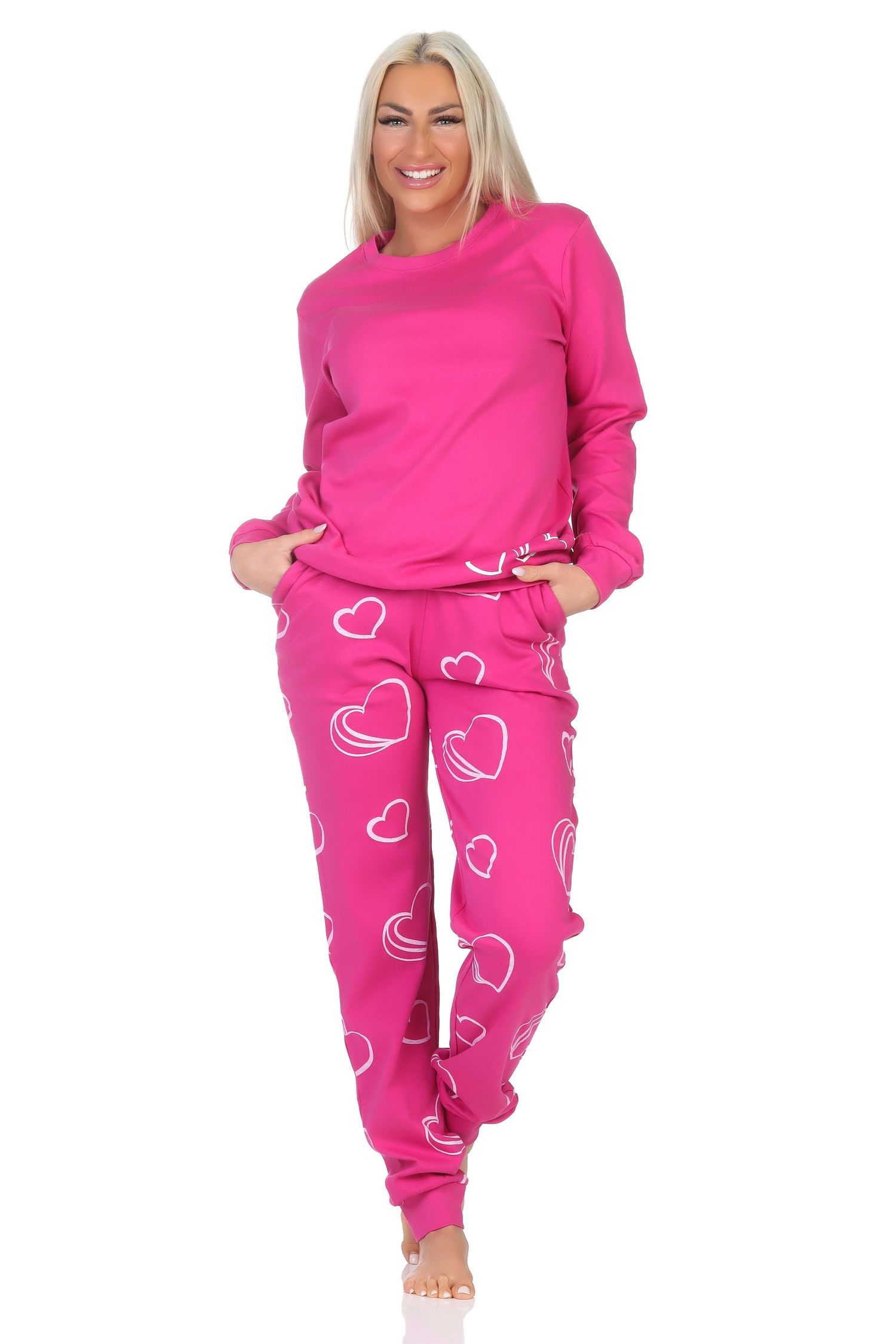 Normann Damen Schlafanzug langarm in Kuschel Interlock Qualität mit Bündchen in Herz Optik
