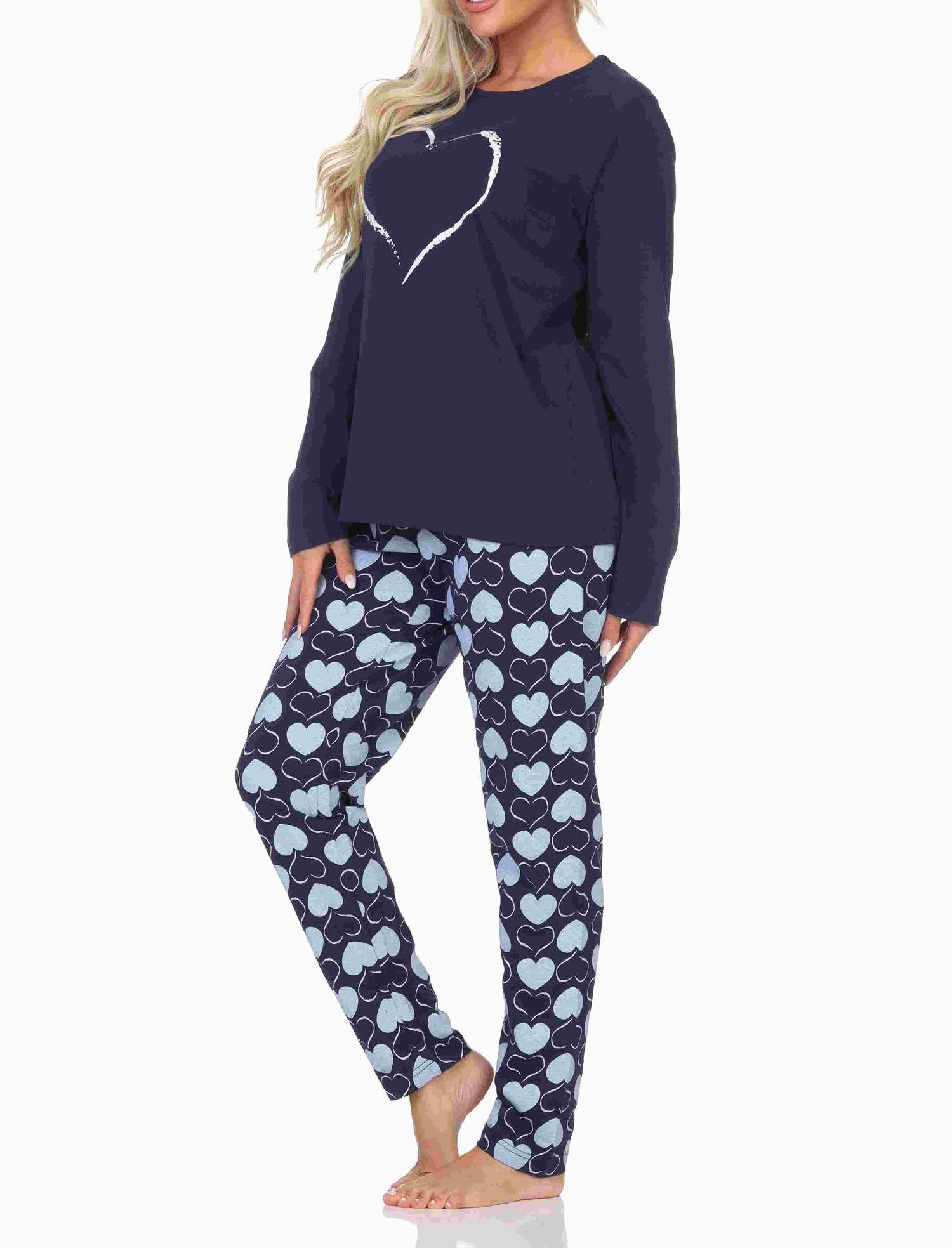 - HERZ PUNKTE OPTIK: Langarm Damen Pyjama in einer wunderschönen eleganten Optik, Pyjamahose mit Herz oder Punkte Optik aus weichem, bequemen und elastischen Jersey Stoff