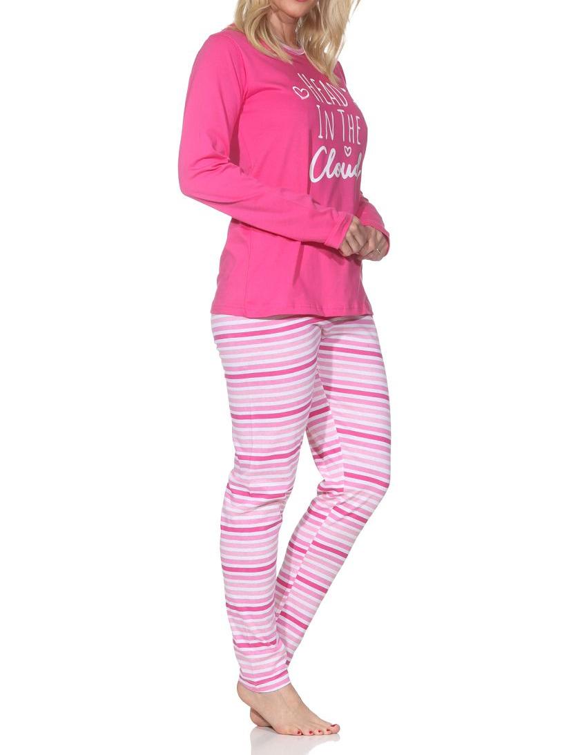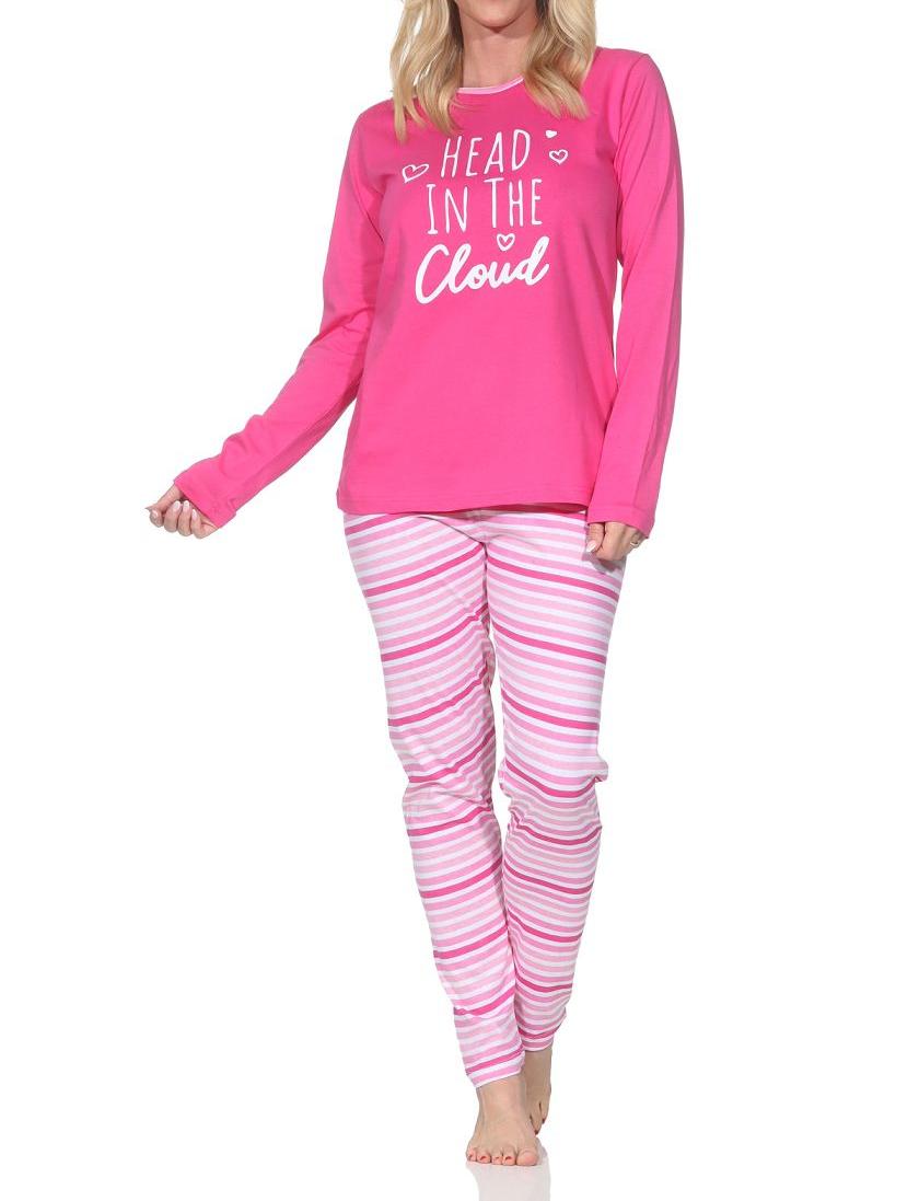 Normann Damen Schlafanzug langarm Pyjama mit Pyjamahose in Streifenoptik
