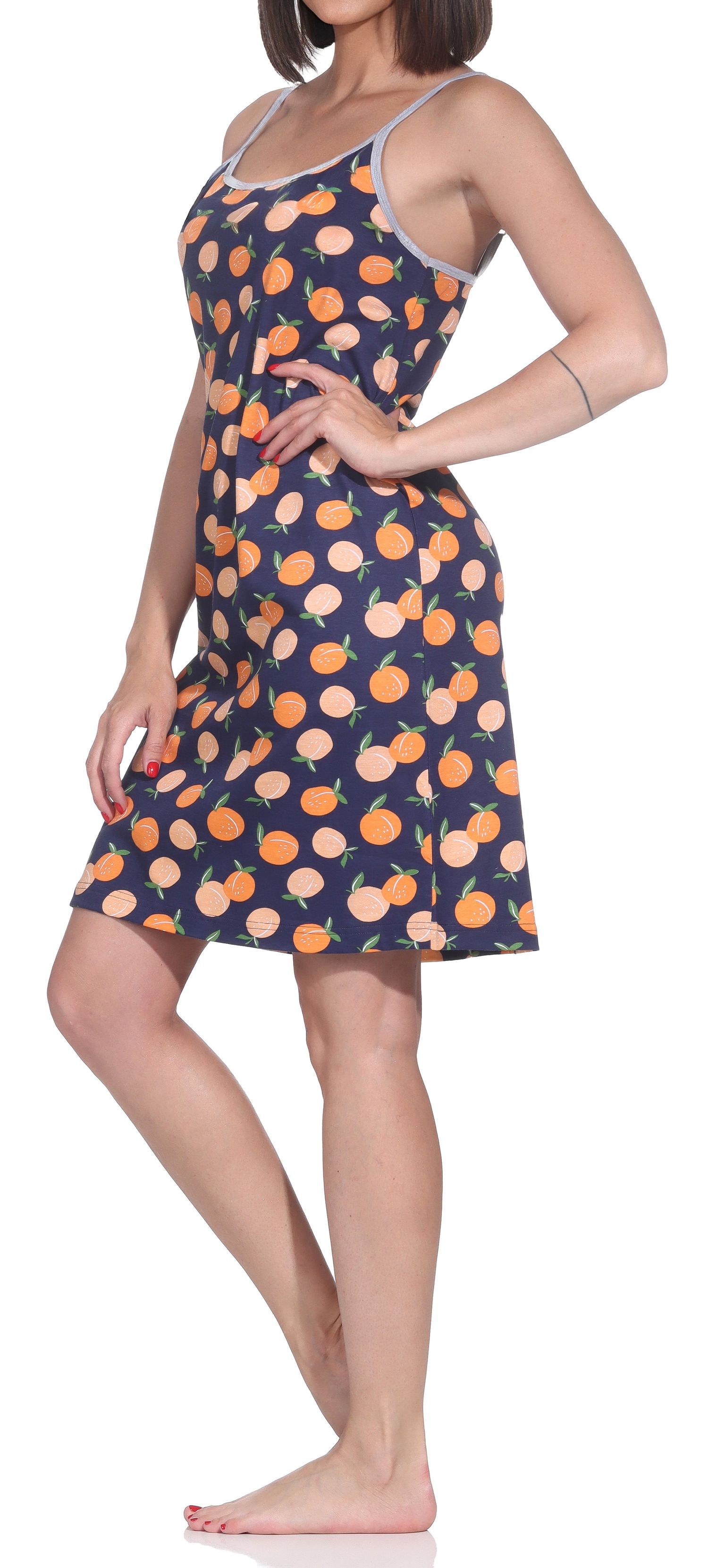 Normann Damen Spaghetti-Träger Nachthemd – Sommerliche Prints & 100% Baumwolle