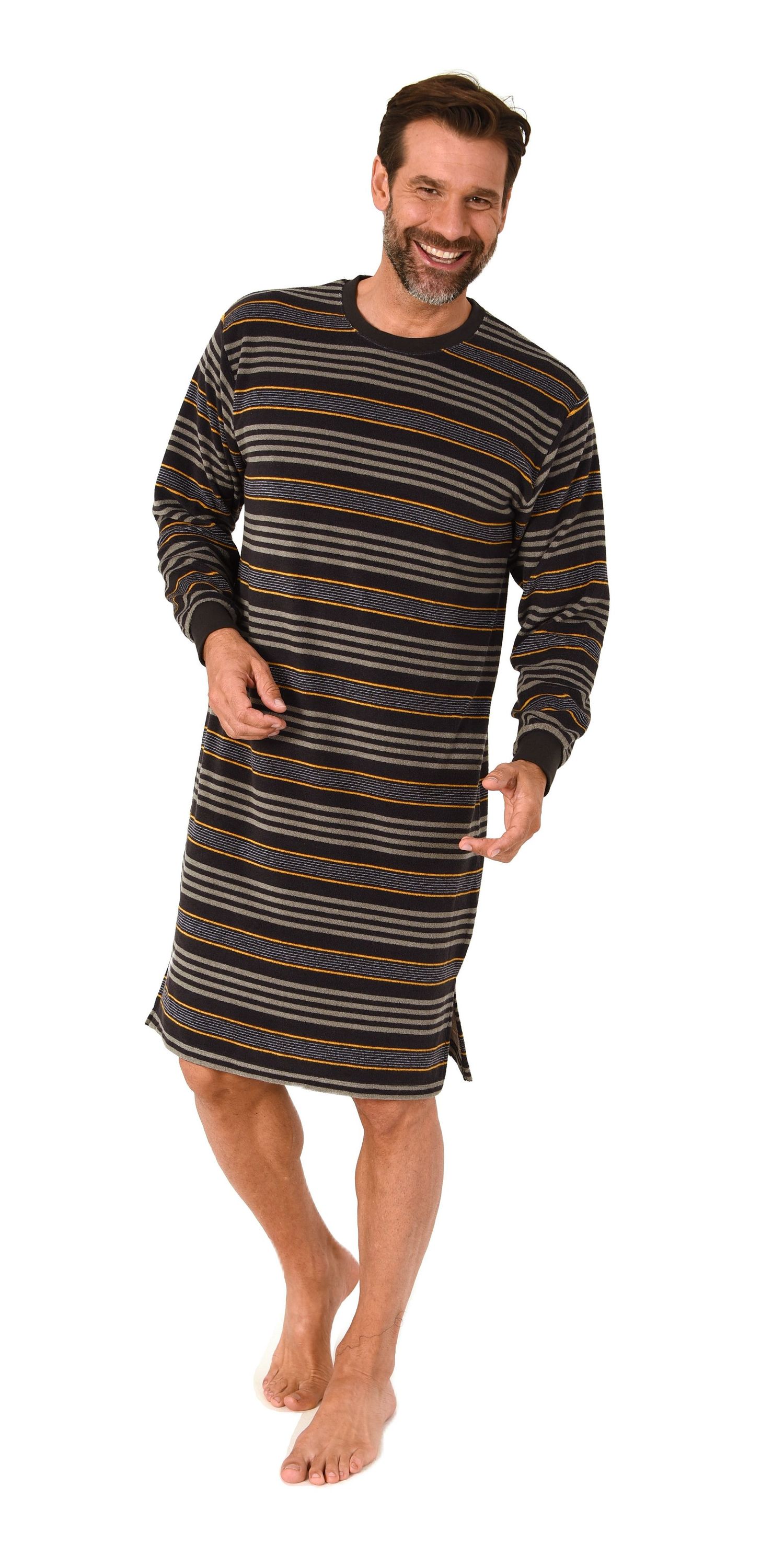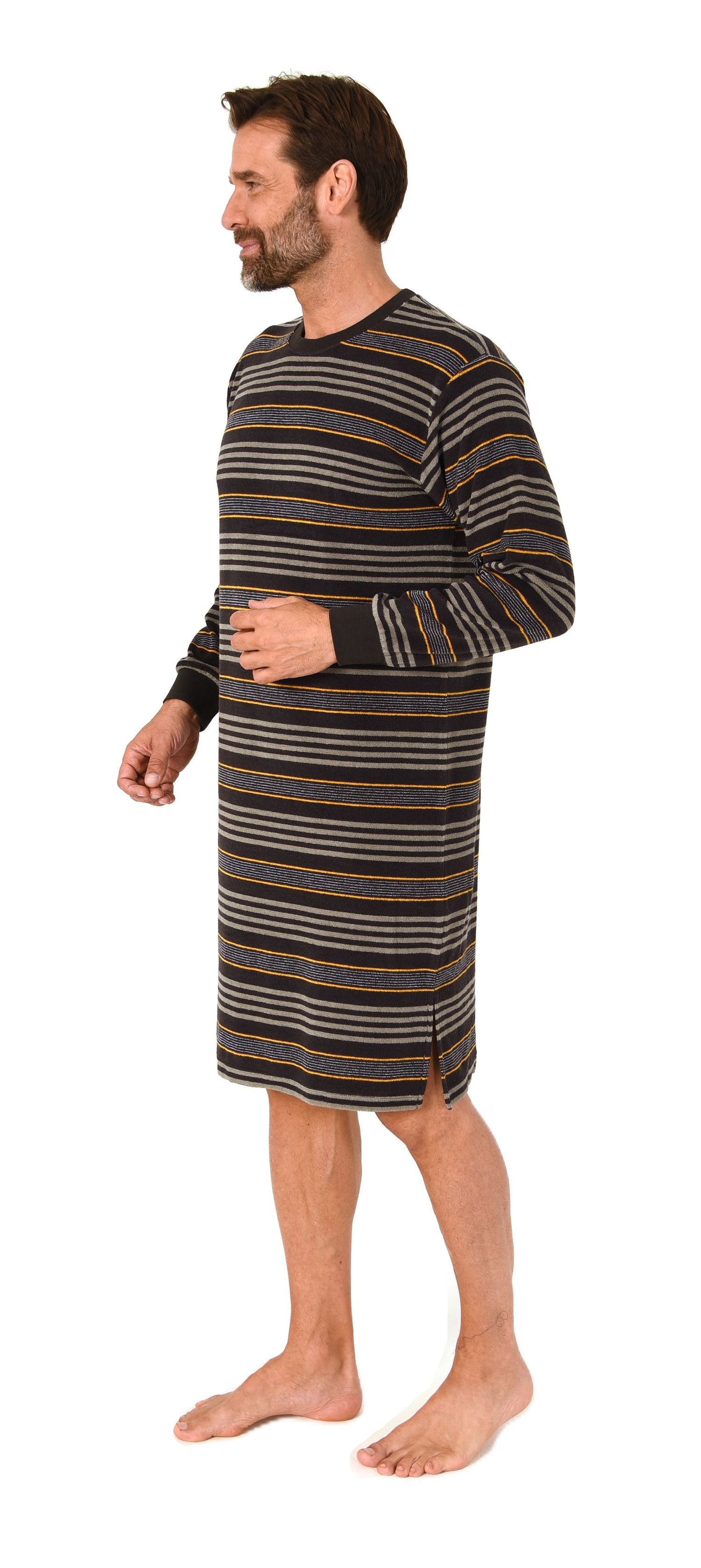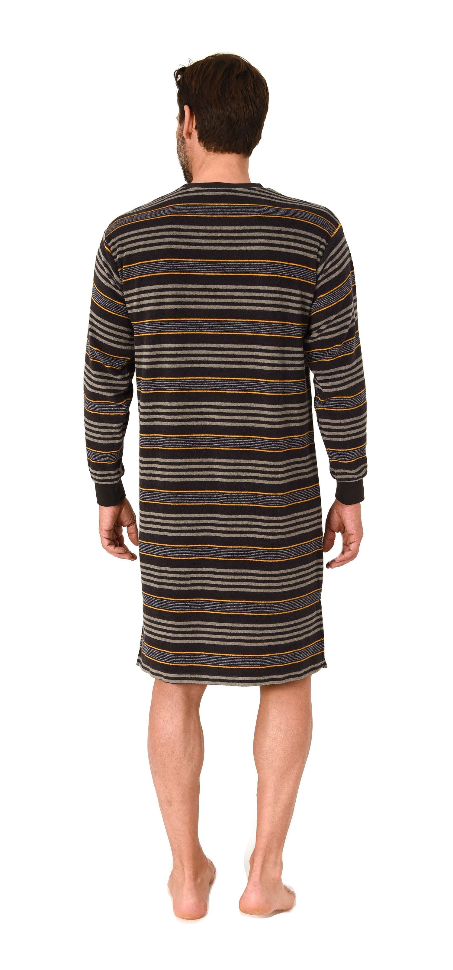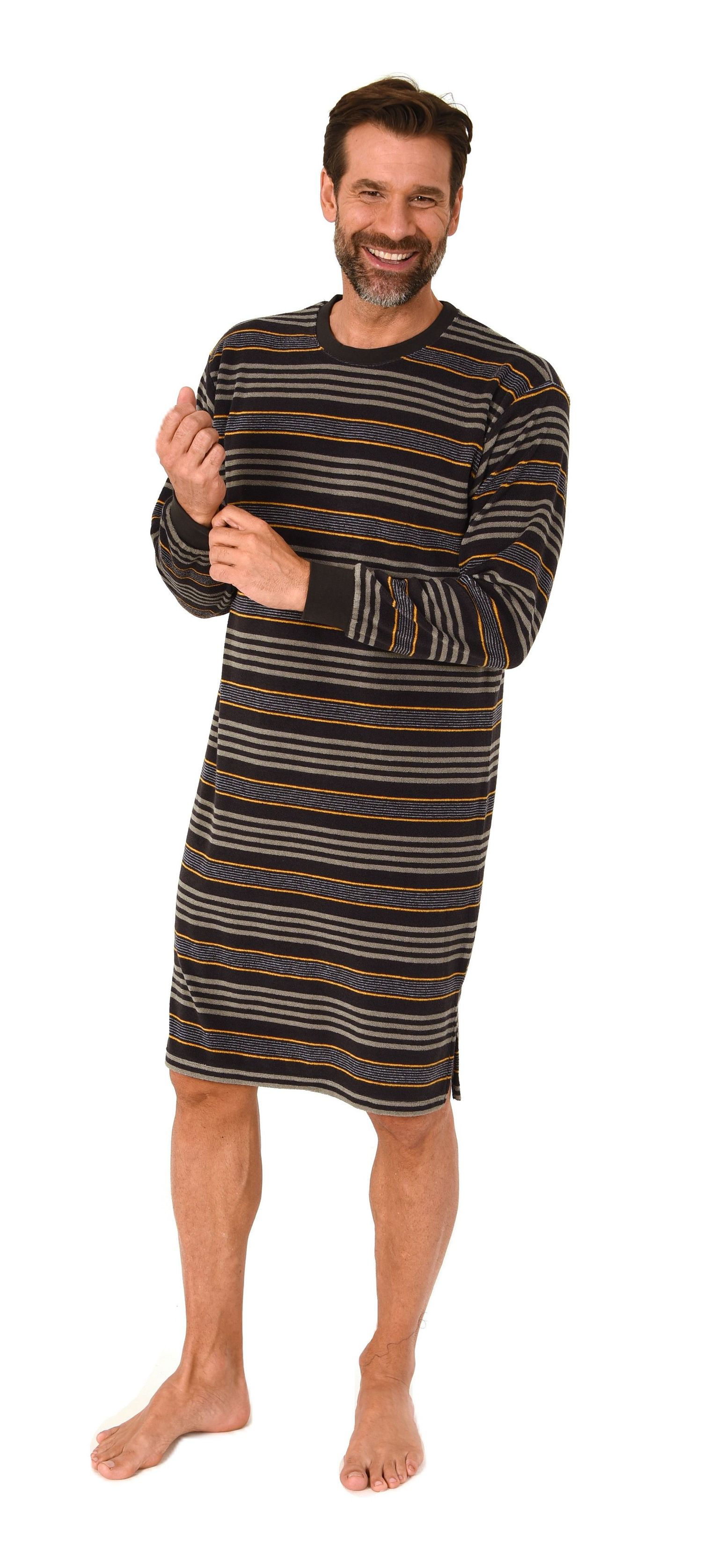 Normann Herren Frotte langarm Nachthemd mit Bündchen - auch in Übergrößen – Streifenoptik