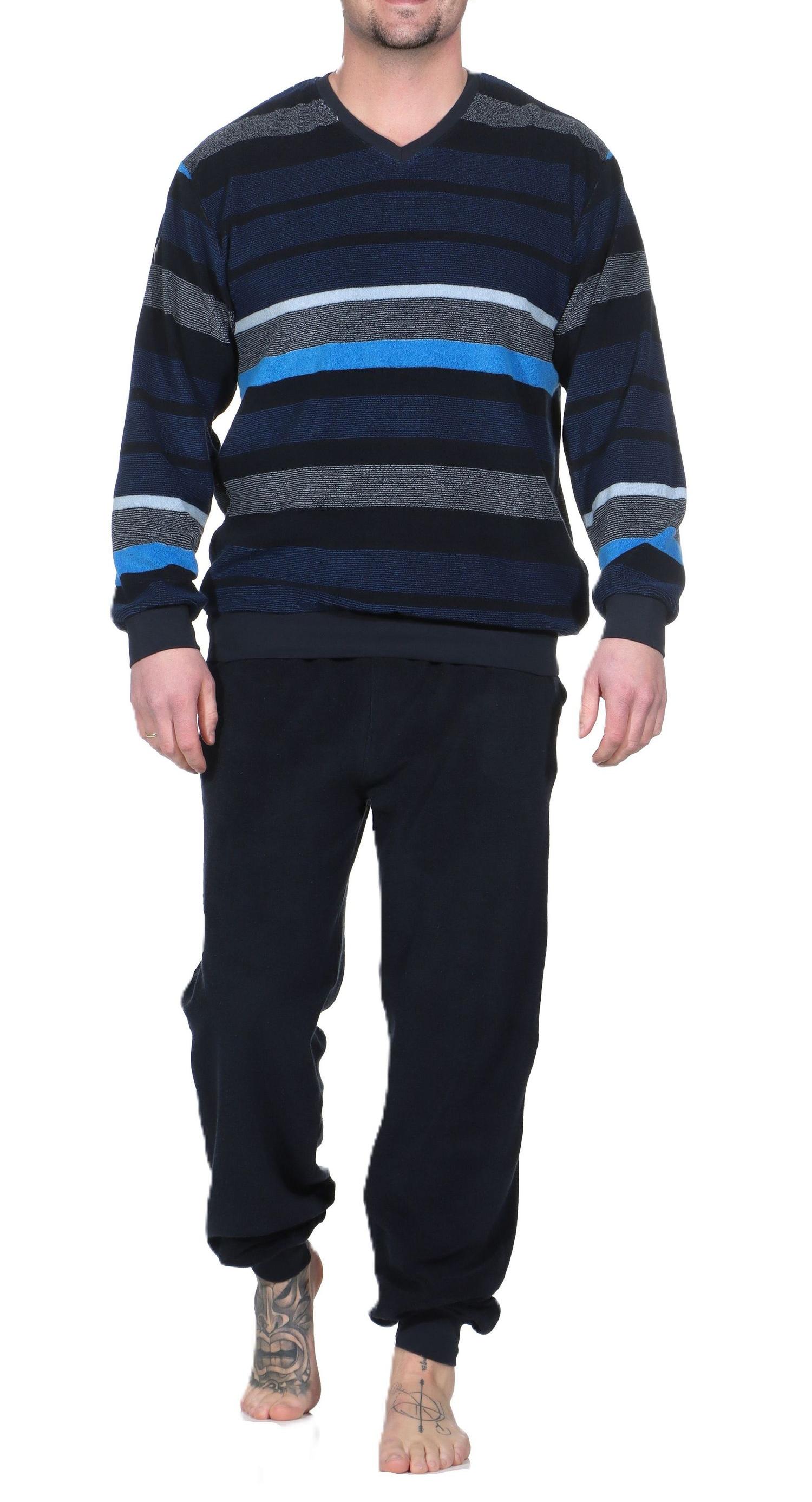 Normann Herren Frottee langarm Schlafanzug Pyjama in eleganter Optik – auch in Übergröße
