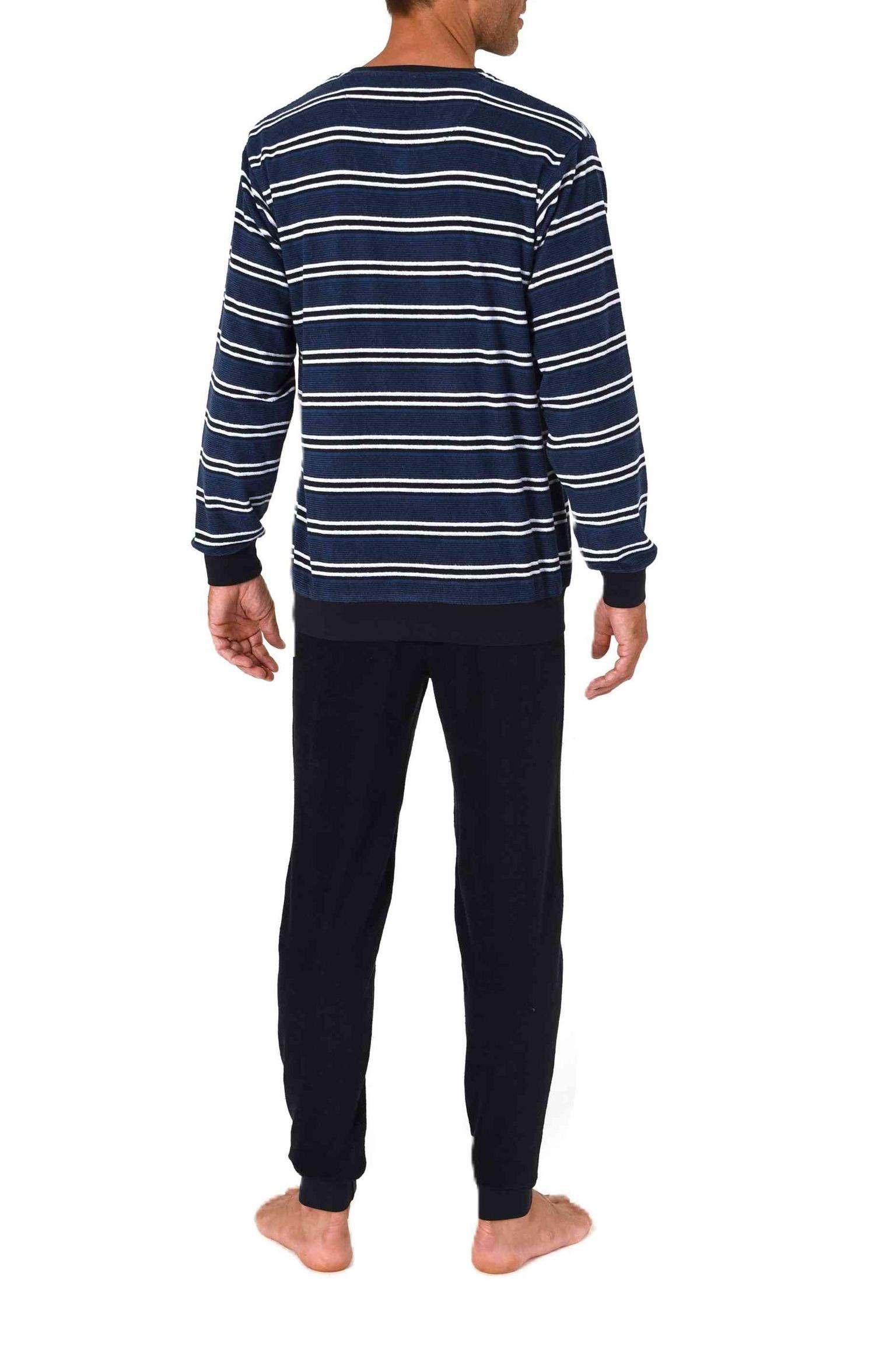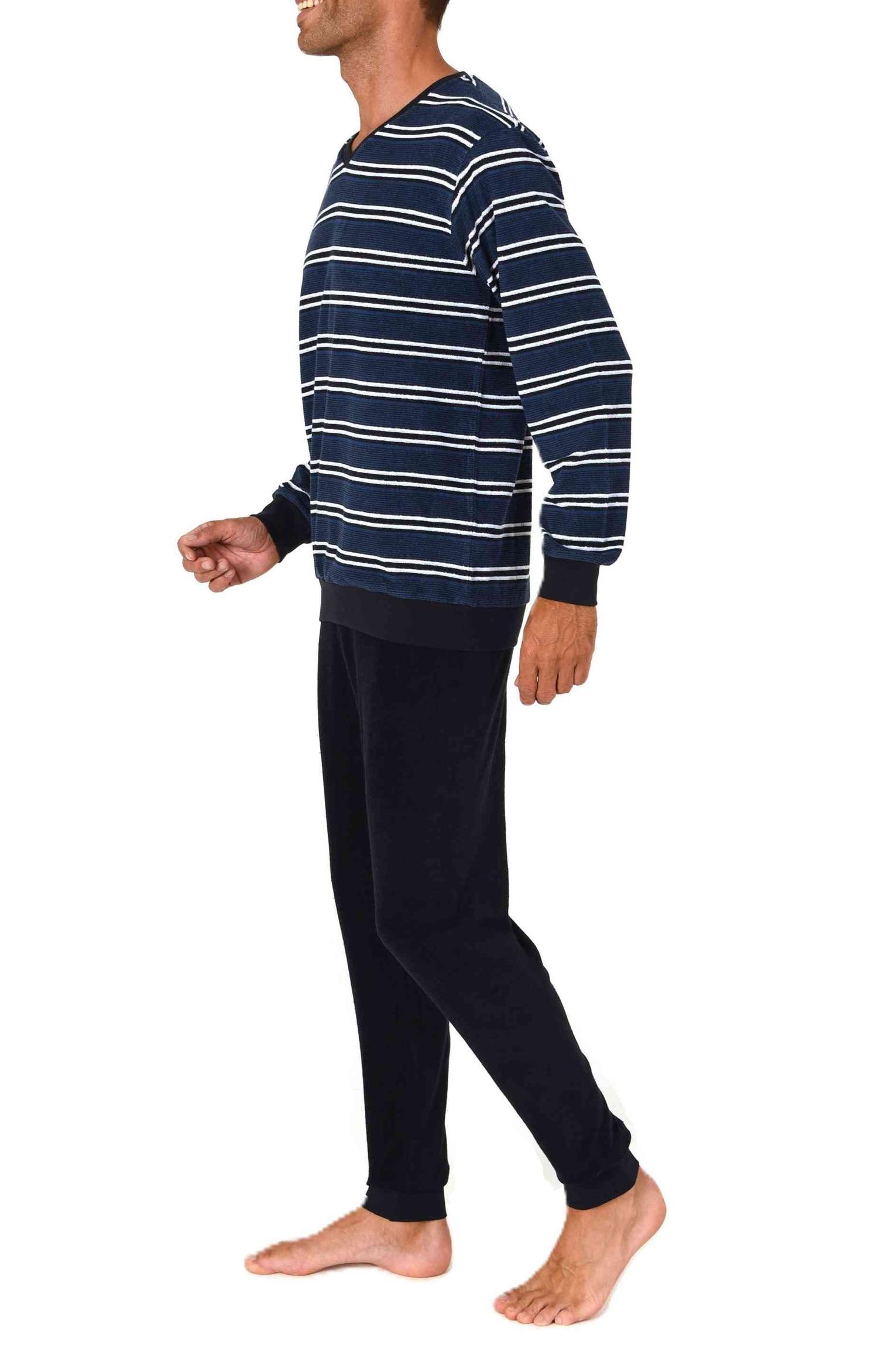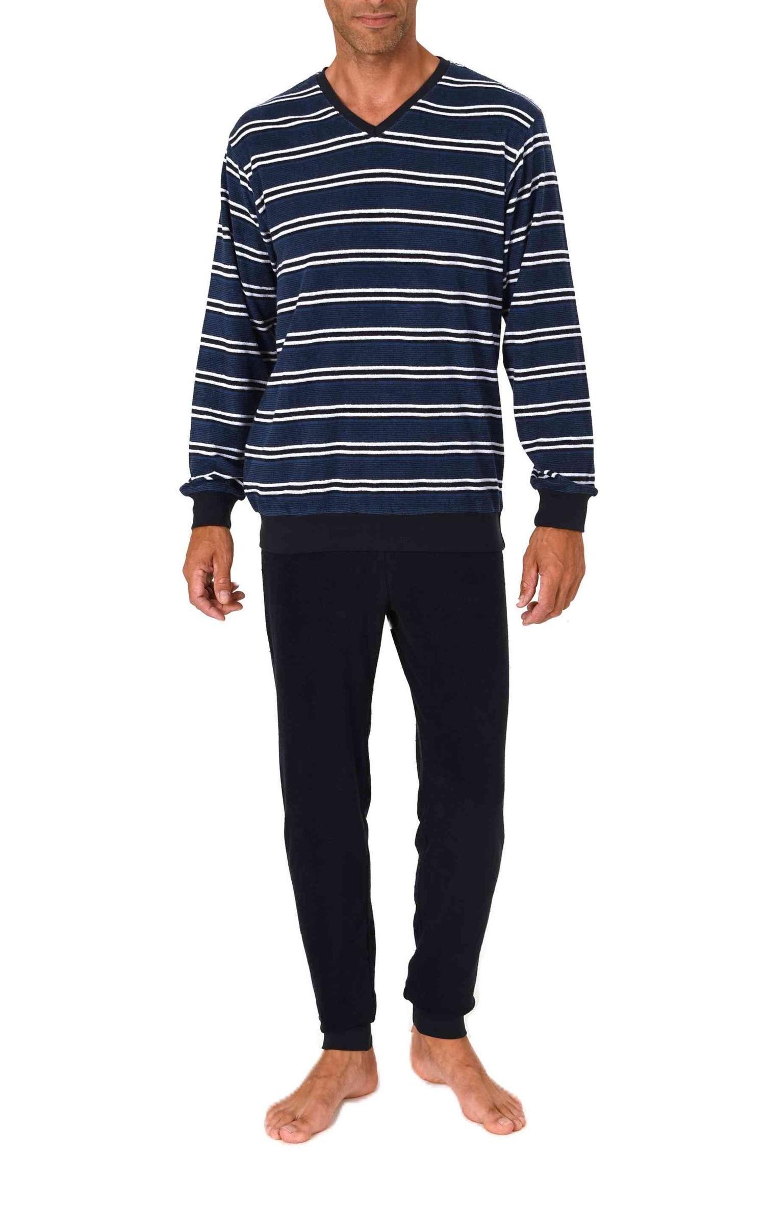 Normann Herren Frottee Schlafanzug lang in Streifenoptik mit Bündchen - auch in Übergröße