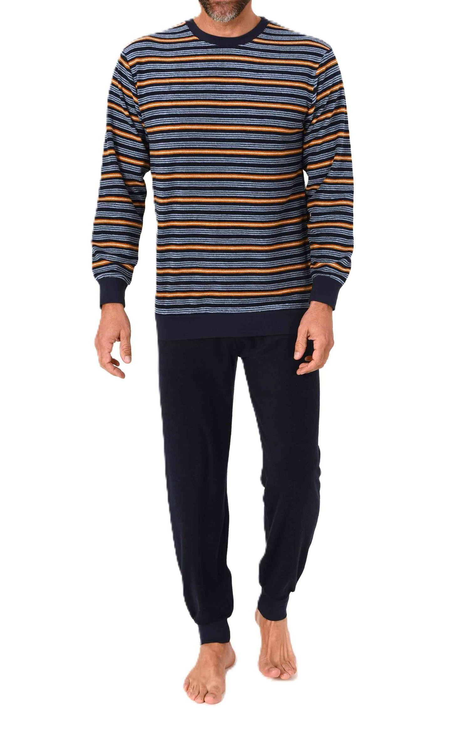 Normann Herren Frottee Schlafanzug lang mit Bündchen - auch in Übergrößen – elegante Optik