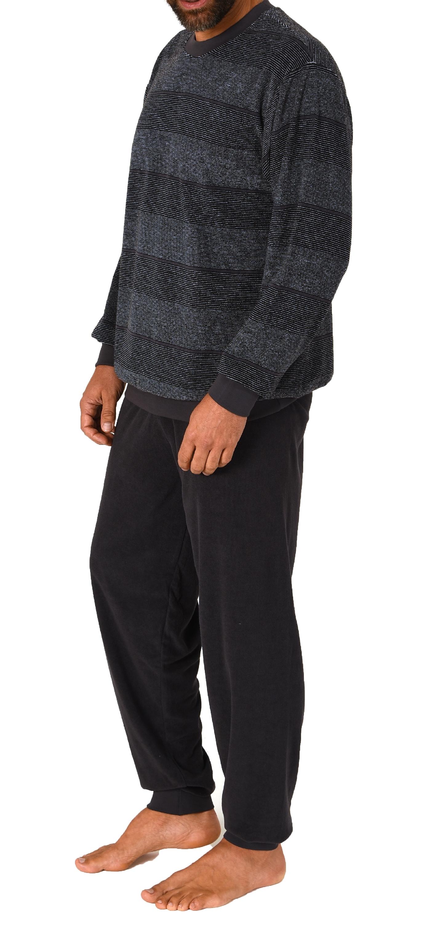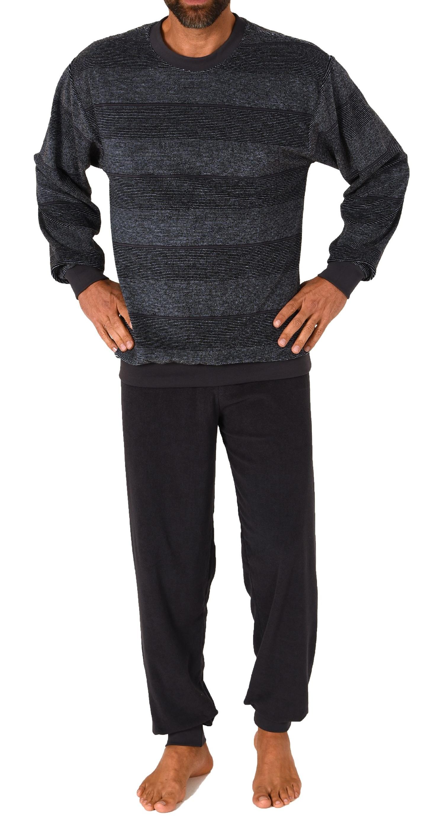 Normann Herren Frottee Schlafanzug lang mit Bündchen - auch in Übergrössen - Streifenoptik