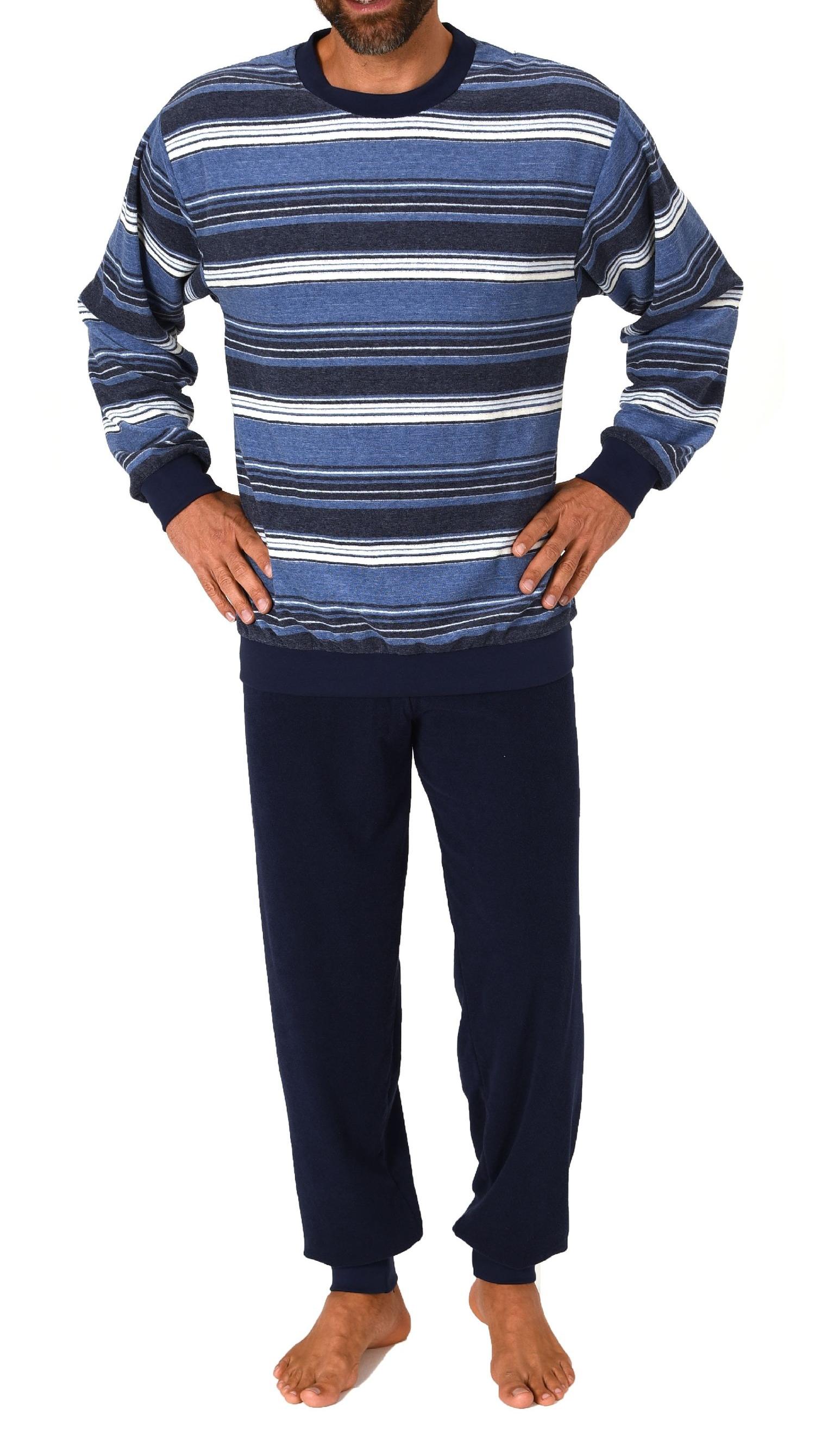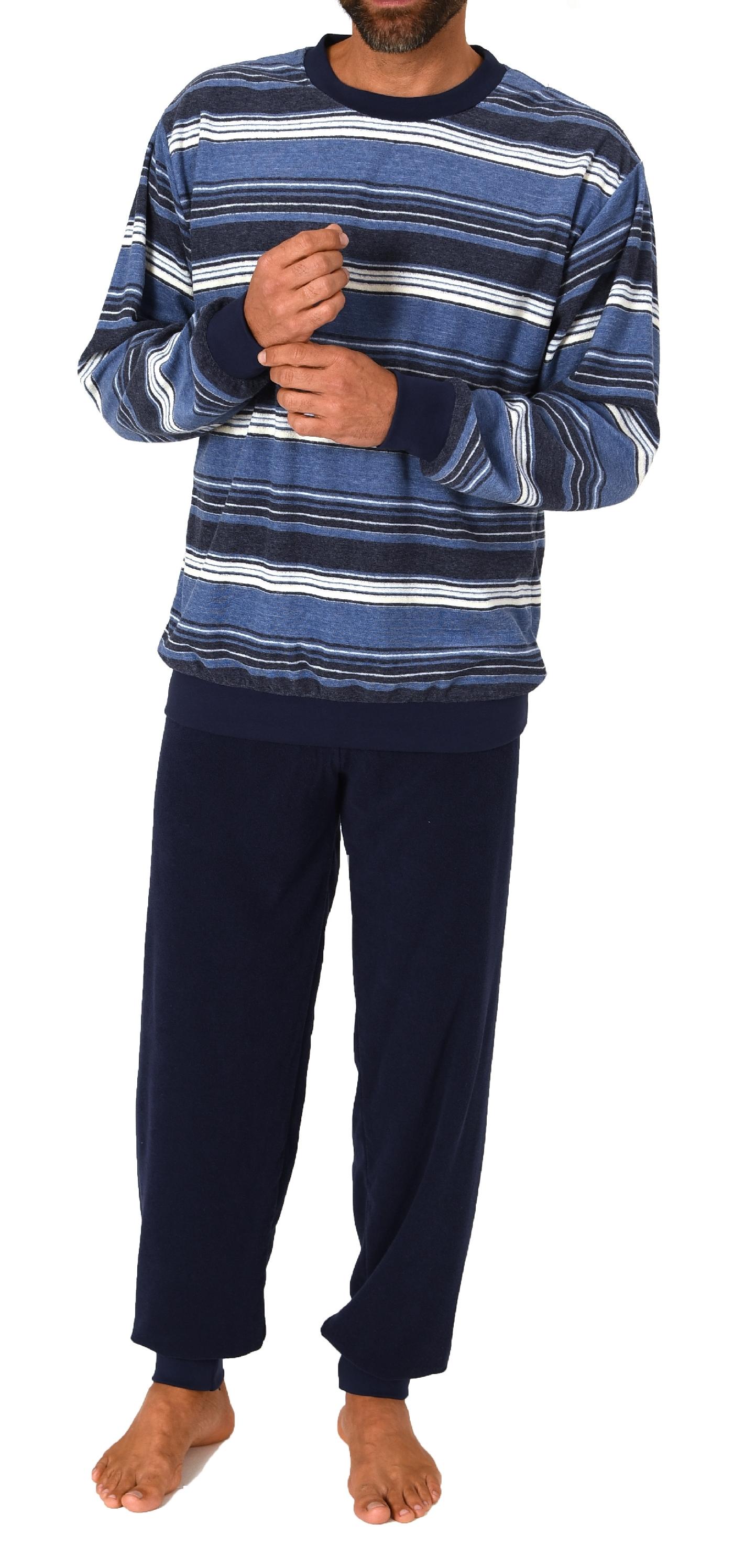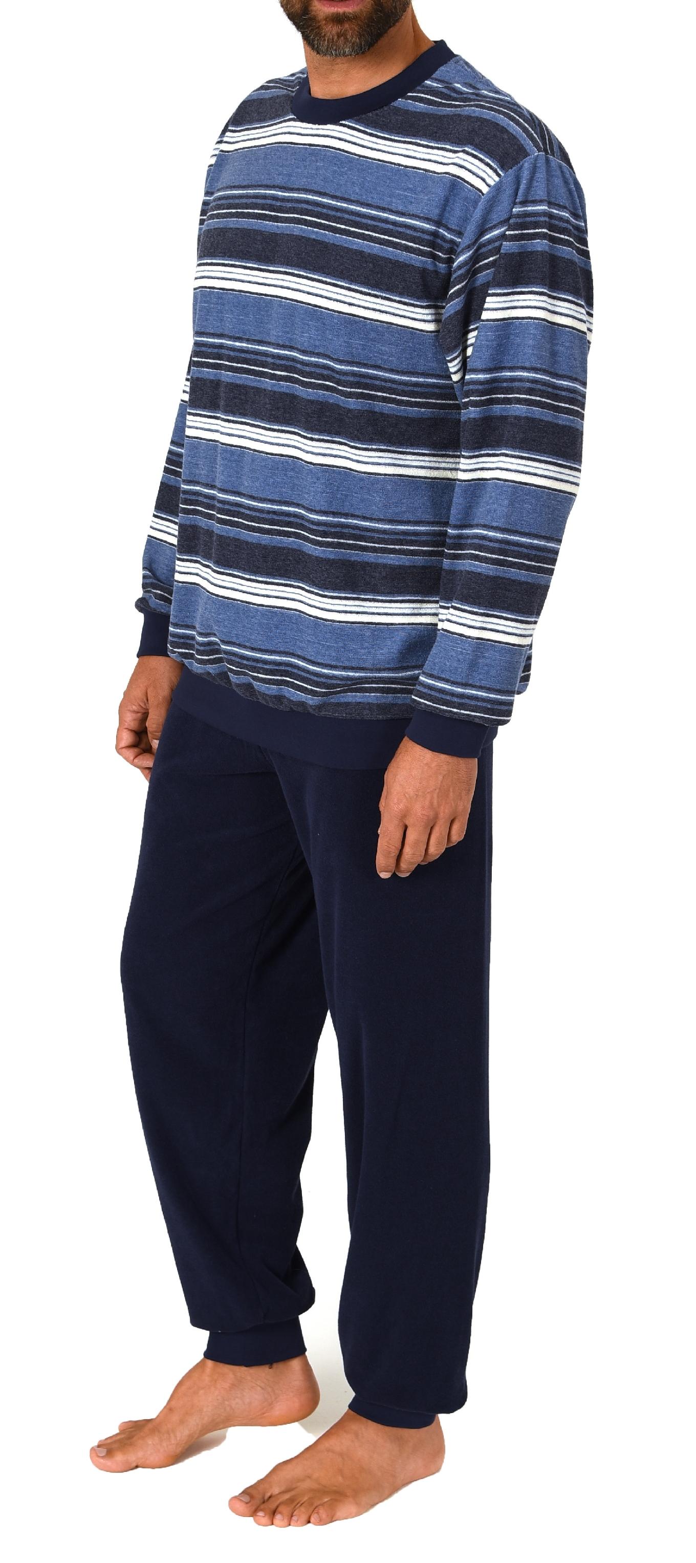 Normann Herren Frottee Schlafanzug lang mit Bündchen in Streifenoptik - auch in Übergröße