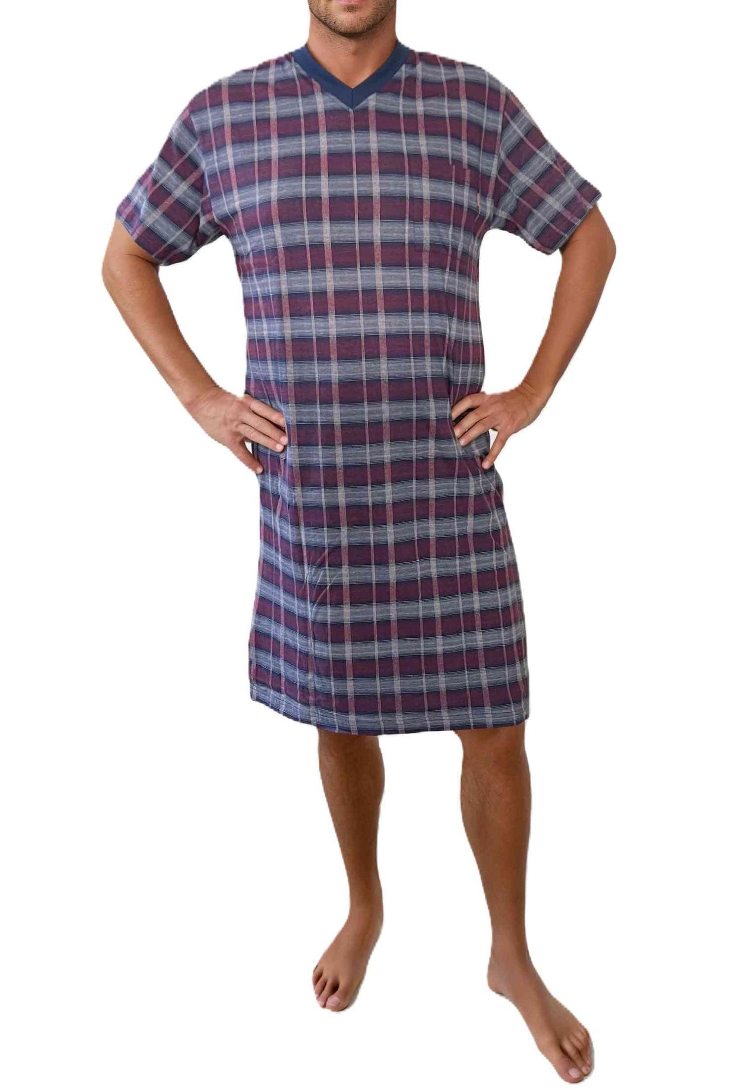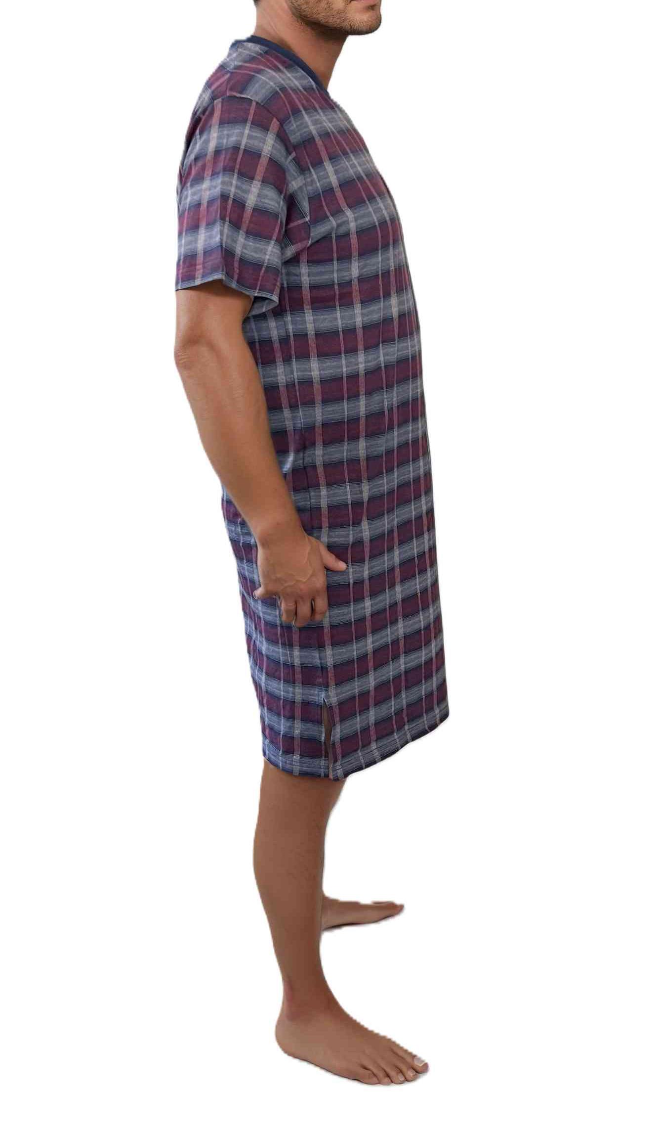 - ELEGANTE KARO OPTIK: Kurzarm Herren Nachthemd mit V-Hals-Ausschnitt in einem zeitlosen und eleganten karierten Design