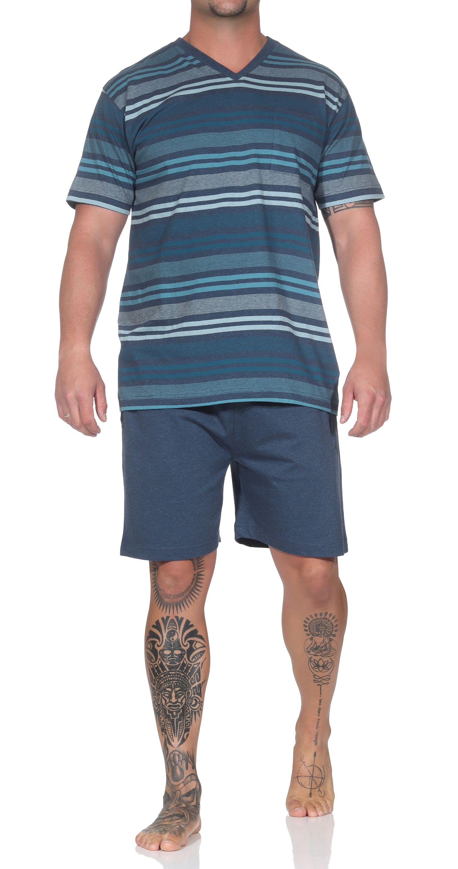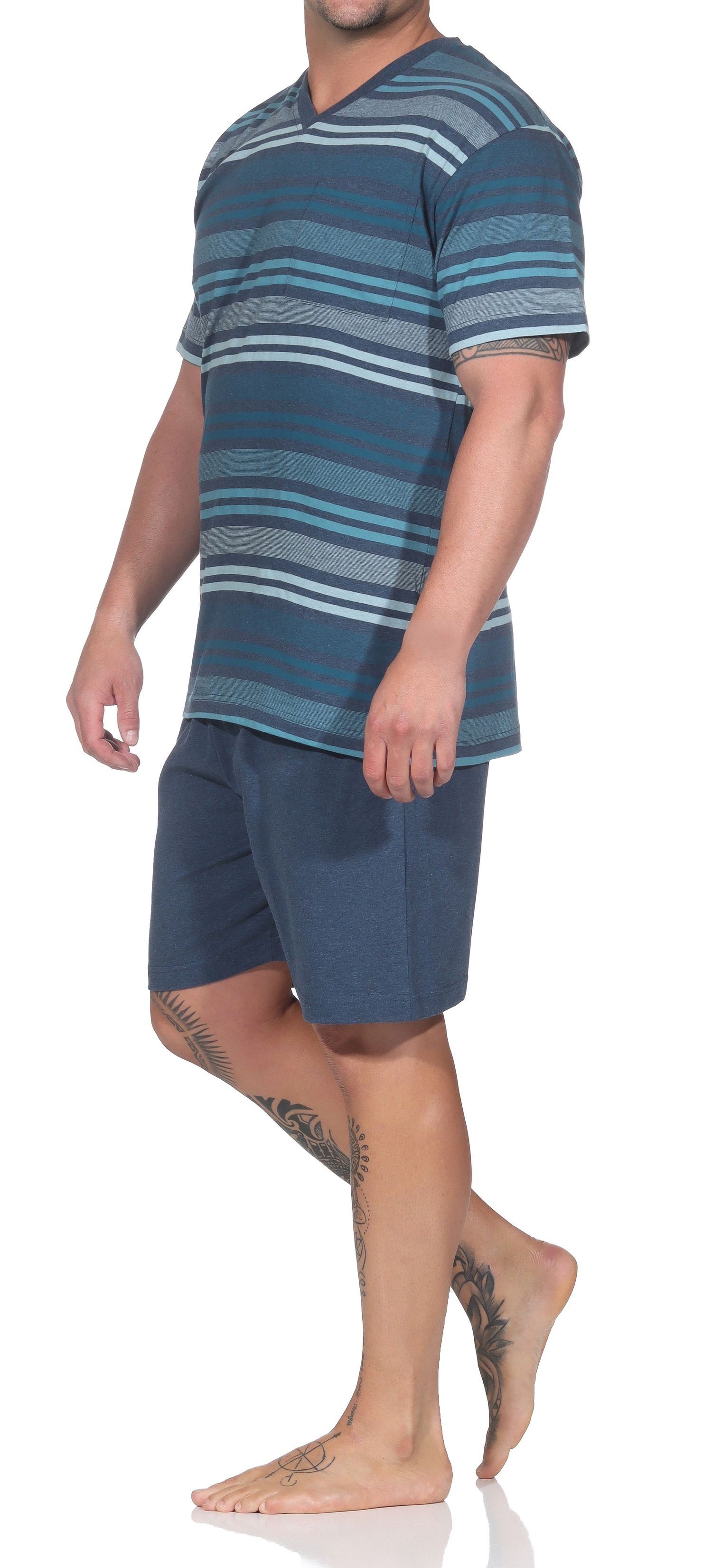 Normann Herren Shorty Schlafanzug – Gestreifter Sommer-Pyjama auch in Übergrößen bis 70