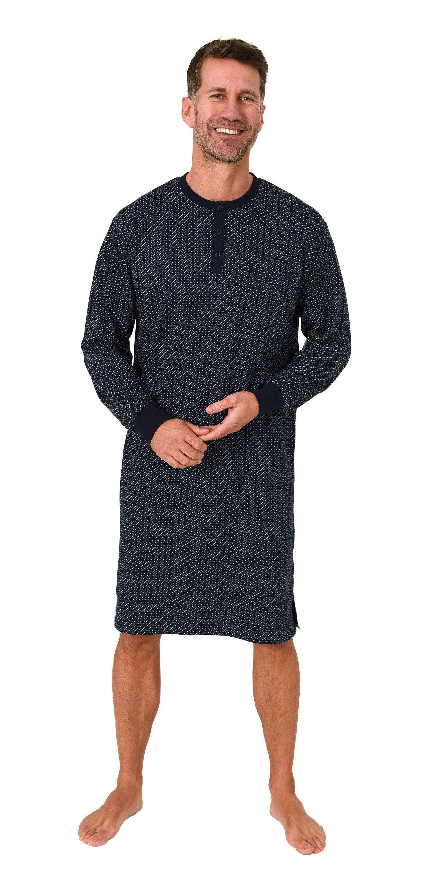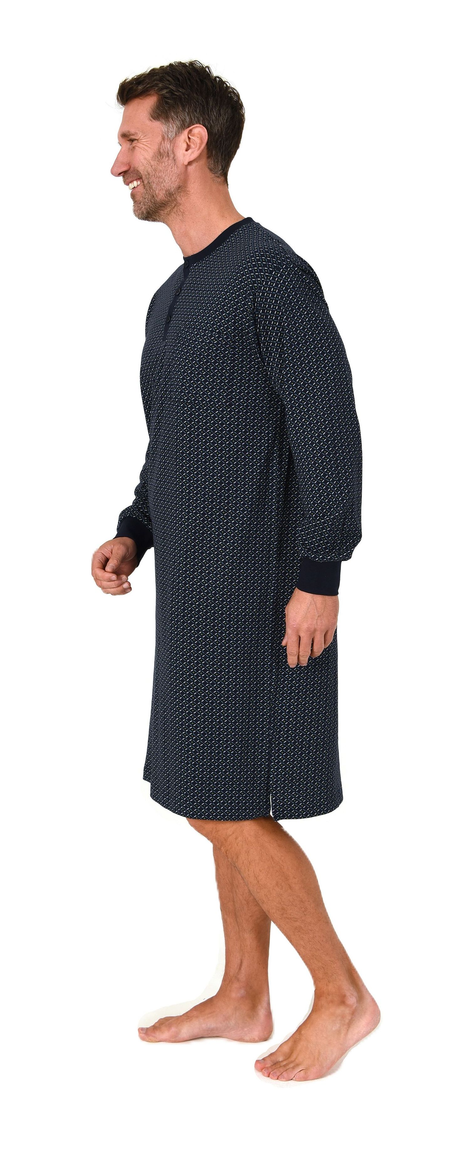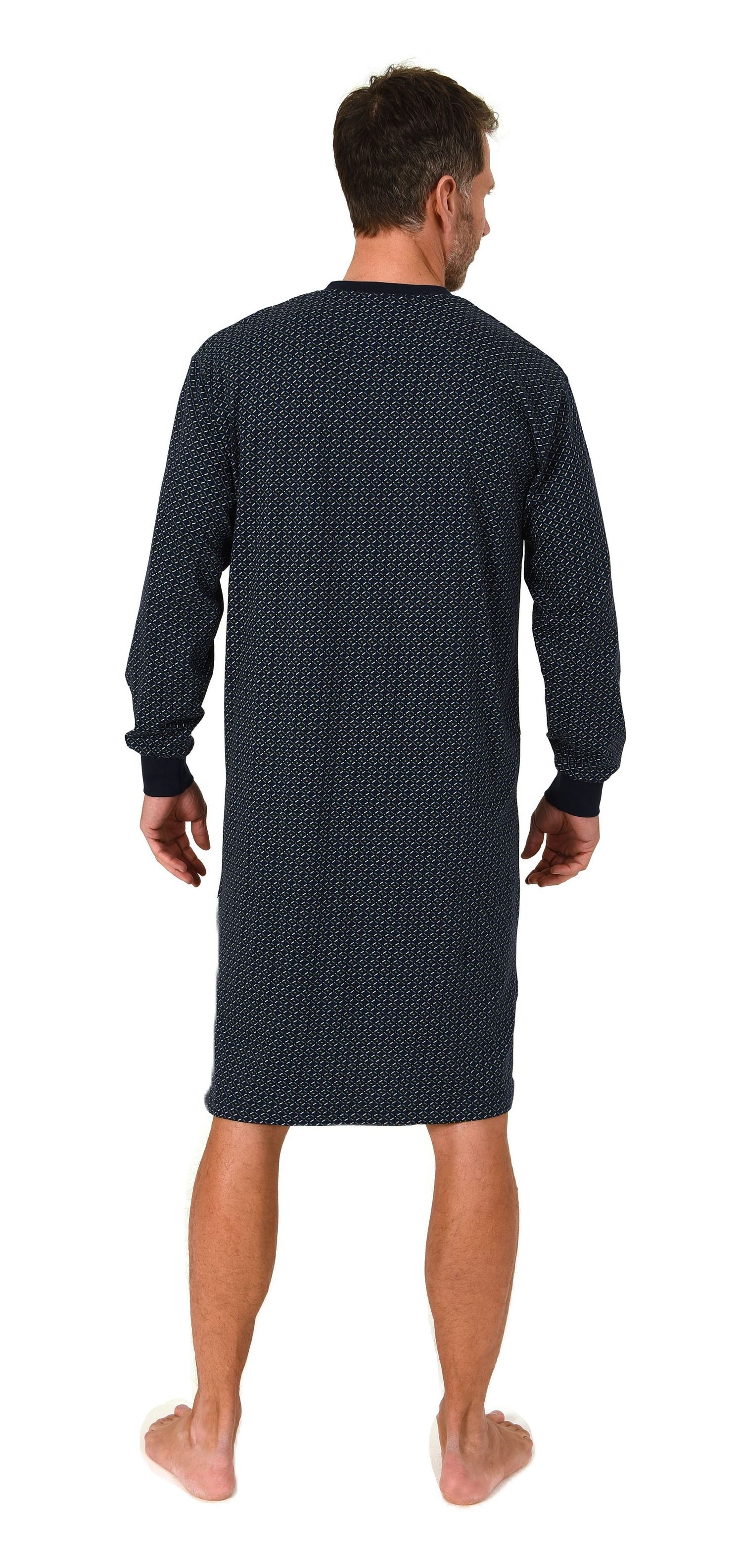 Normann Herren Langarm Nachthemd mit Bündchen – Minimalprint-Optik - auch in Übergröße