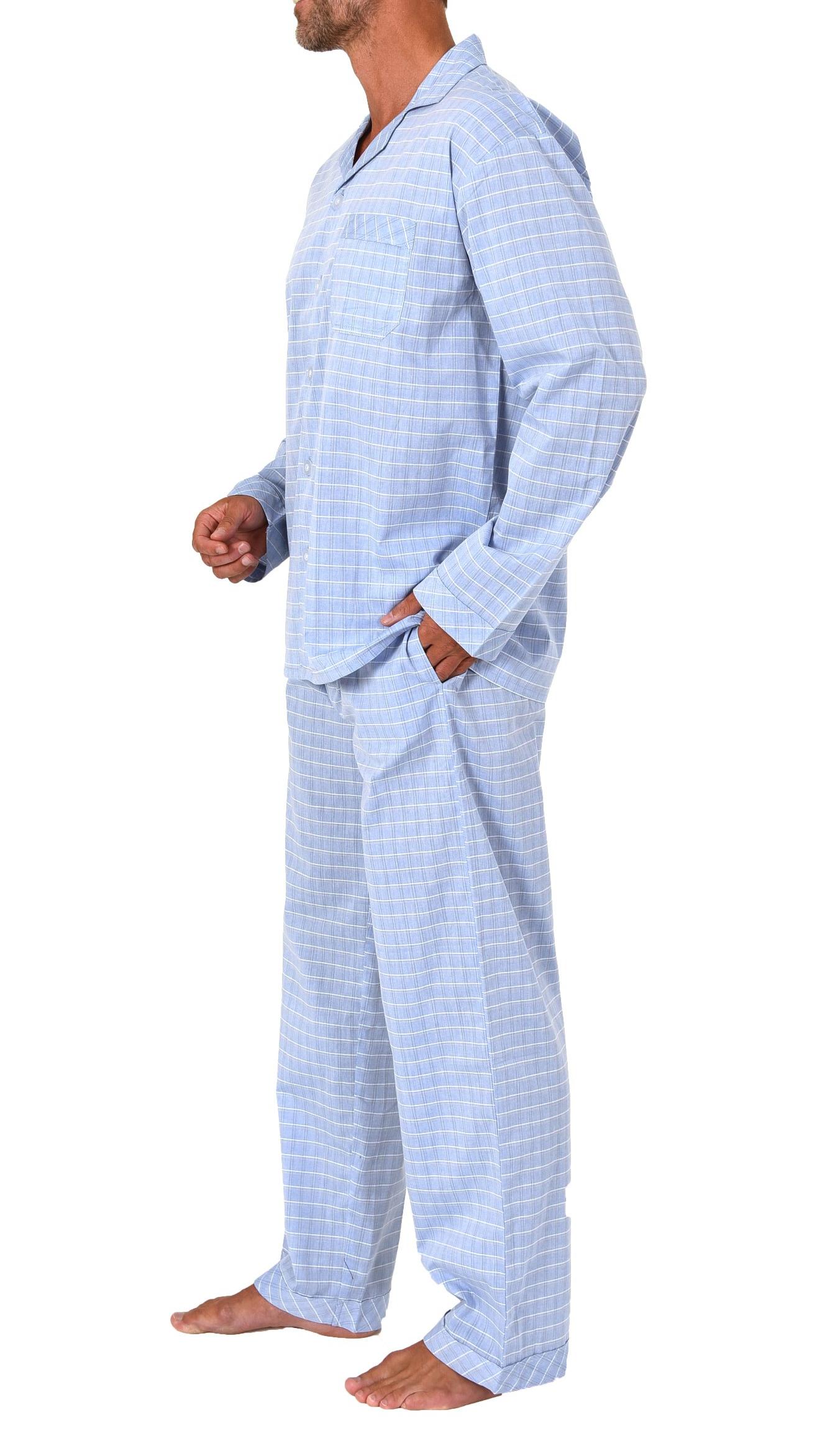Normann Herren langarm Schlafanzug gewebt, durchknöpfbarer Pyjama – auch in Übergröße