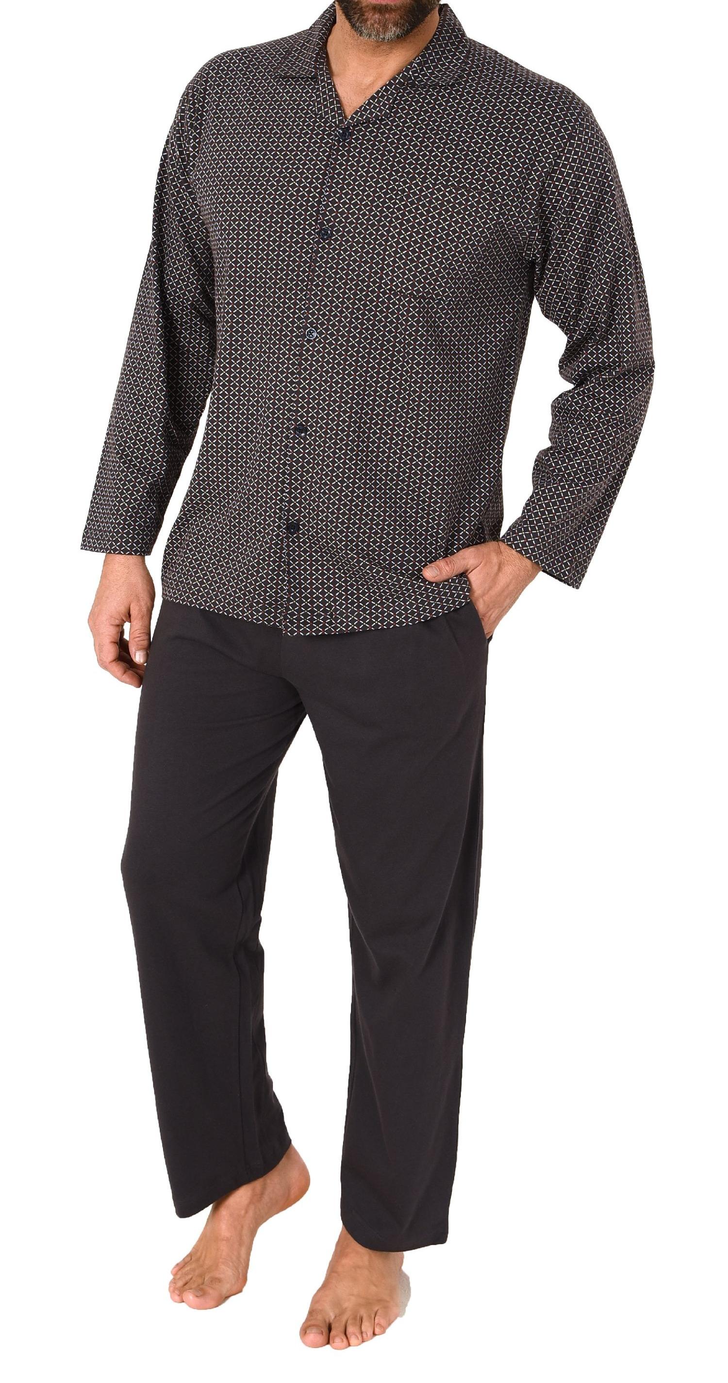 Normann Herren Langarm Schlafanzug Jersey Pyjama zum durchknöpfen, auch in Übergrößen
