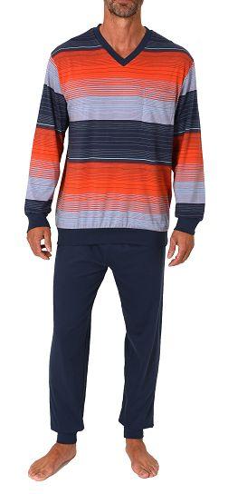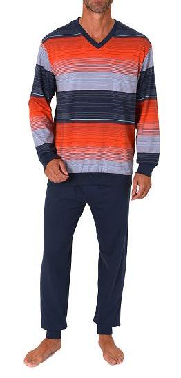 Normann Herren langarm Schlafanzug mit Bündchen in Streifenoptik - auch in Übergrössen