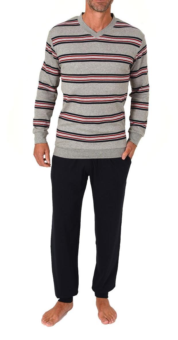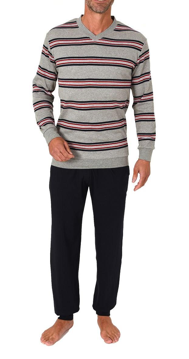 Normann Herren langarm Schlafanzug mit Bündchen in warmer Kuschel Interlock Qualität