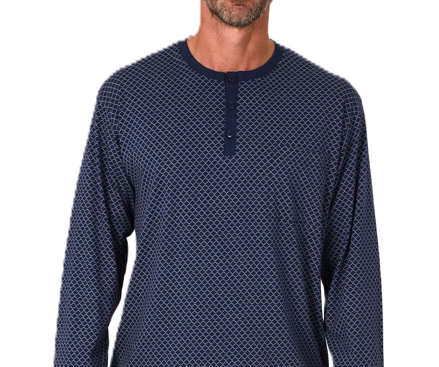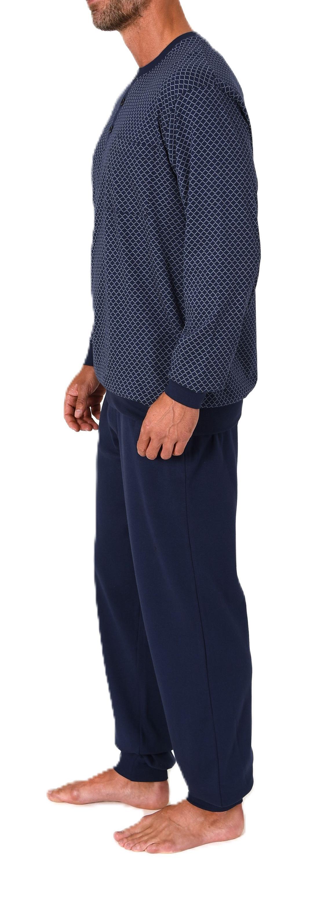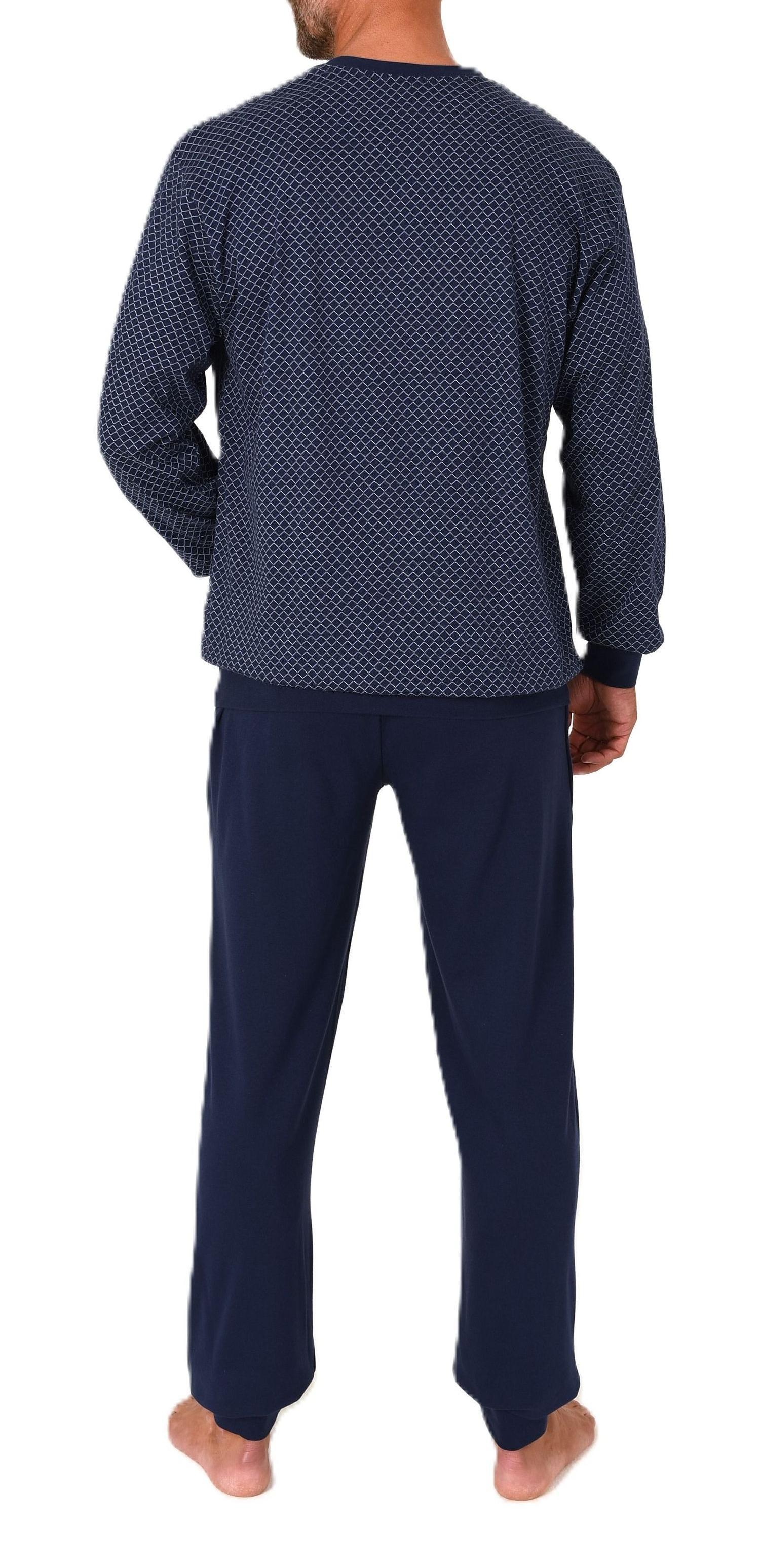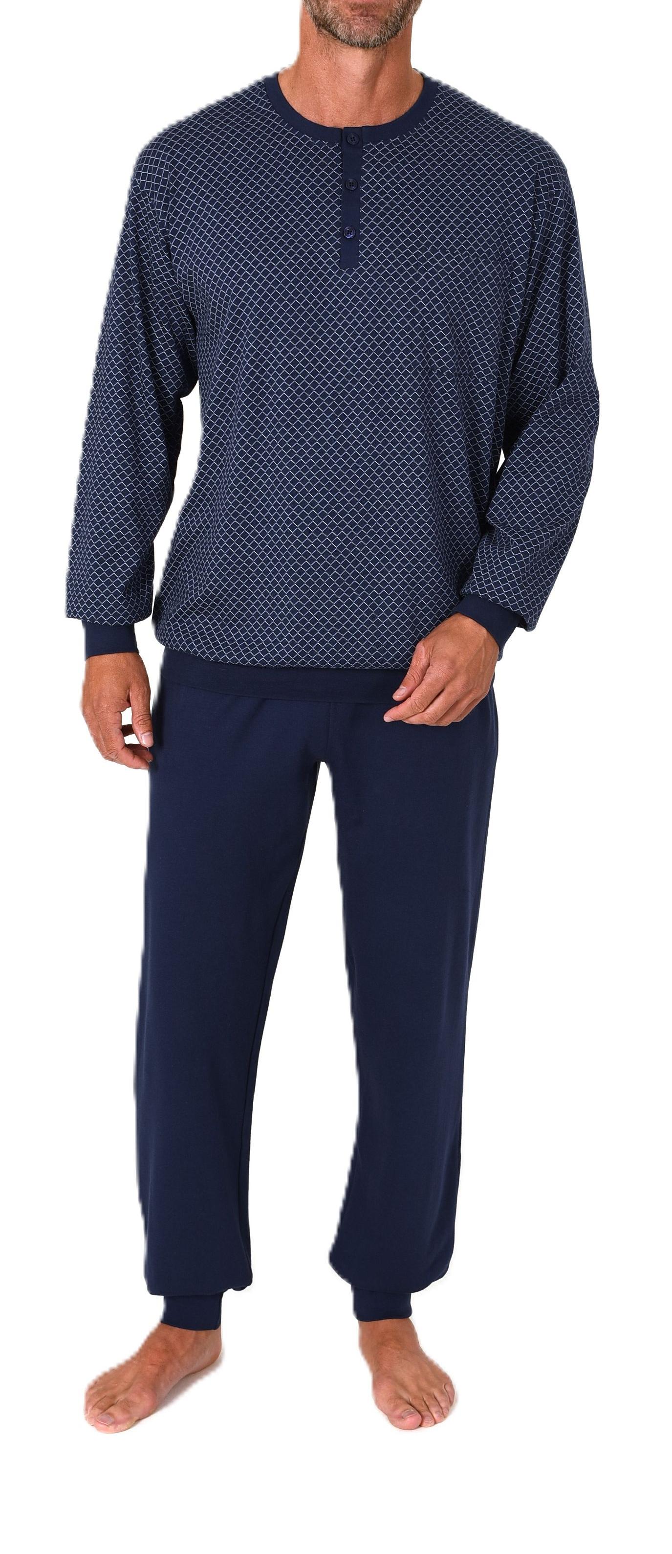 Normann Herren Langarm Schlafanzug mit Bündchen - Minimalprint-Optik - auch in Übergröße
