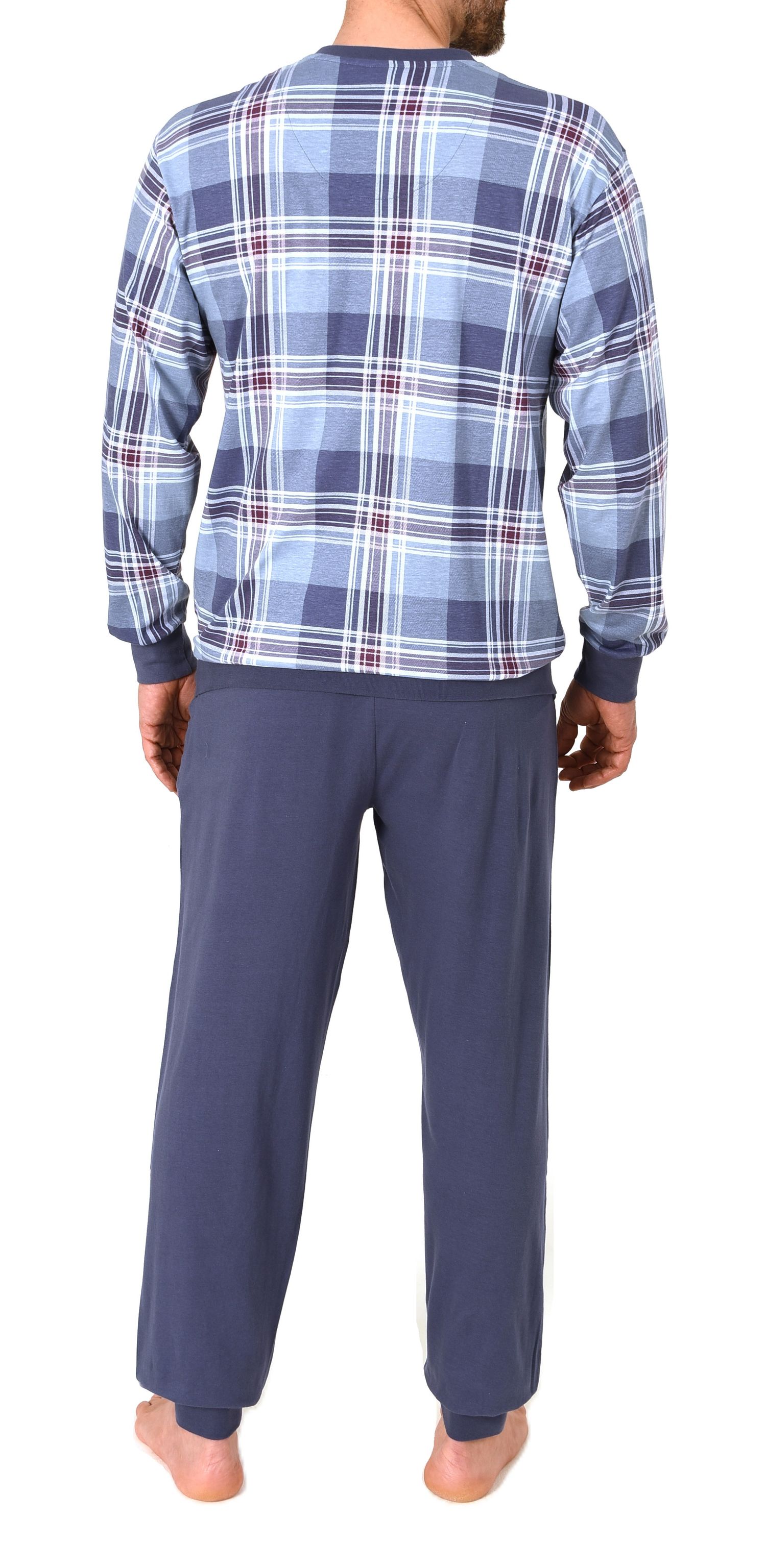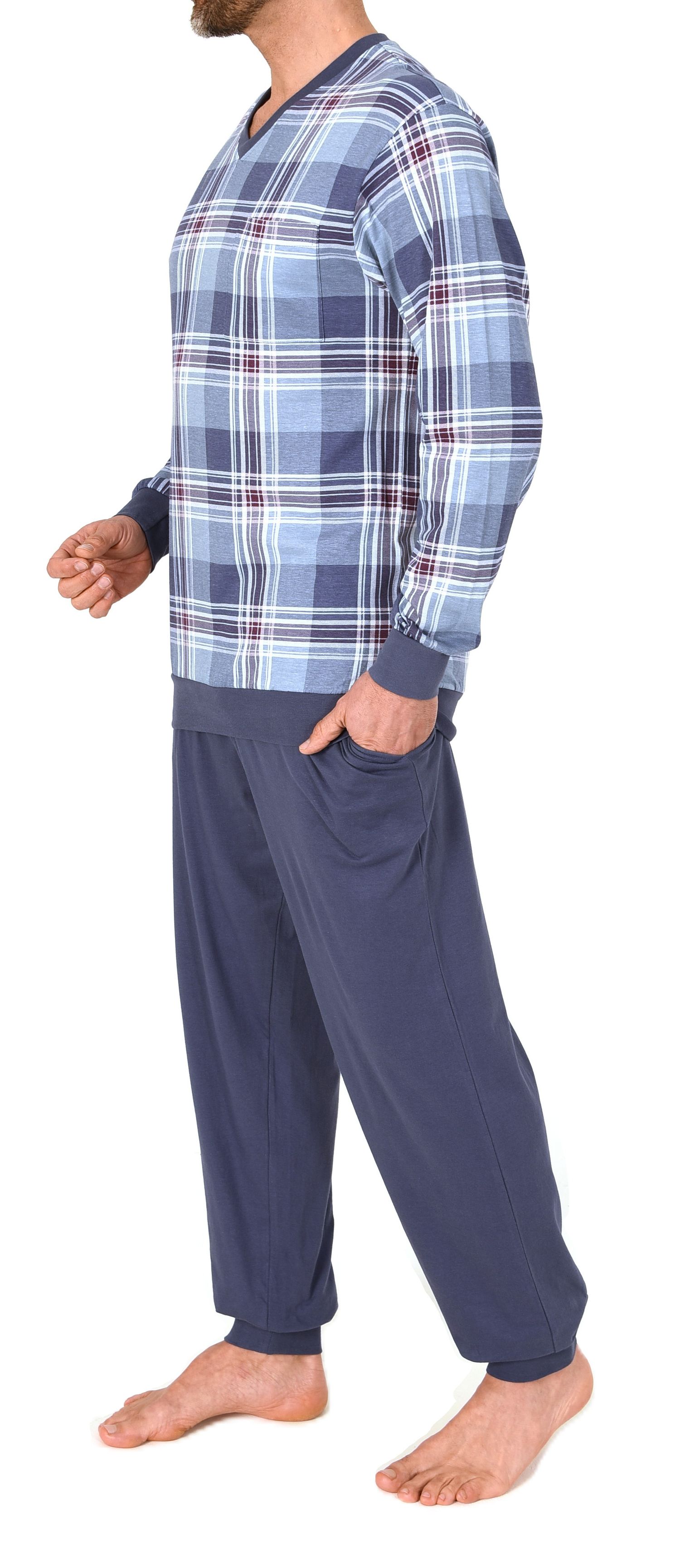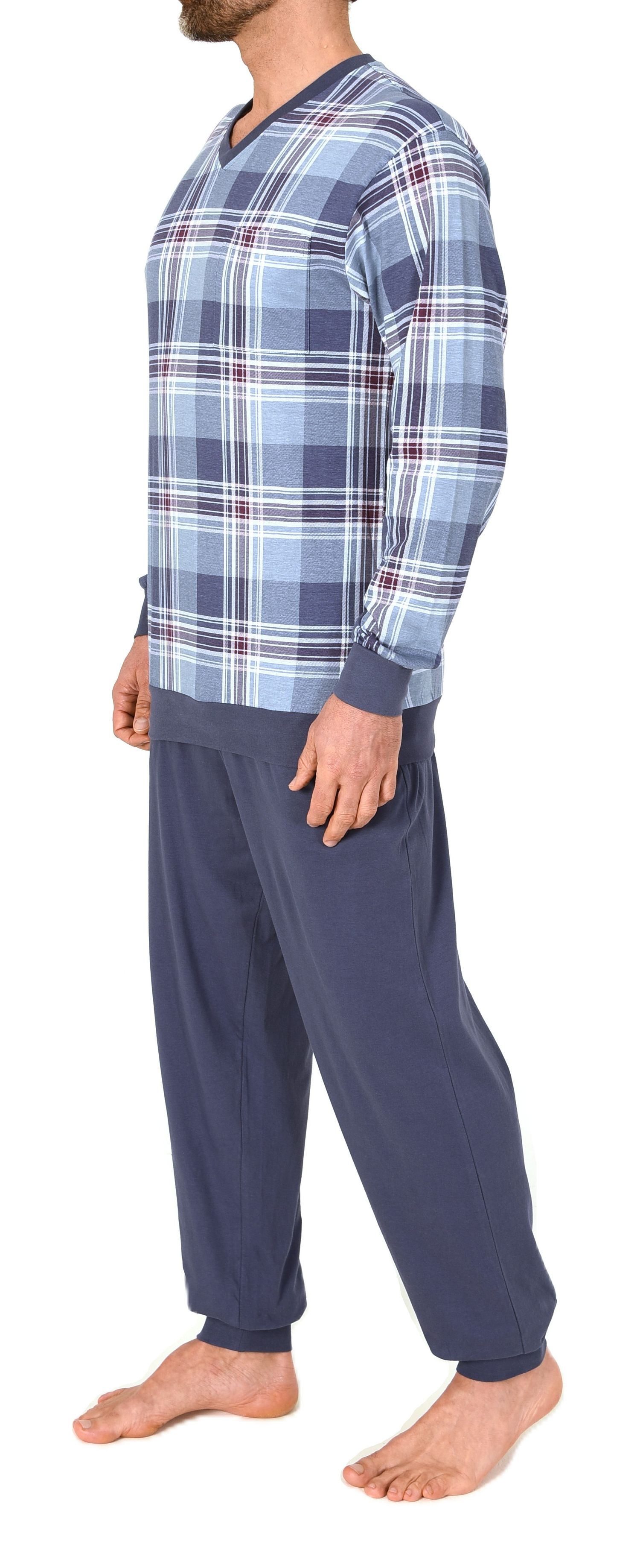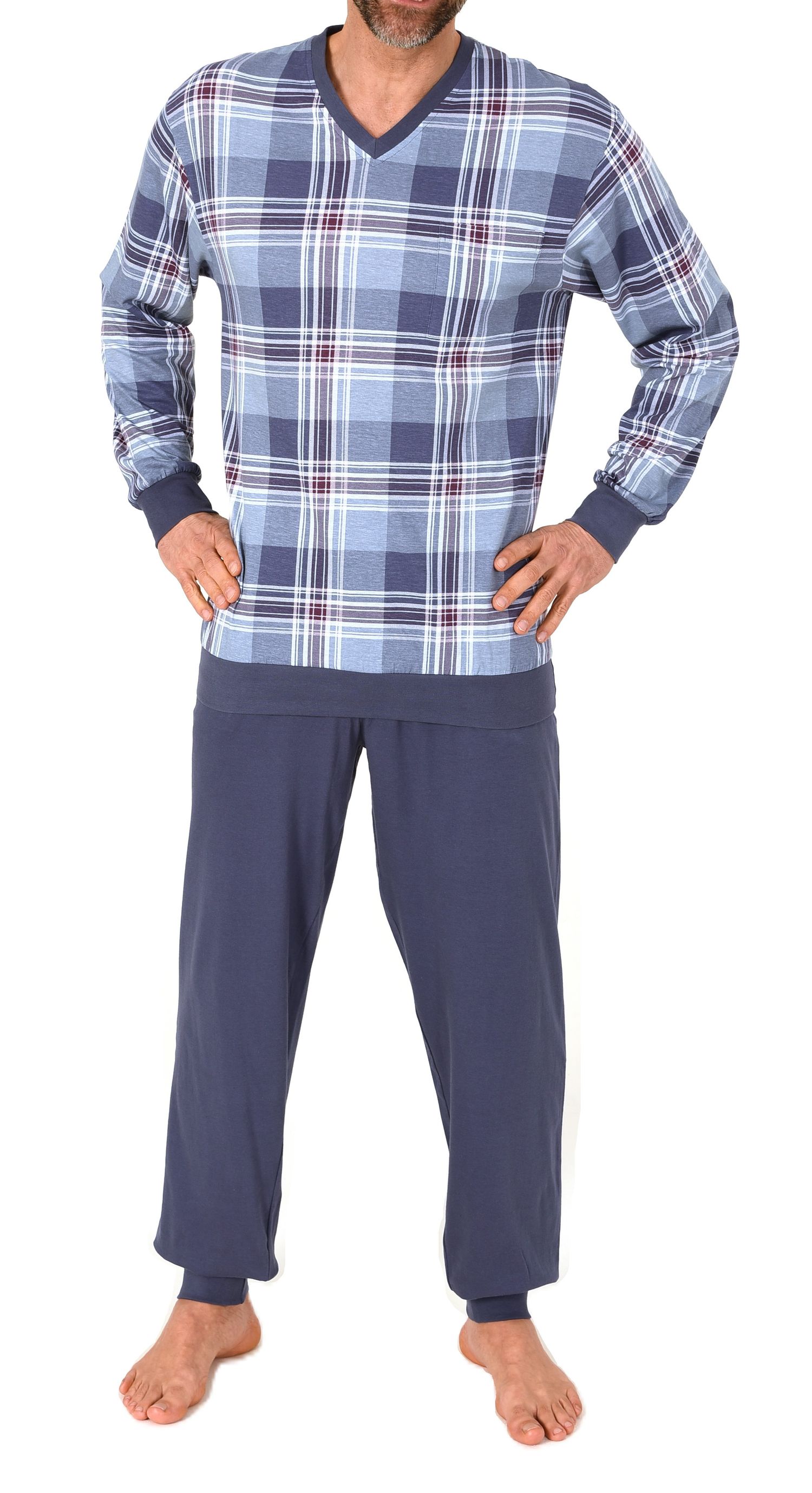 Normann Herren langarm Schlafanzug mit Bündchen – Oberteil kariert – auch in Übergröße