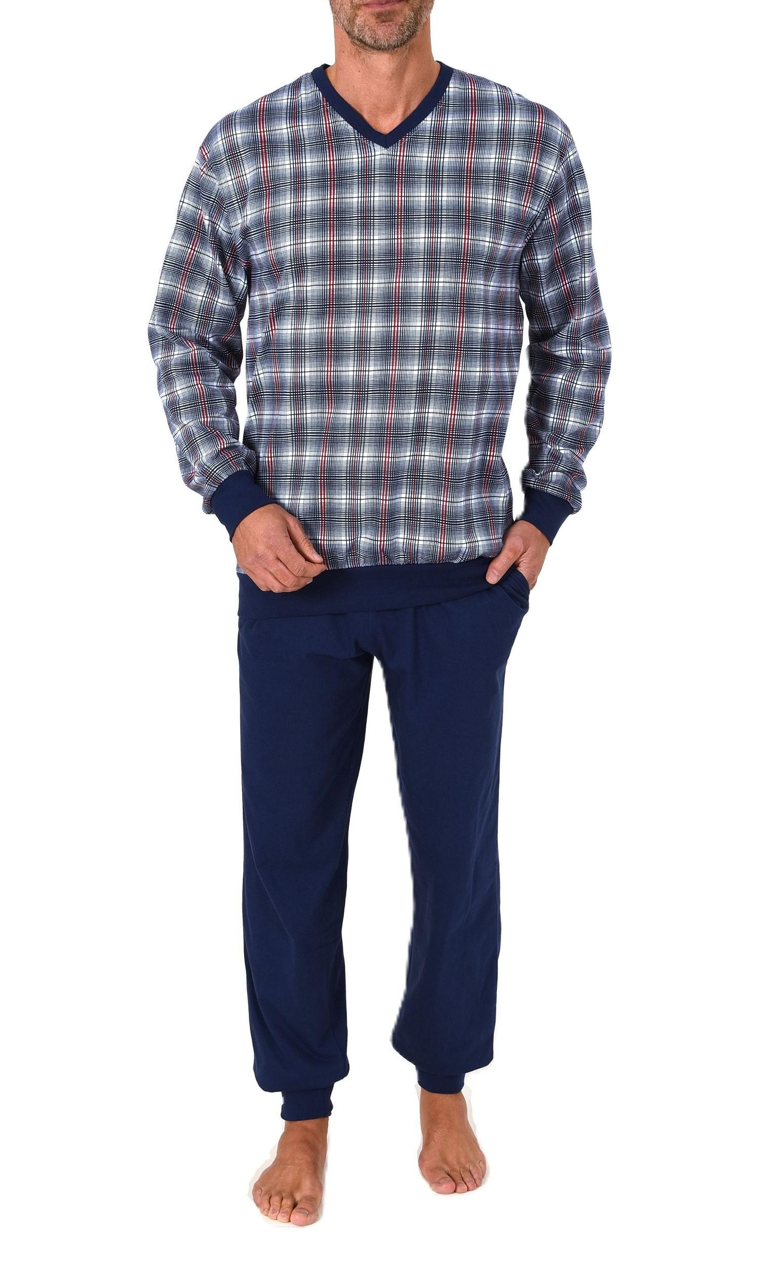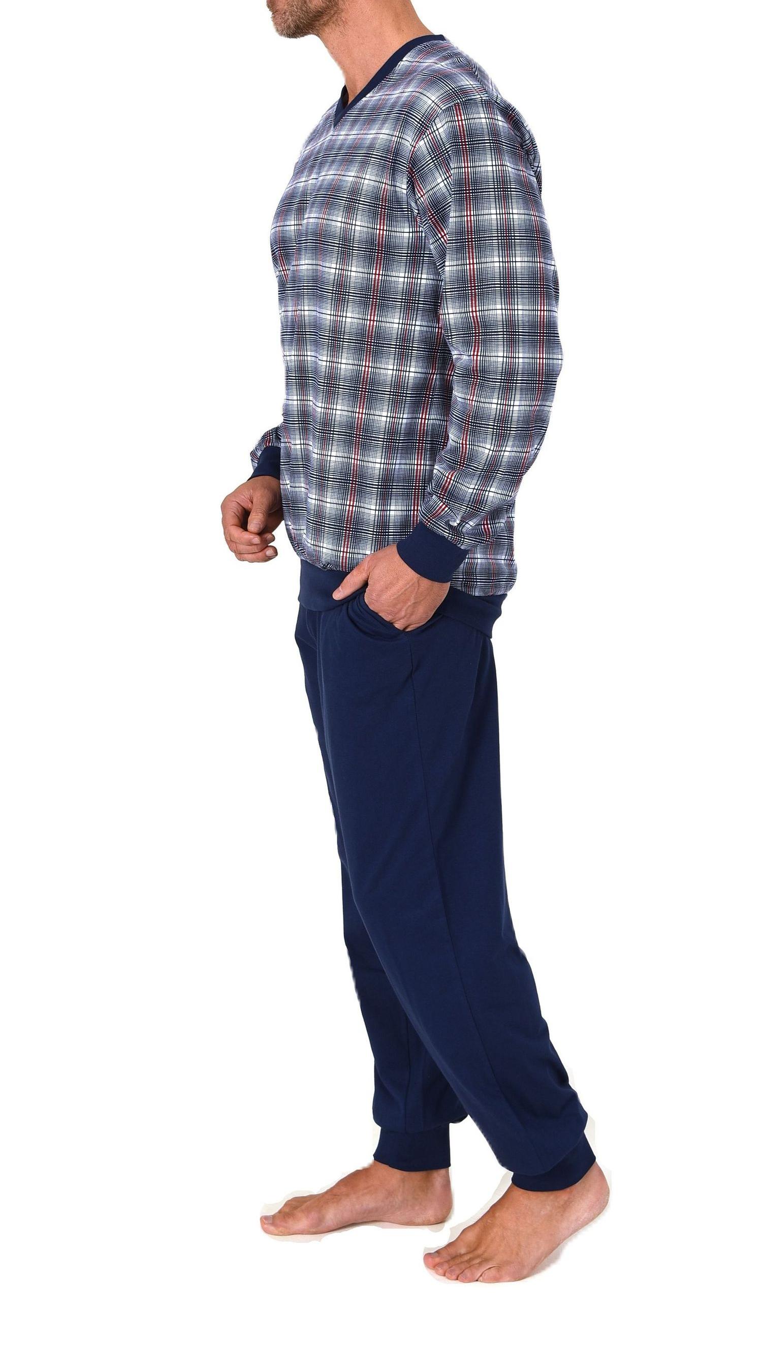 Normann Herren langarm Schlafanzug mit Bündchen und V-Hals – Pyjama auch in Übergrößen