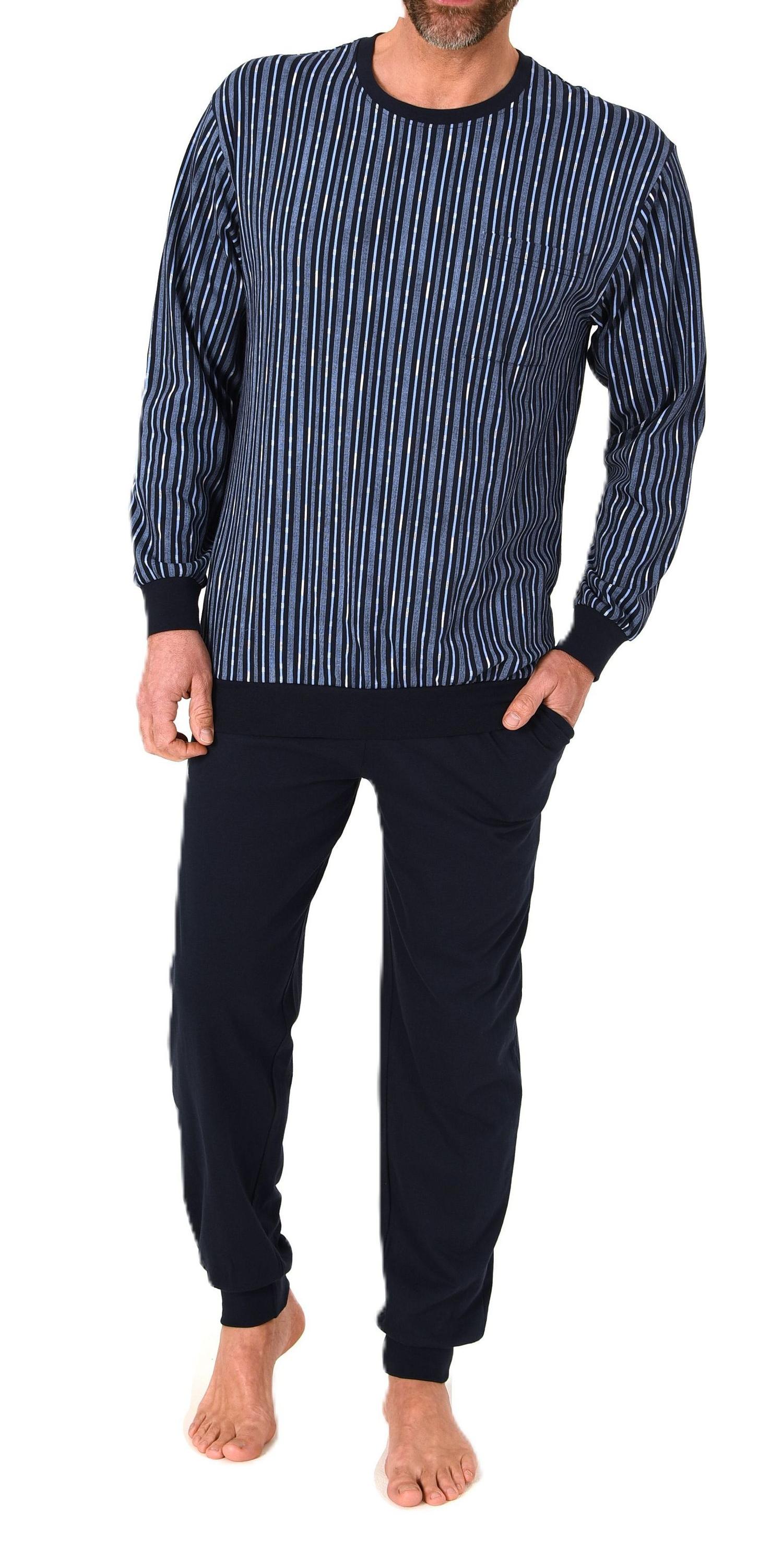 Normann Herren langarm Schlafanzug Pyjama mit Bündchen aus Baumwolle