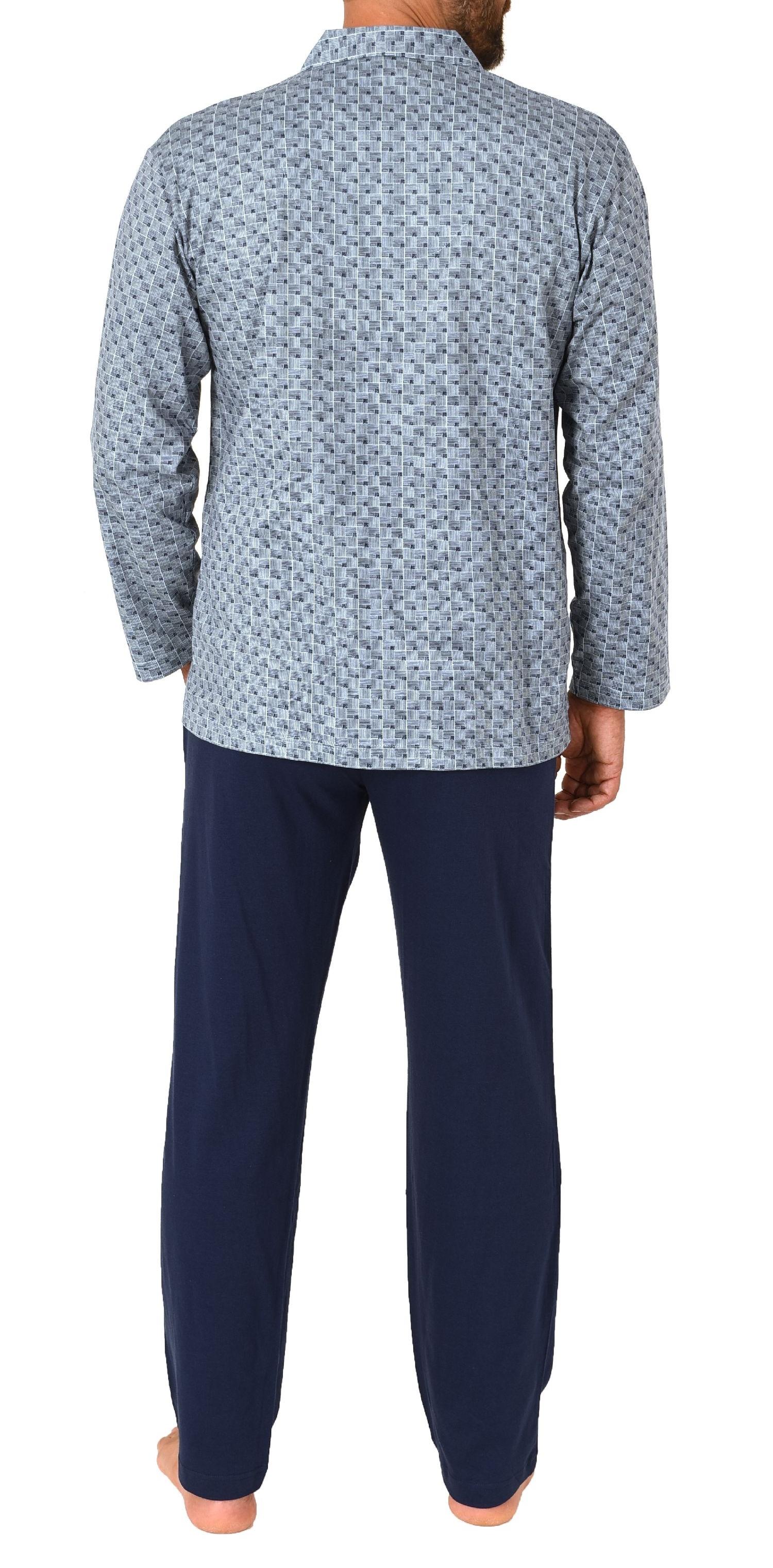 - KLASSISCHE OPTIK: Langarm Herren Pyjama in klassischer Optik zum durchknöpfen und mit Reverskragen