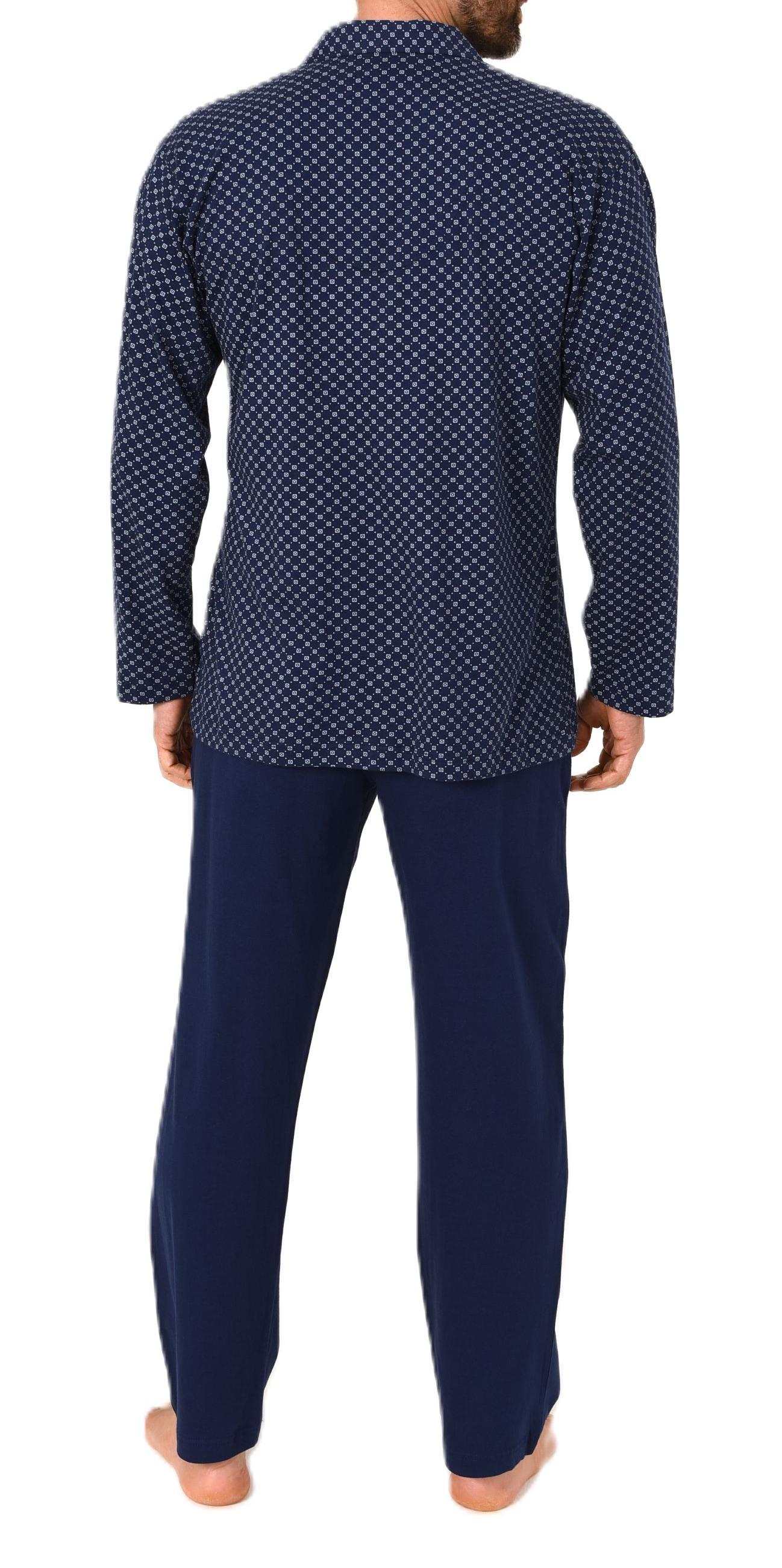 - KLASSISCHE OPTIK: Langarm Herren Pyjama in klassischer Optik zum durchknöpfen und mit Reverskragen