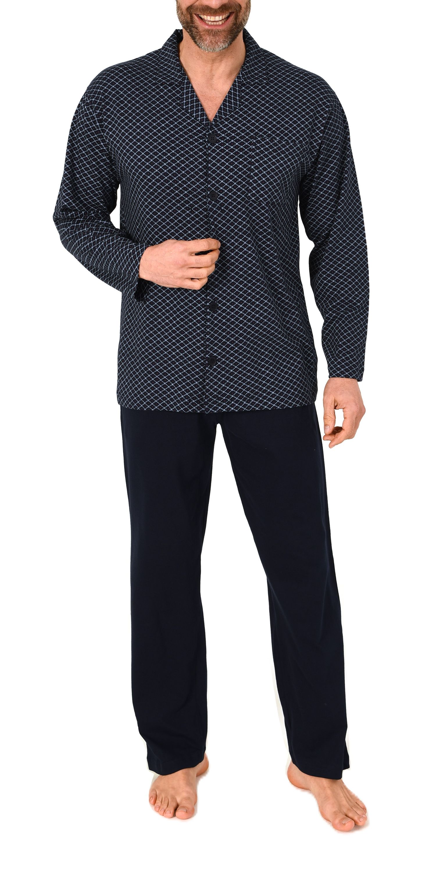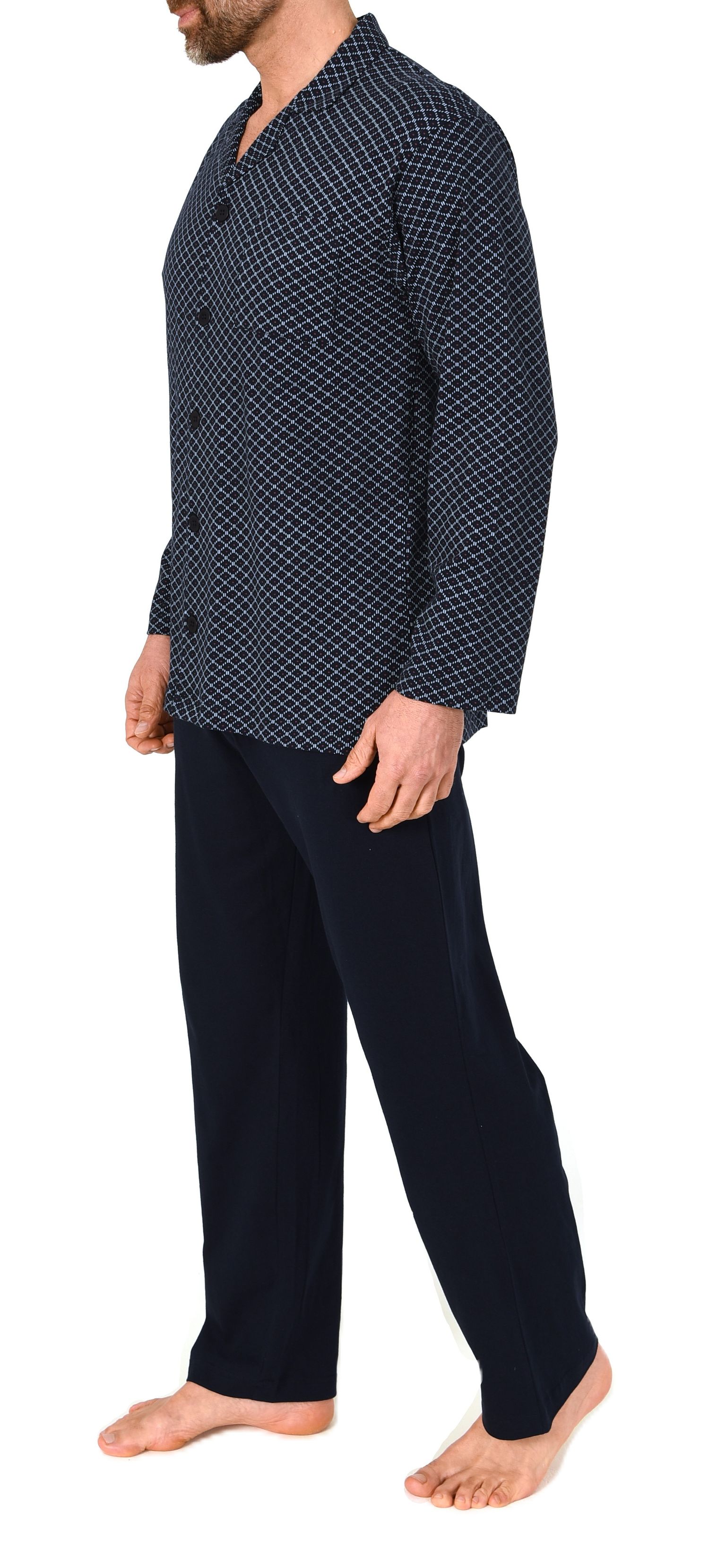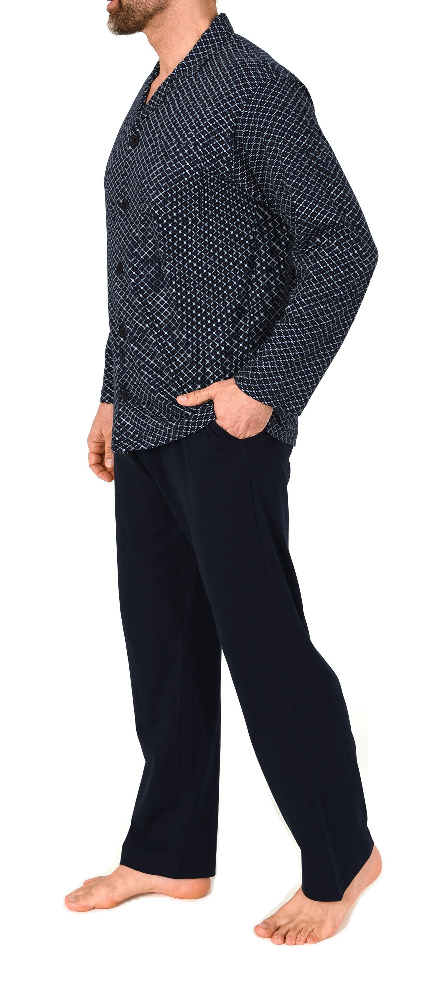 Normann Herren Schlafanzug zum Durchknöpfen – Klassischer Revers-Pyjama aus softem Jersey – auch in Übergrößen