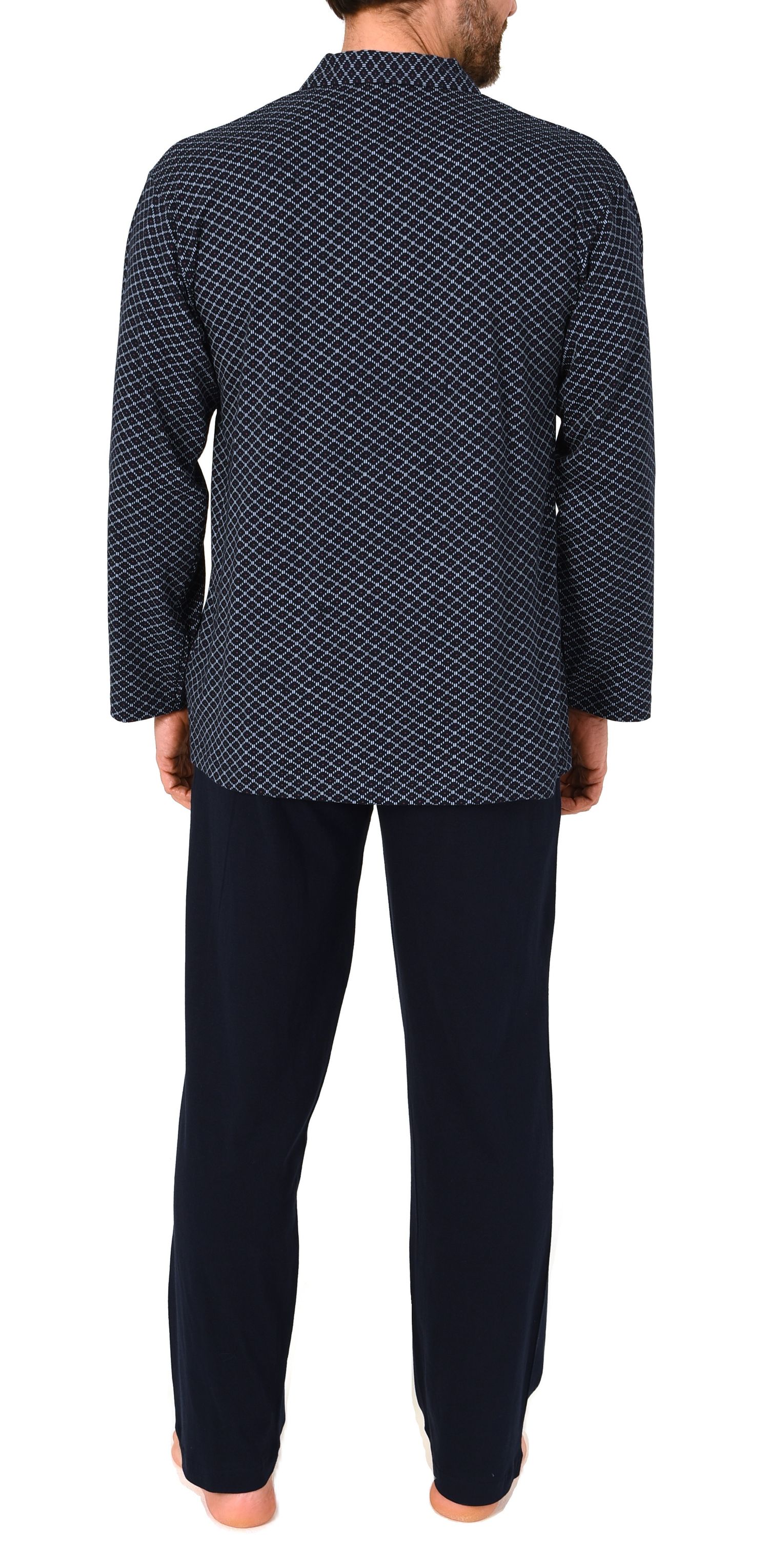 - PERFEKTES ZUSAMMENSPIEL: Das gemusterte Oberteil wird durch eine farblich abgestimmte, unifarbene Hose ergänzt – ein stimmiges Pyjama Set für den modebewussten Herrn, 100 % Baumwolle, Trocknergeeignet, 60 Grad waschbar
