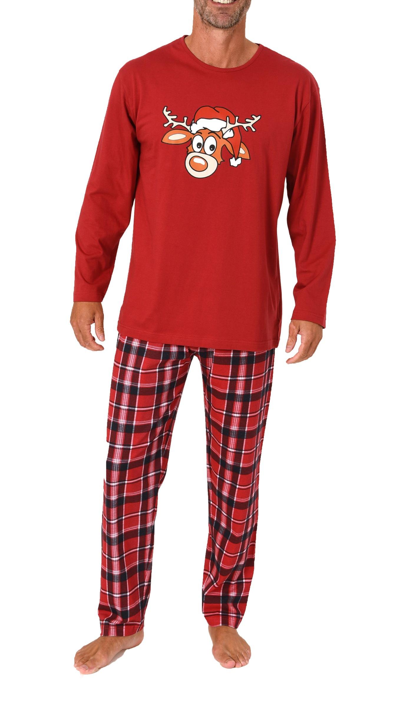 Normann Herren langarm Weihnachts Schlafanzug Pyjama mit lustigen Renntier Motiv