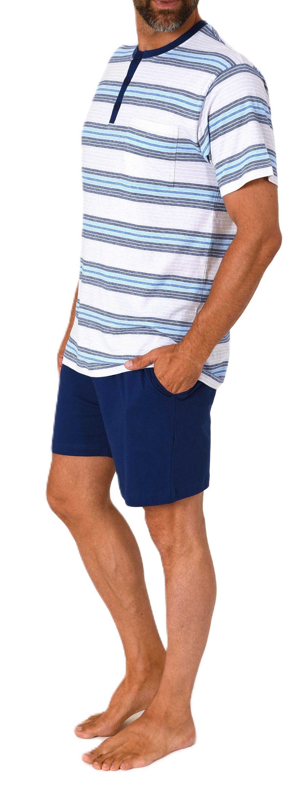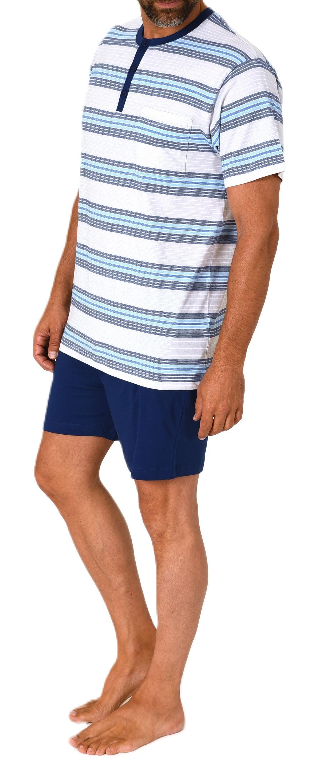 Normann Herren Schlafanzug kurzarm Shorty mit Knopfleiste am Hals - auch in Übergrößen