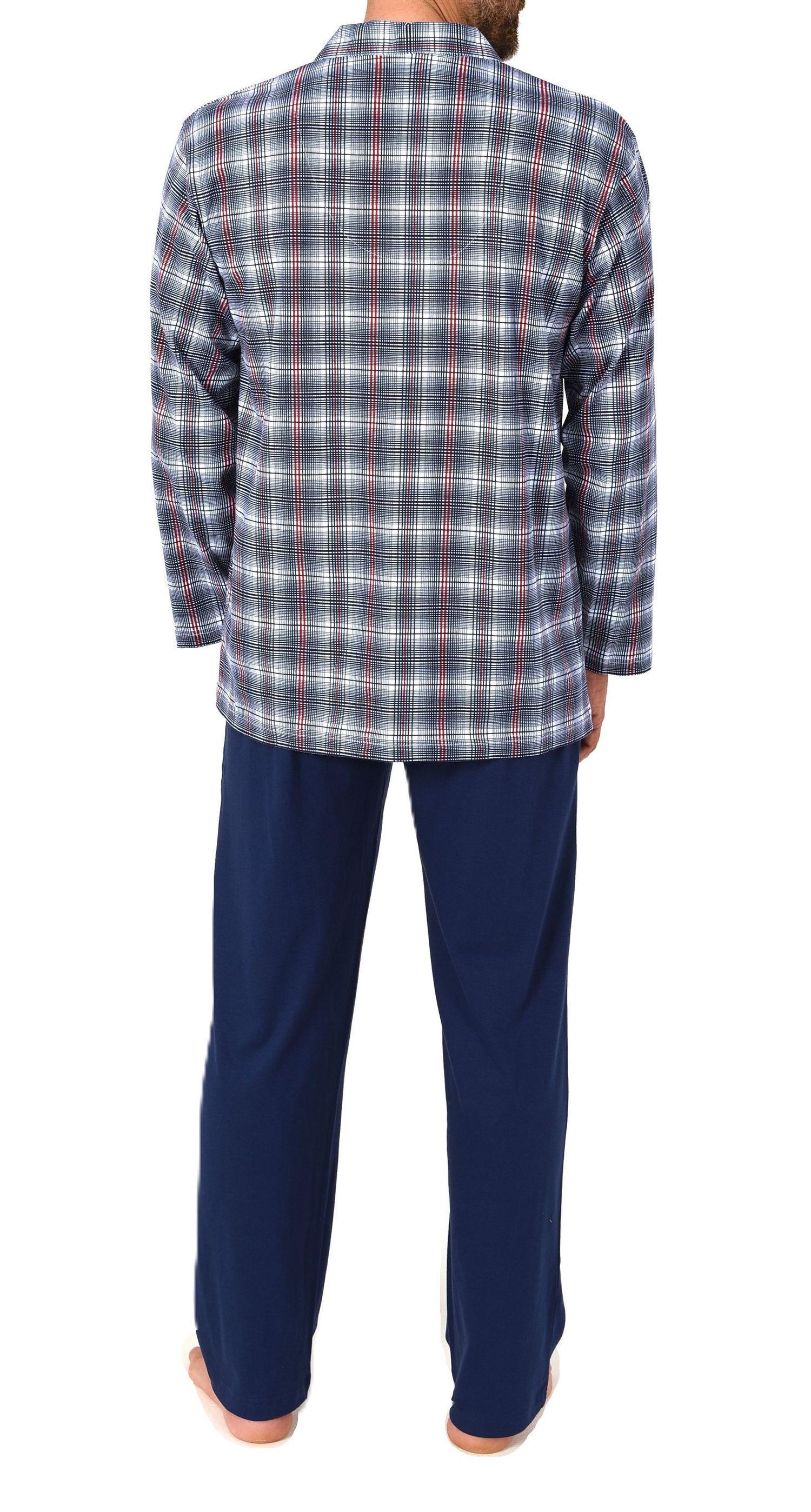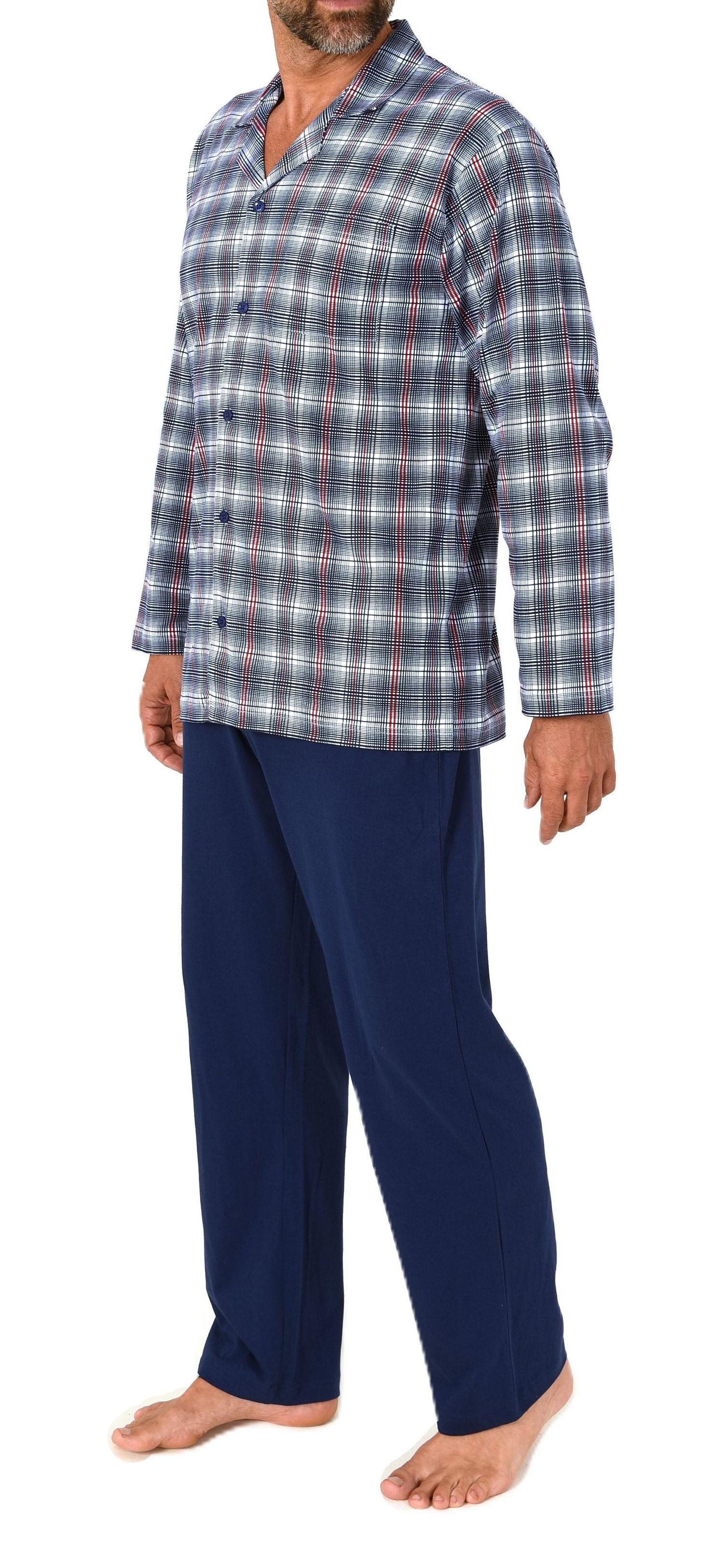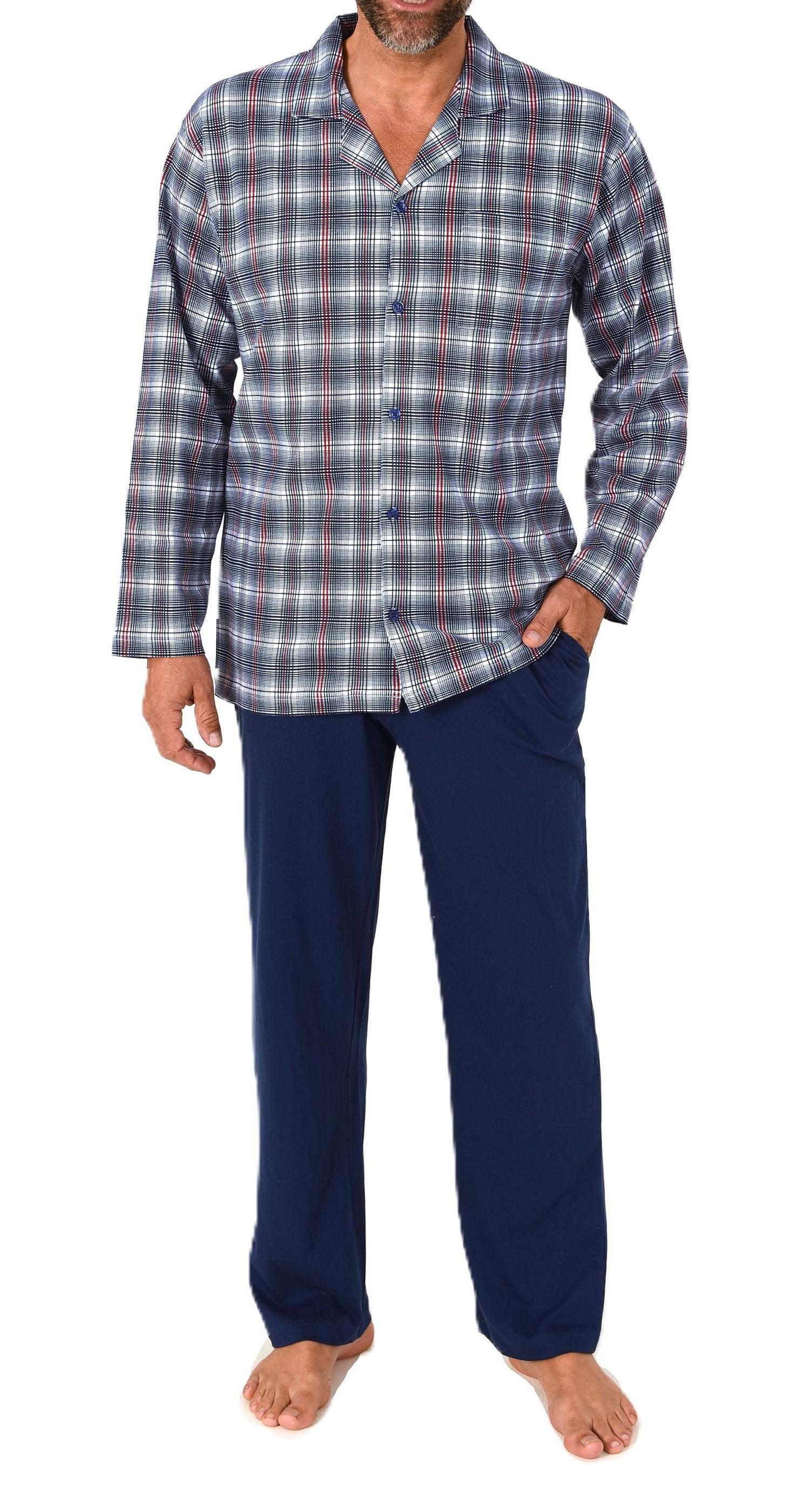 Normann Herren Schlafanzug lang in softem Jersey zum durchknöpfen - auch in Übergrößen