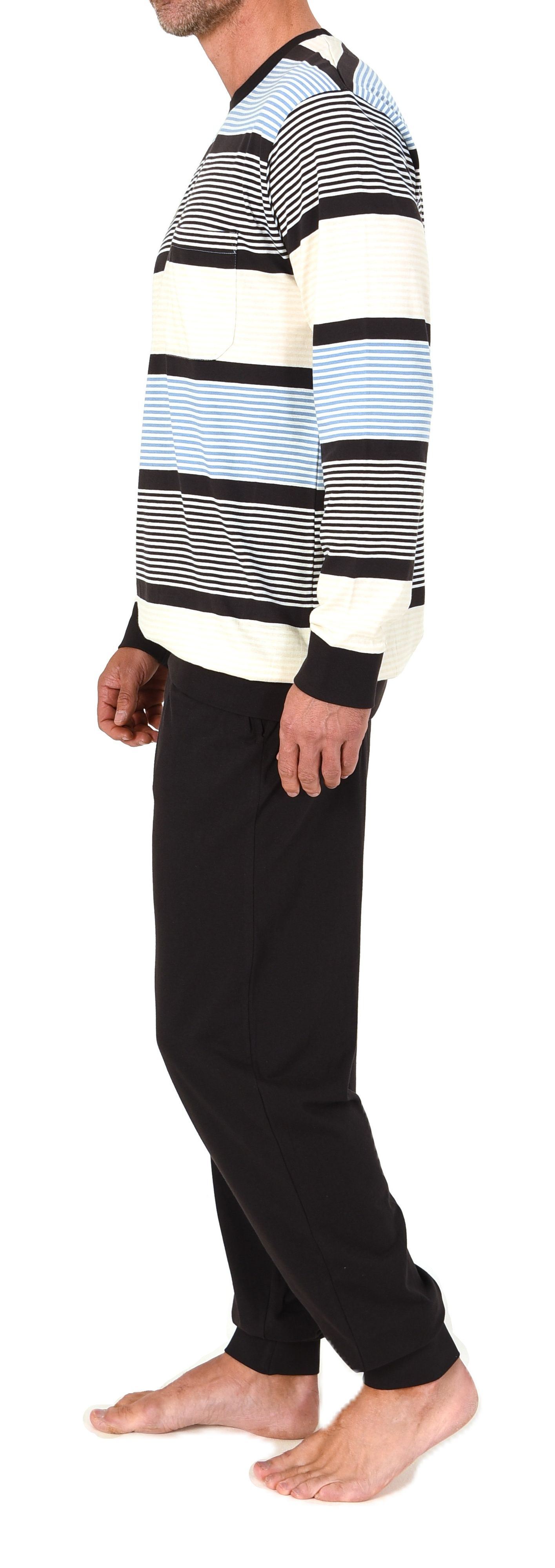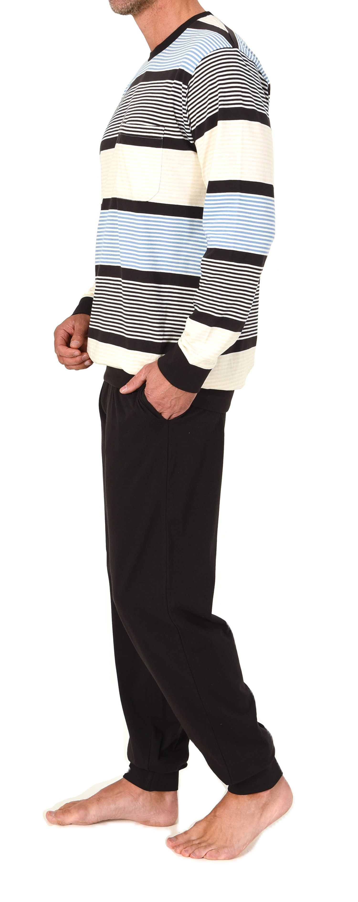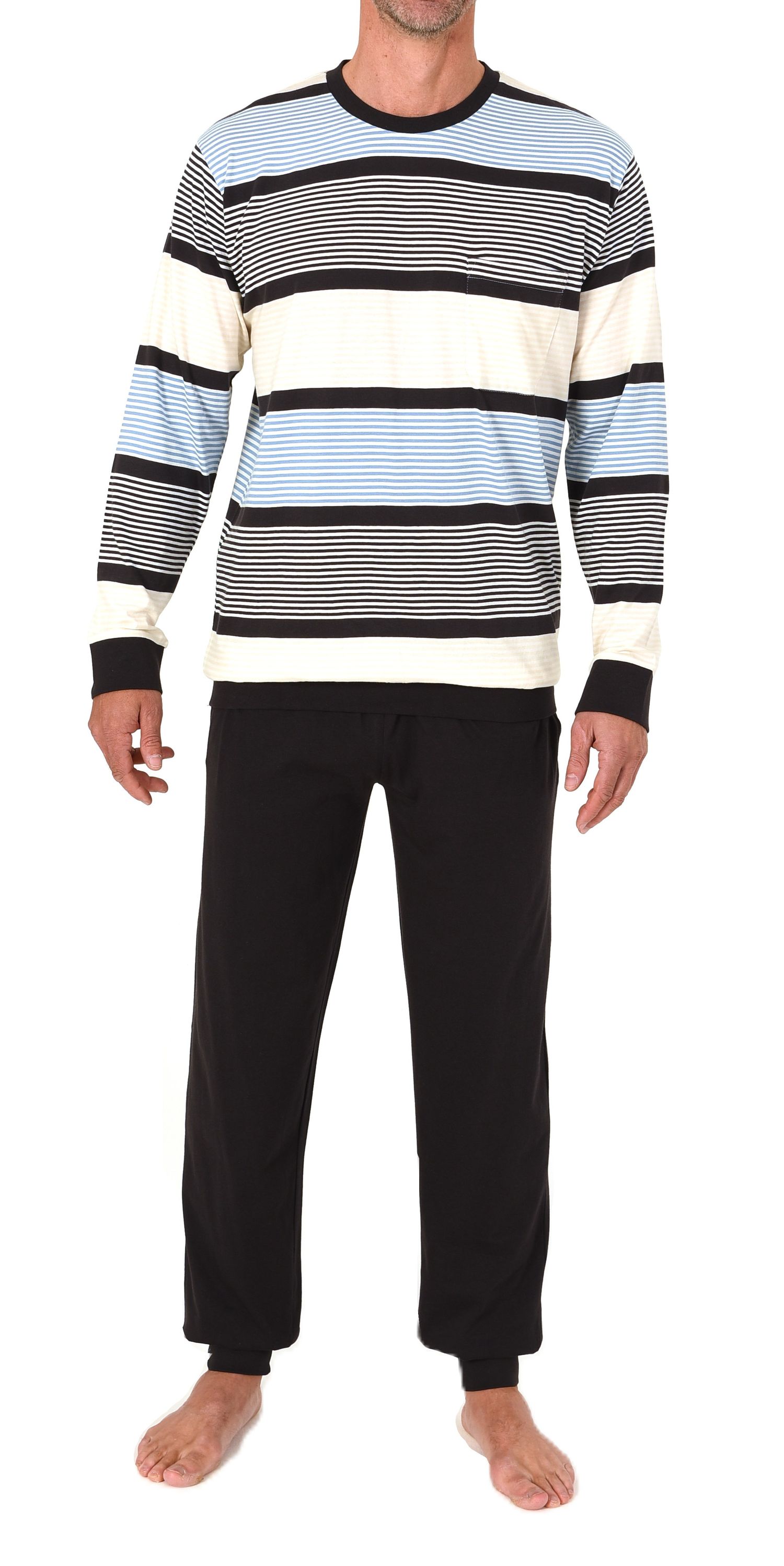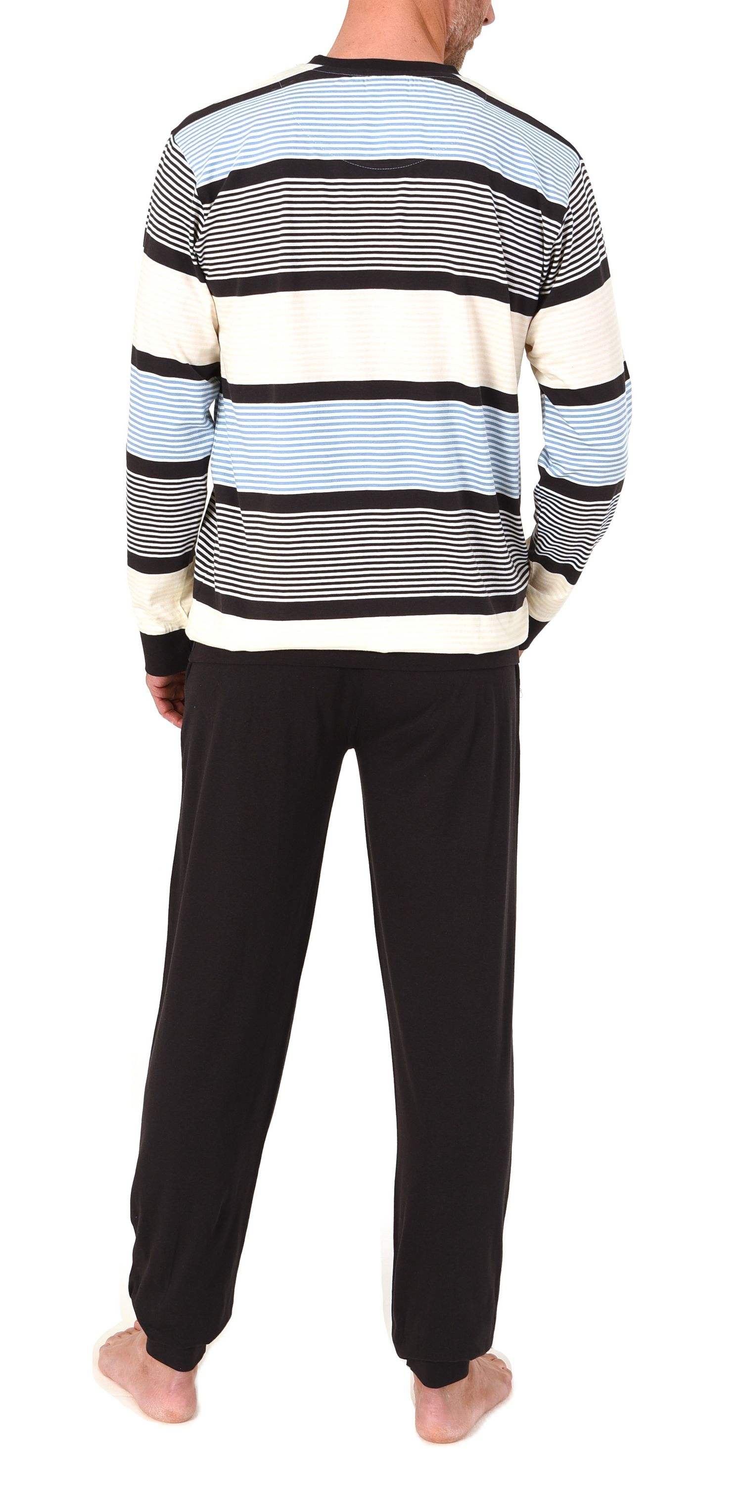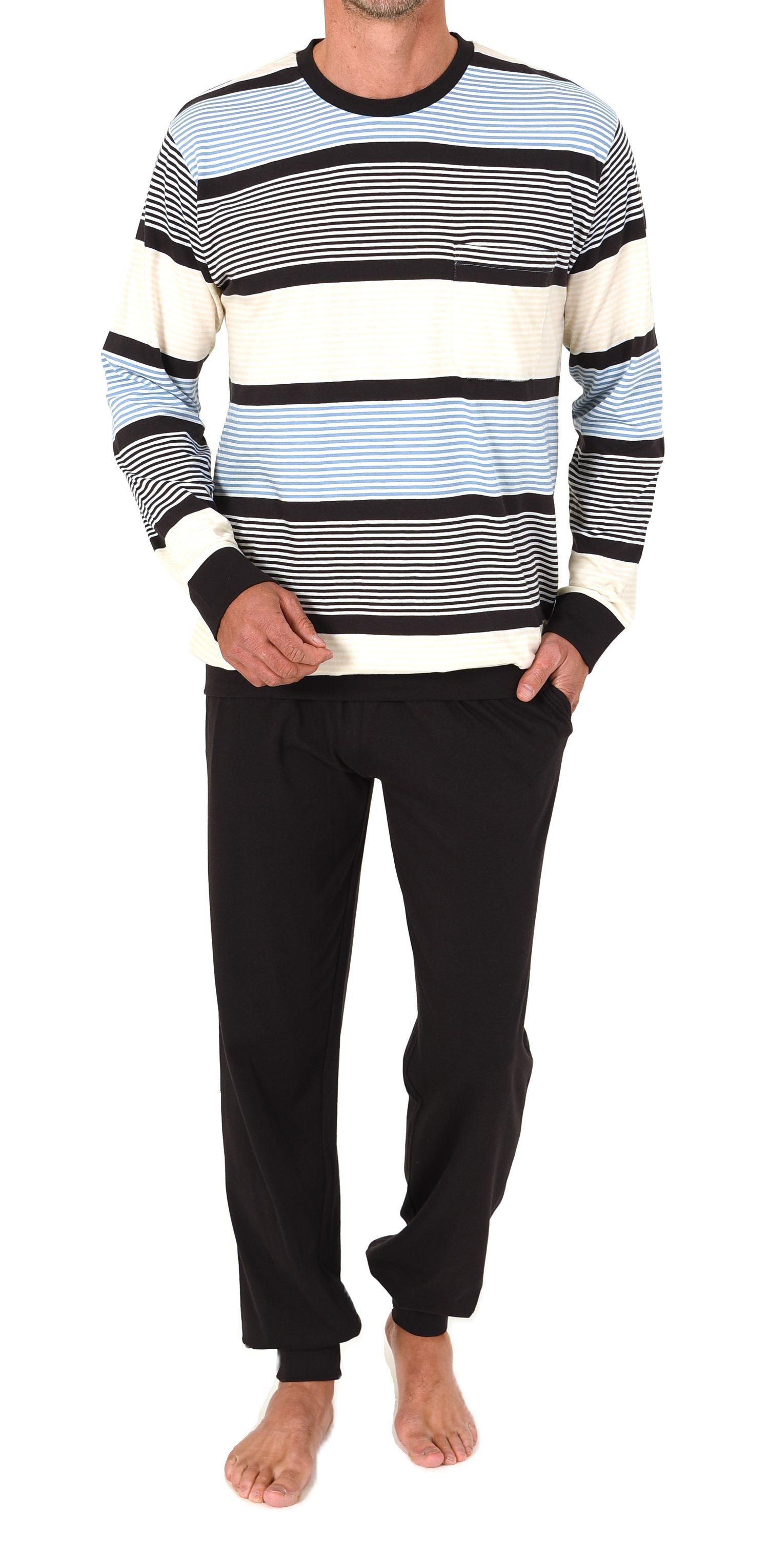 Normann Herren Schlafanzug lang mit Bündchen in edler Streifenoptik - auch in Übergrössen
