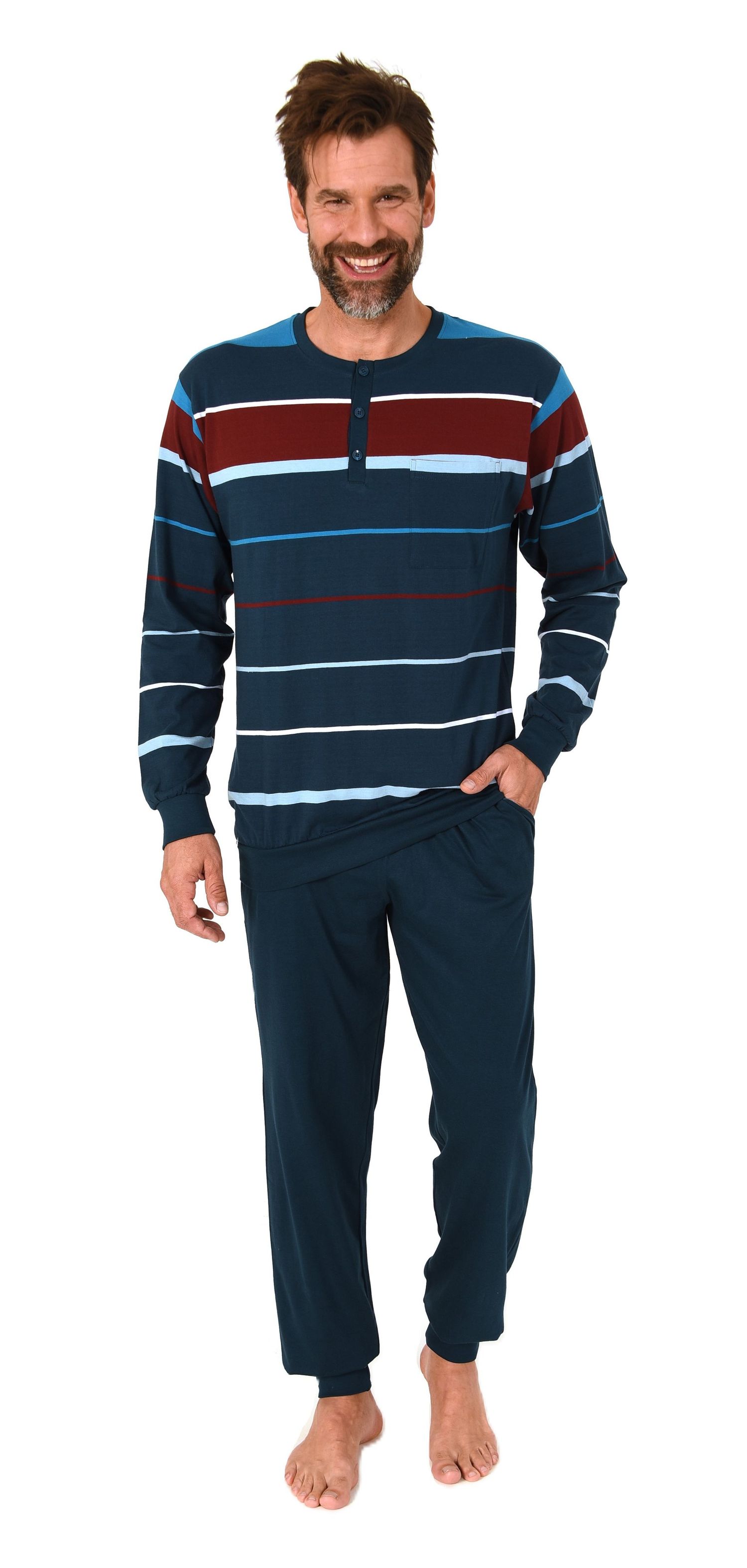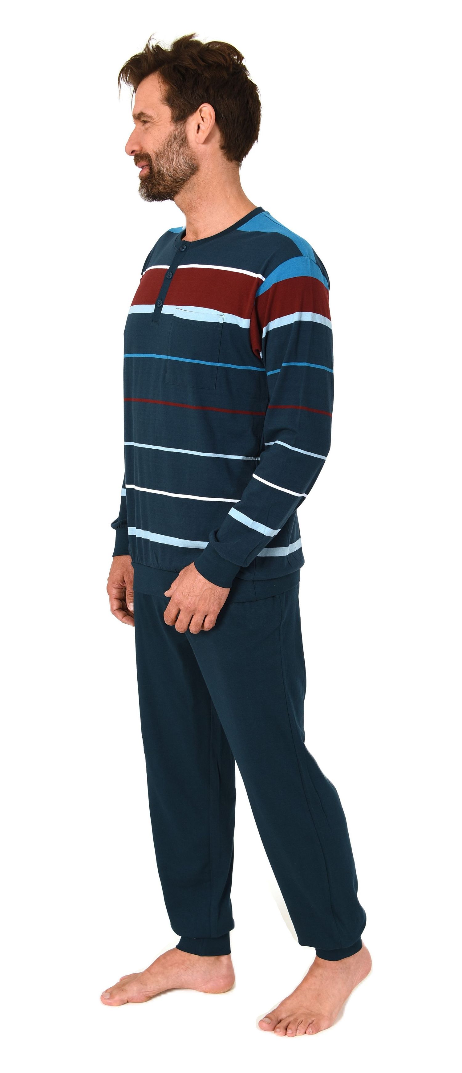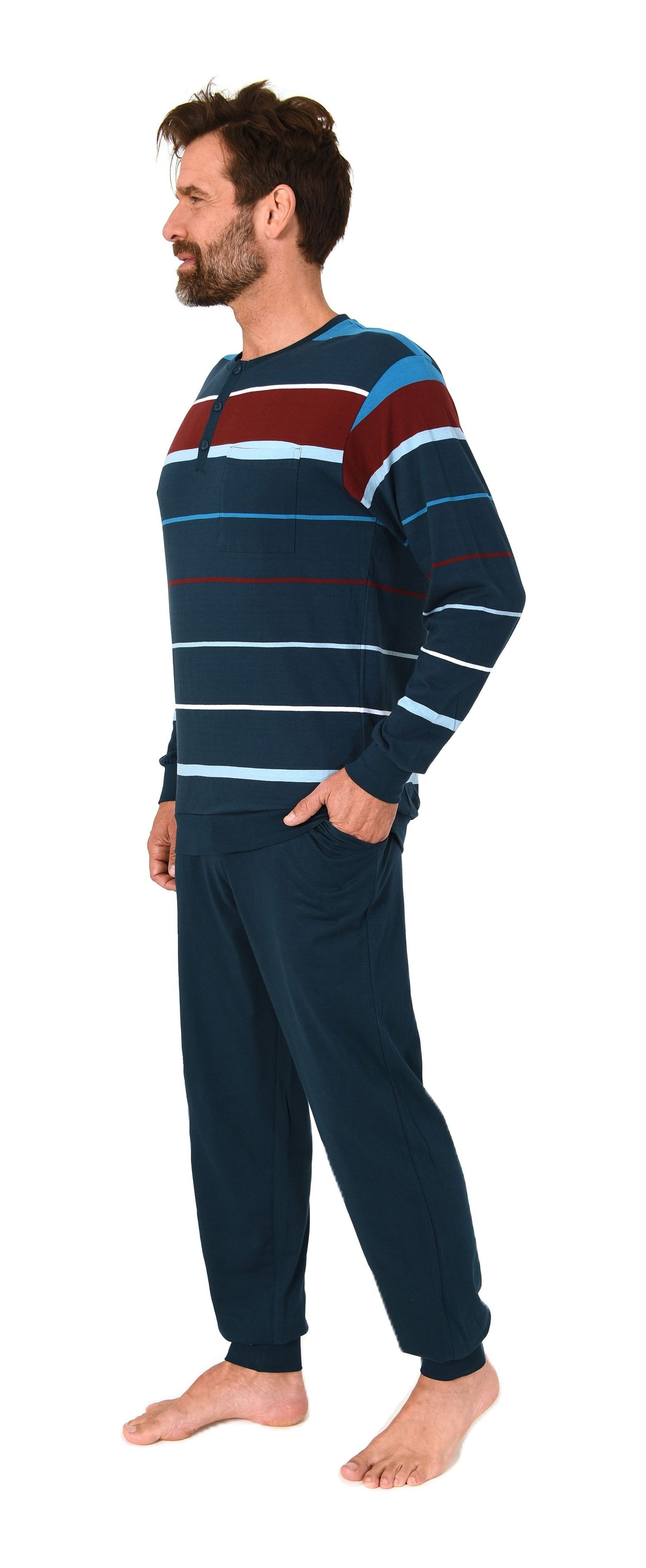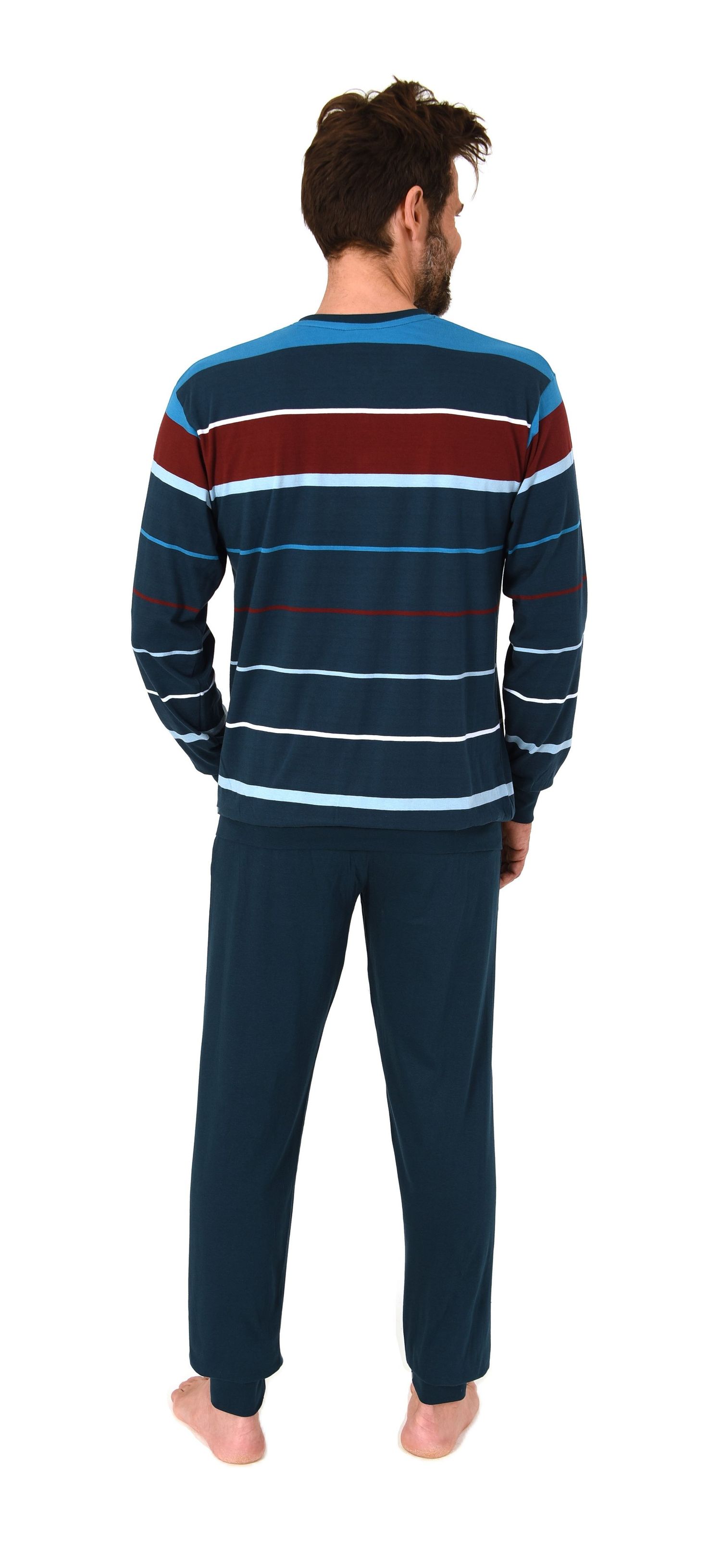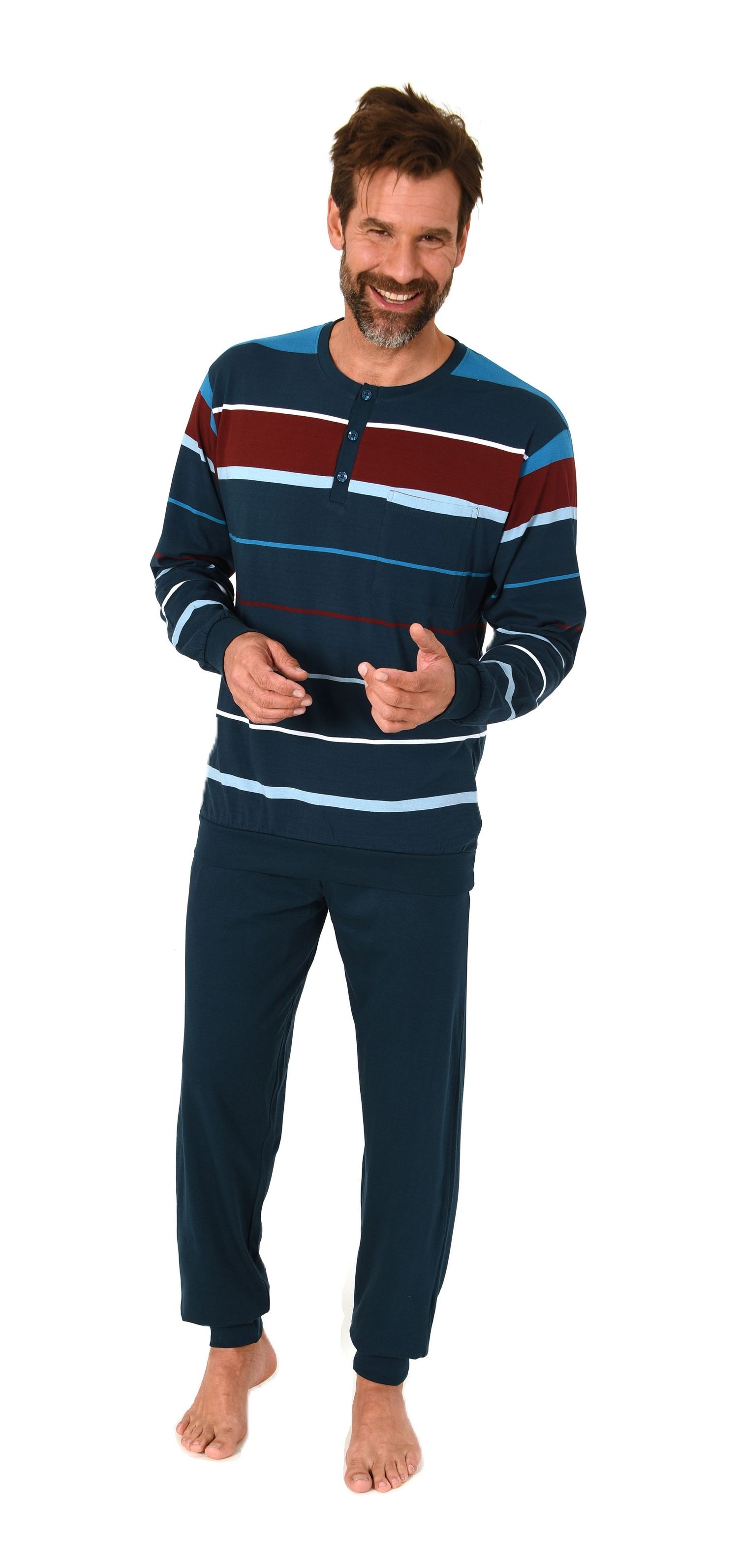 Normann Herren Schlafanzug lang mit Bündchen in Streifenoptik – Pyjama auch in Übergrößen