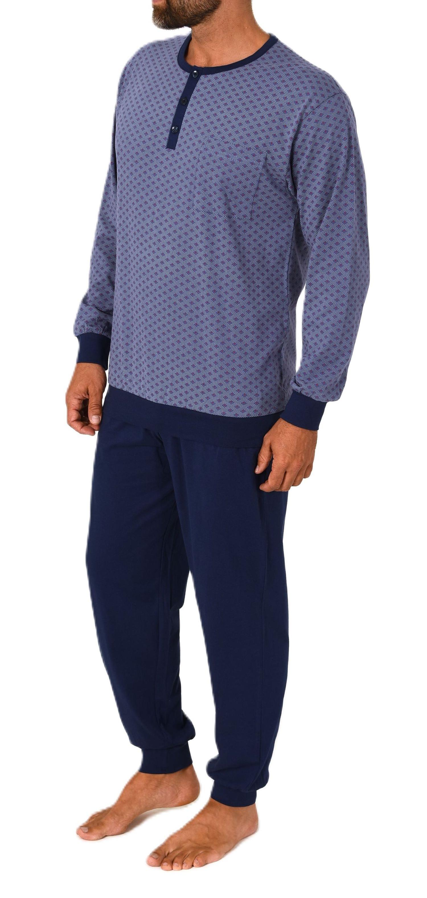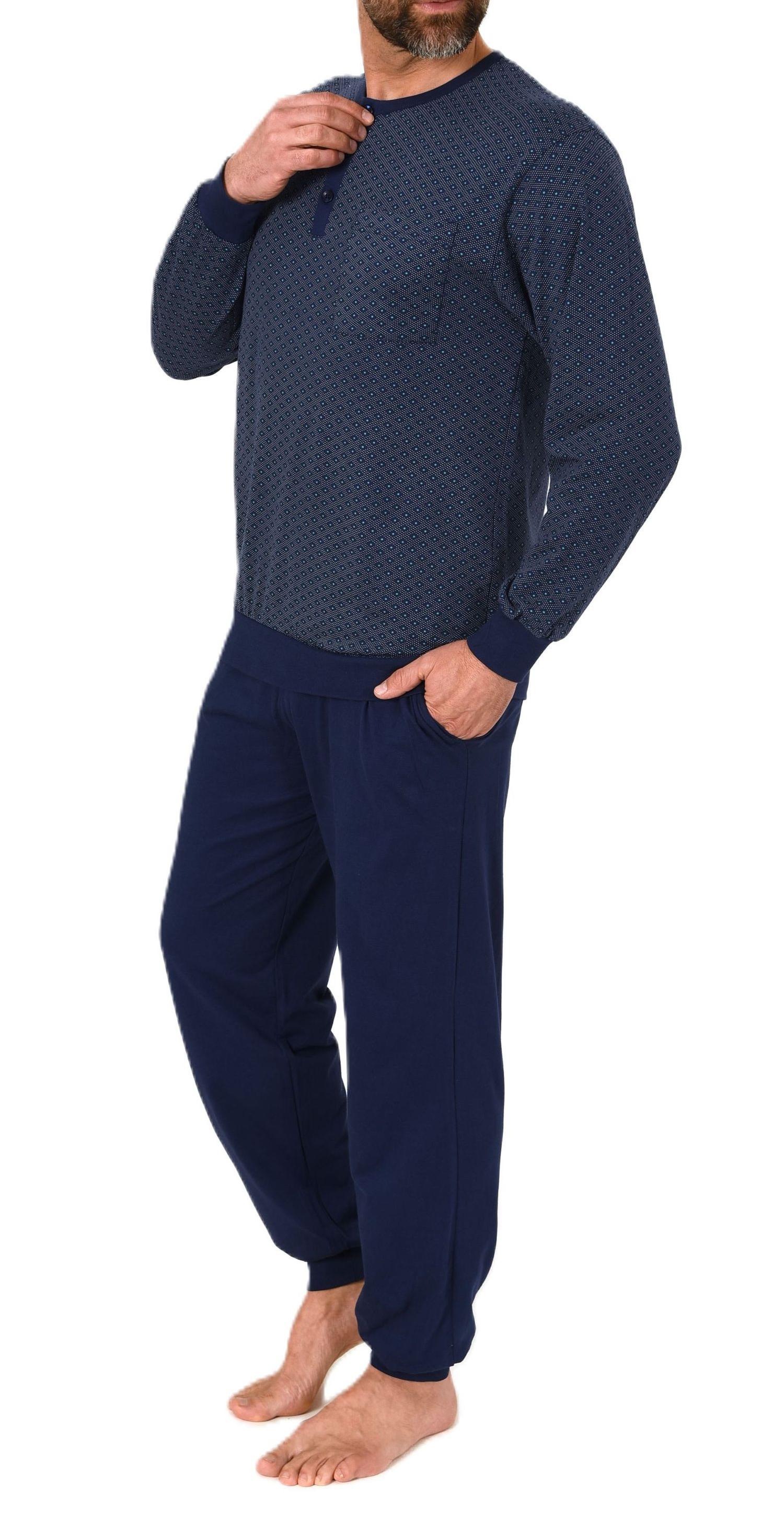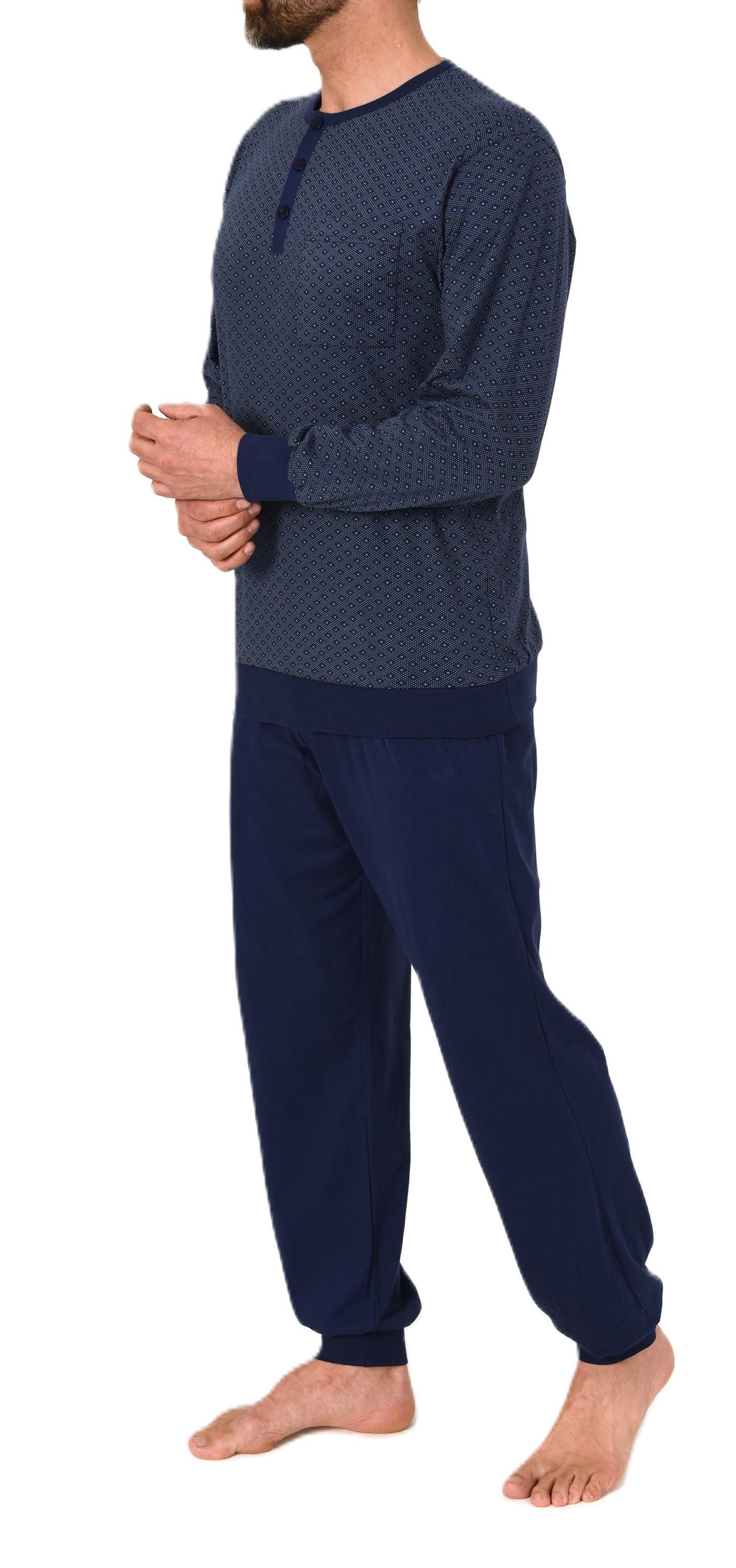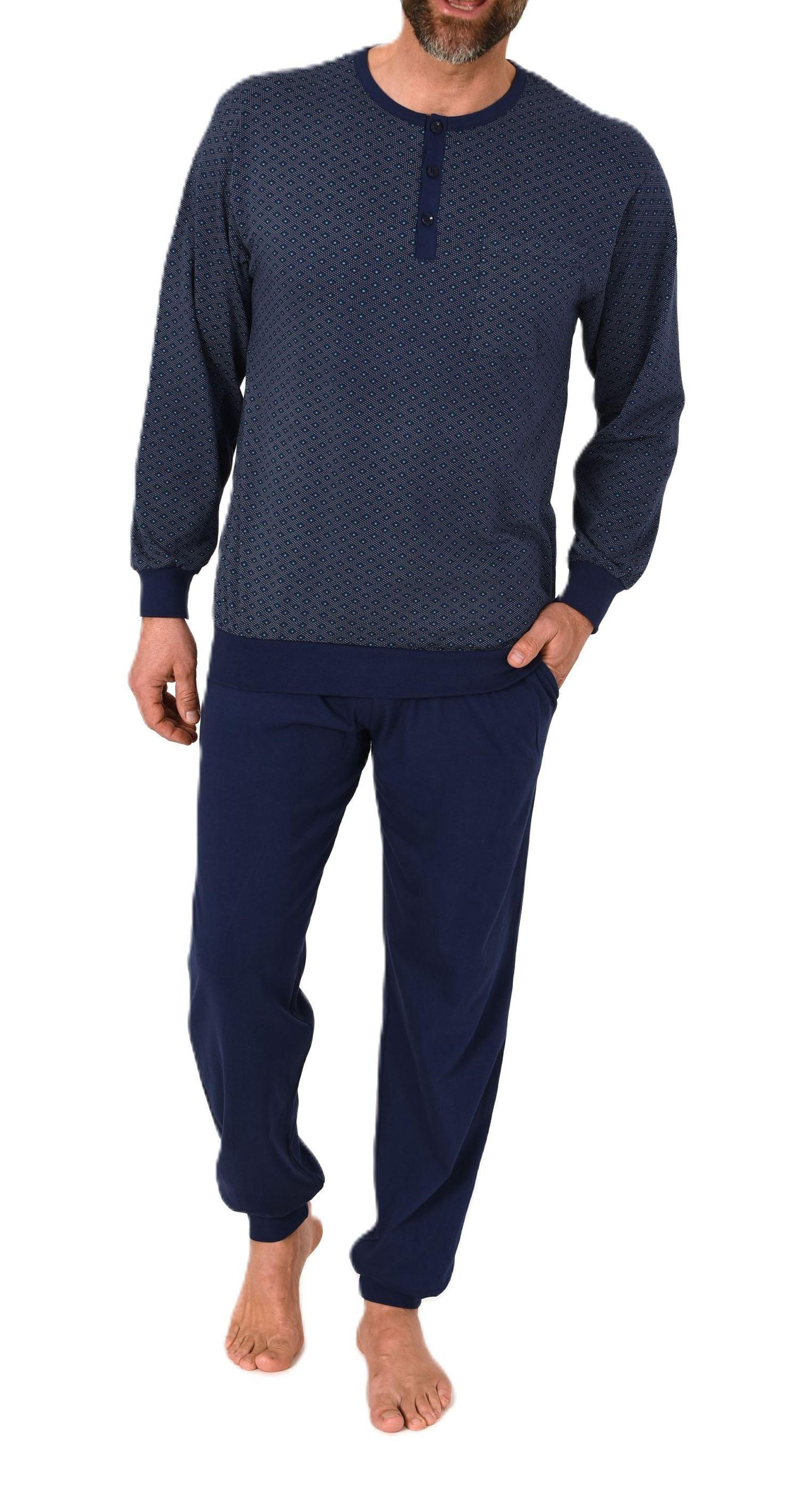 Normann Herren Schlafanzug lang mit Bündchen Pyjama aus 100 % Baumwolle in edler Optik