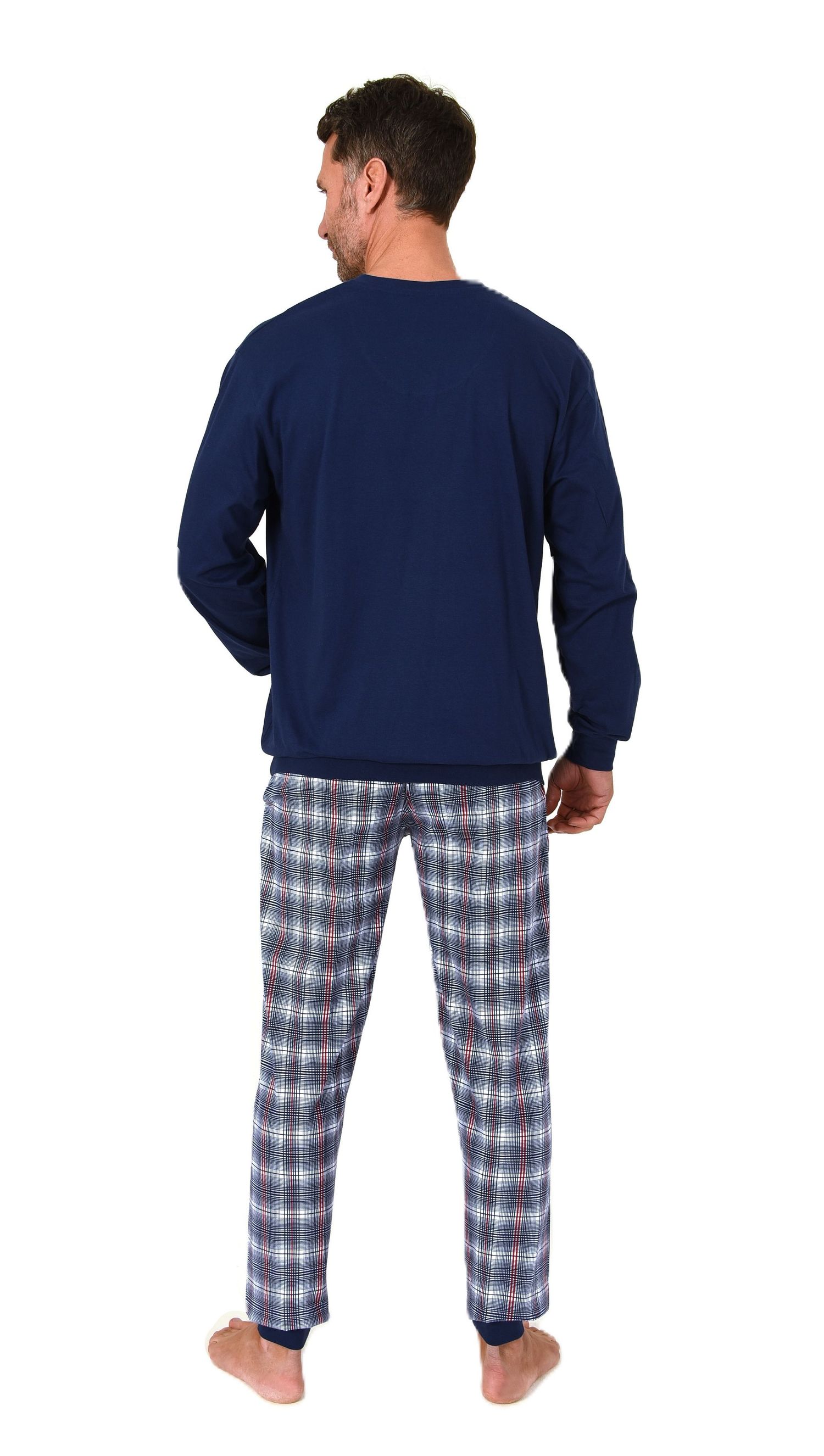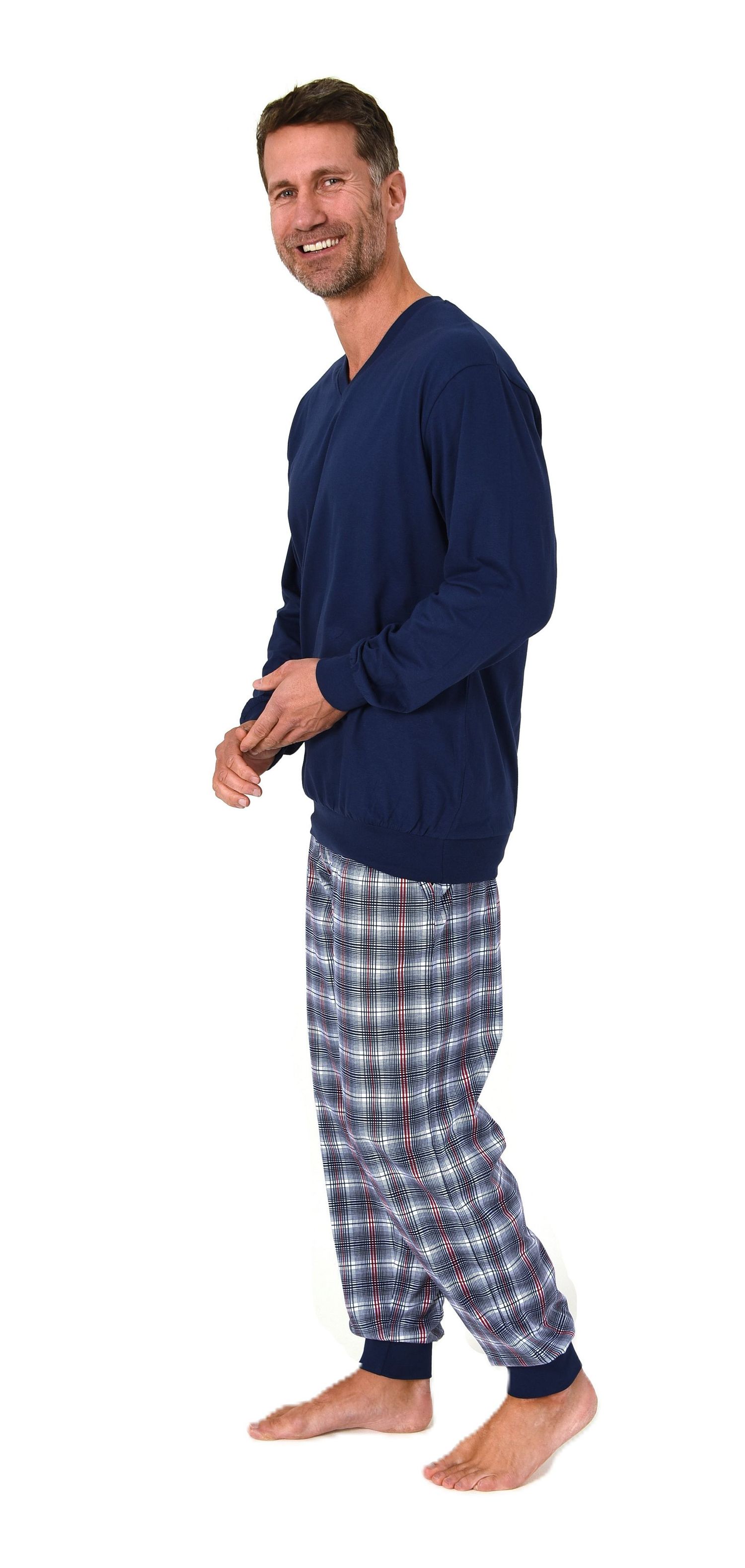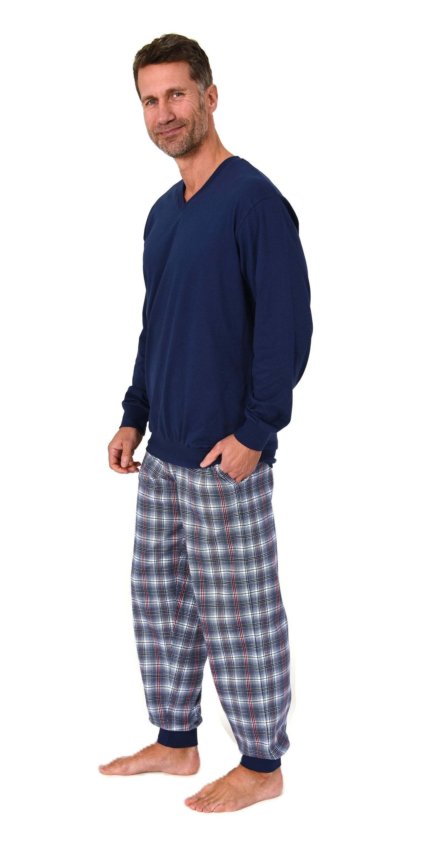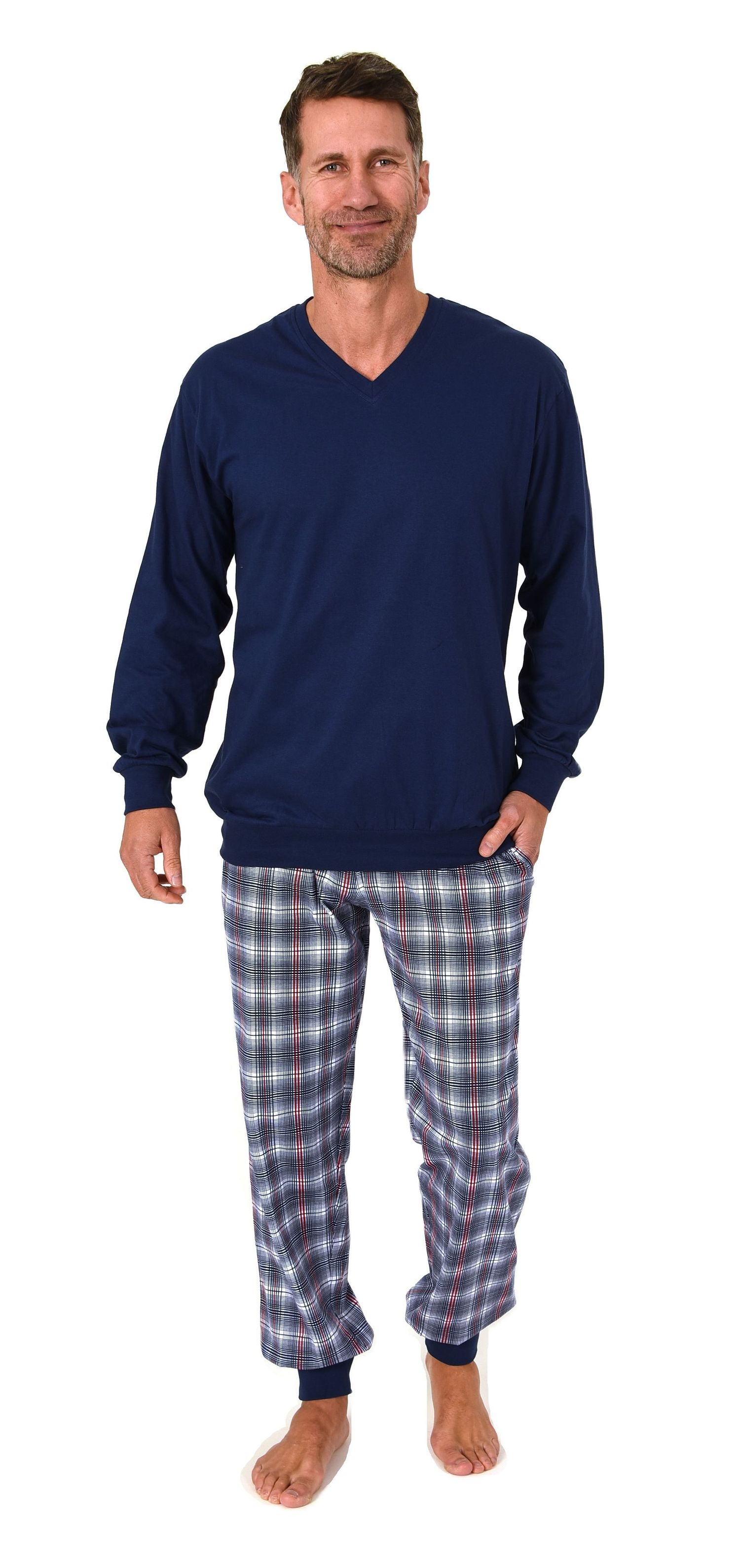 Normann Herren Schlafanzug lang mit Bündchen und Jersey Karo Hose – auch in Übergrößen