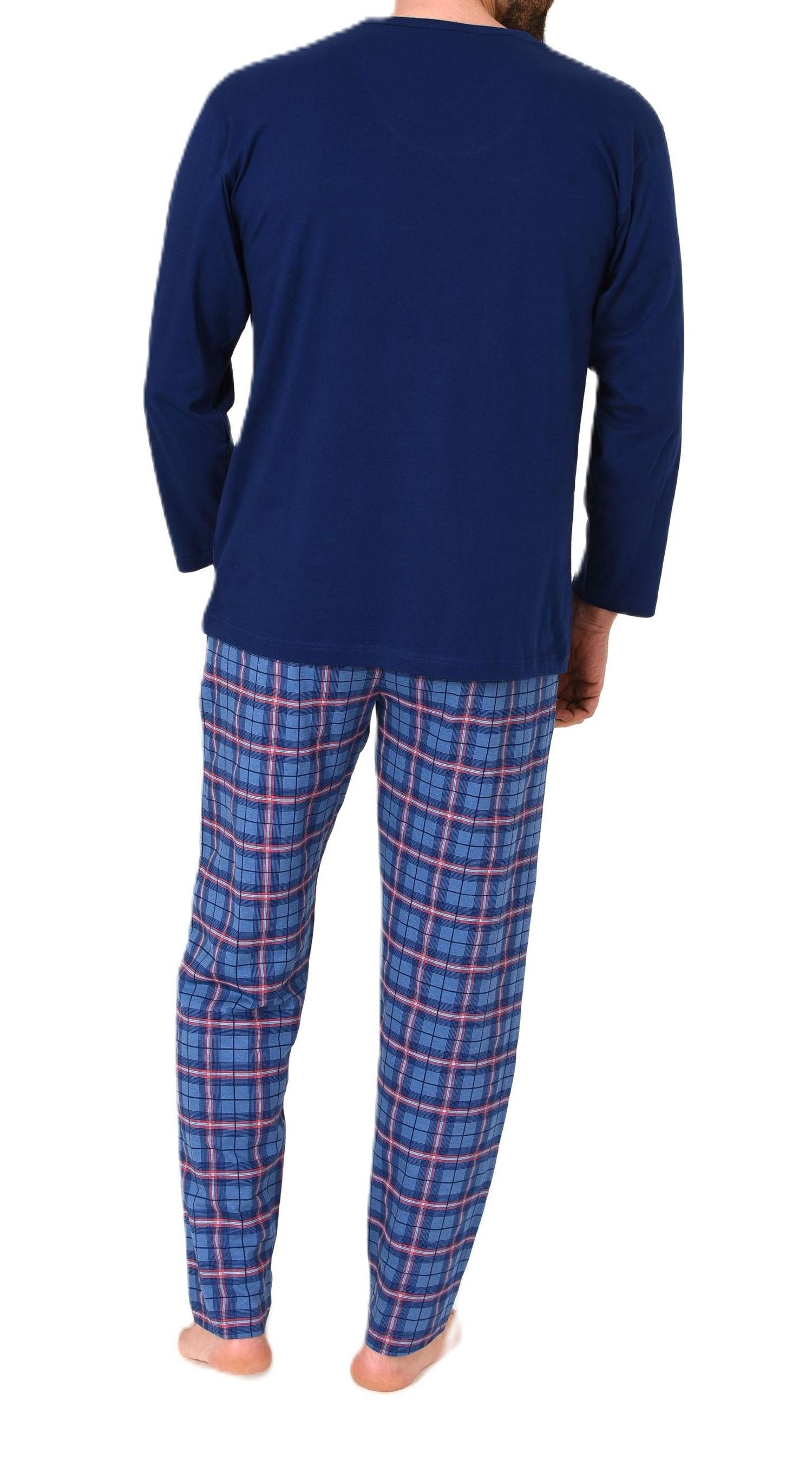 Normann Herren Schlafanzug lang mit Jersey Pyjama Hose in Karo Optik - auch in Übergrößen