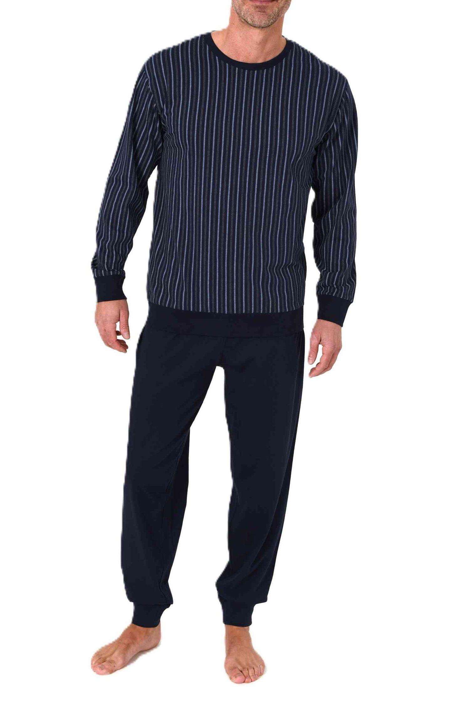 Normann Herren Schlafanzug langarm Pyjama mit Bündchen in zeitloser Minimal Print Optik