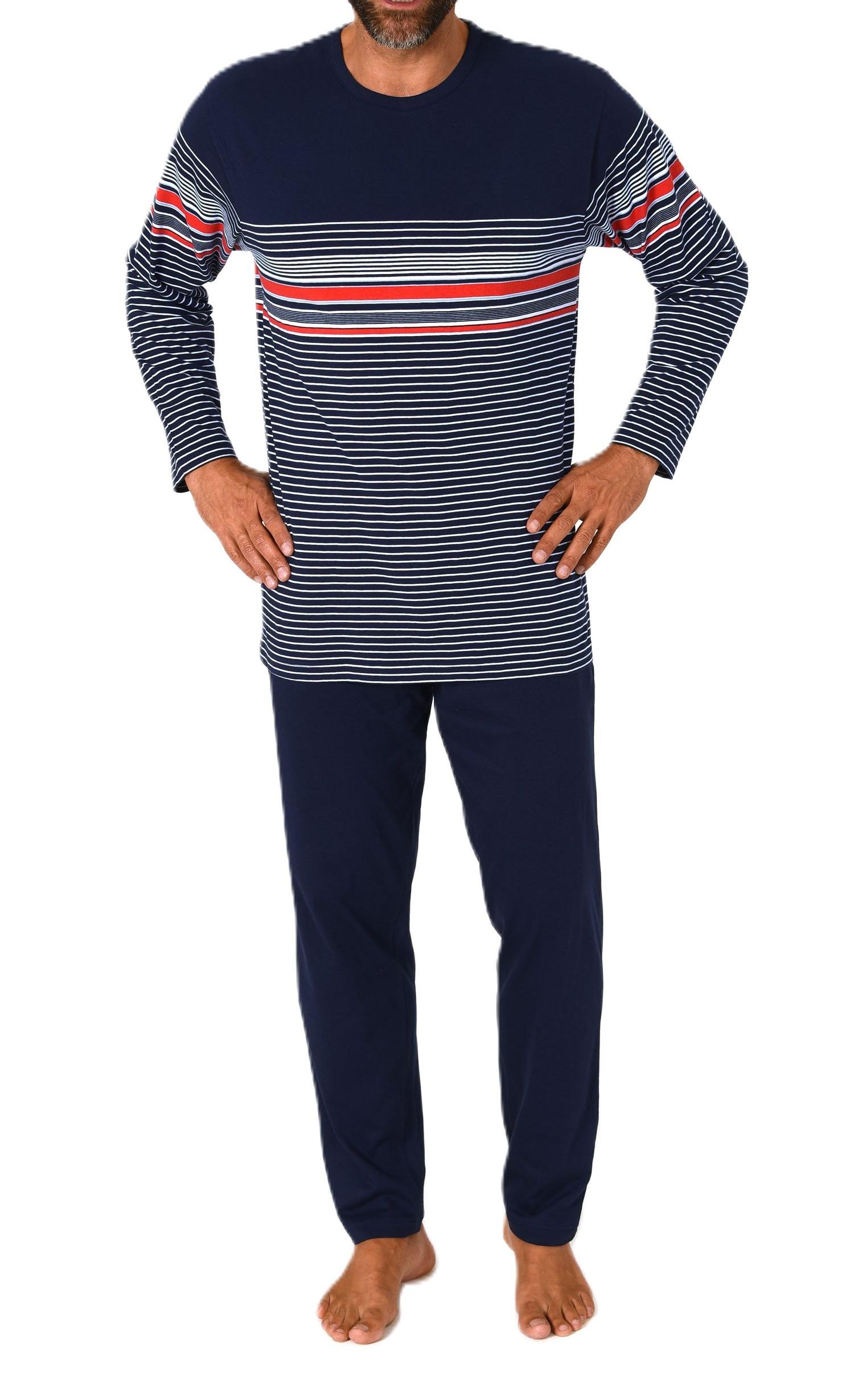 - ELEGANTER STREIFENLOOK: Langarm Herren Pyjama von Normann in einer farbenfrohen garngefärbten Streifenoptik