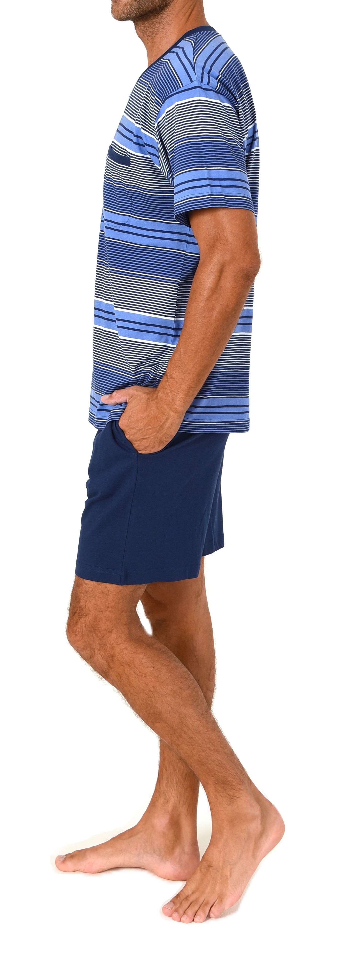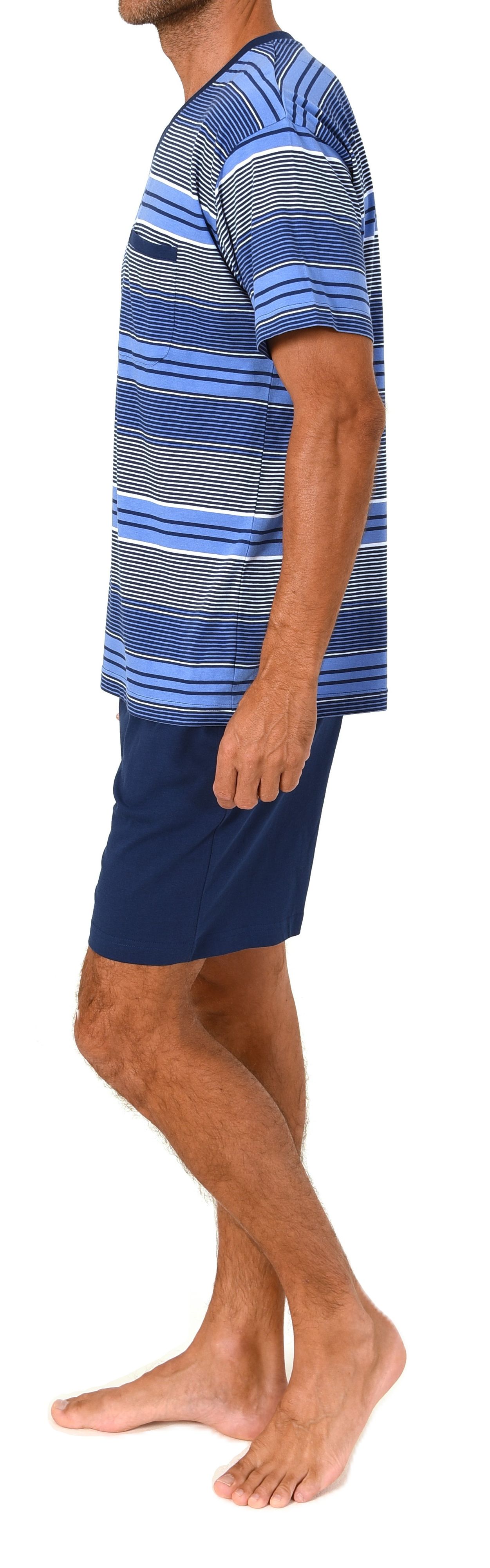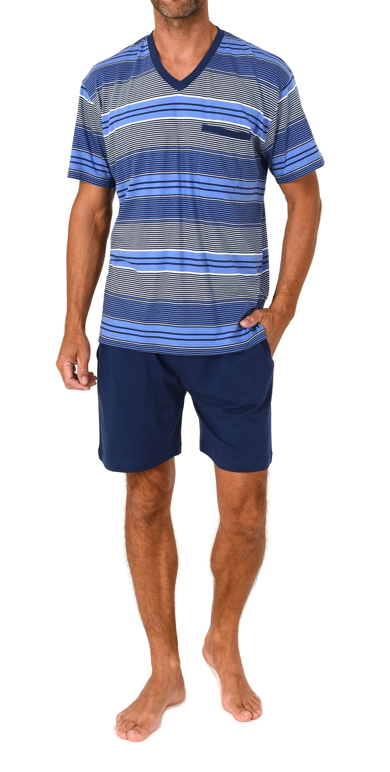 Normann Herren Schlafanzug Shorty kurzarm Pyjama edle Streifenoptik – auch in Übergröße
