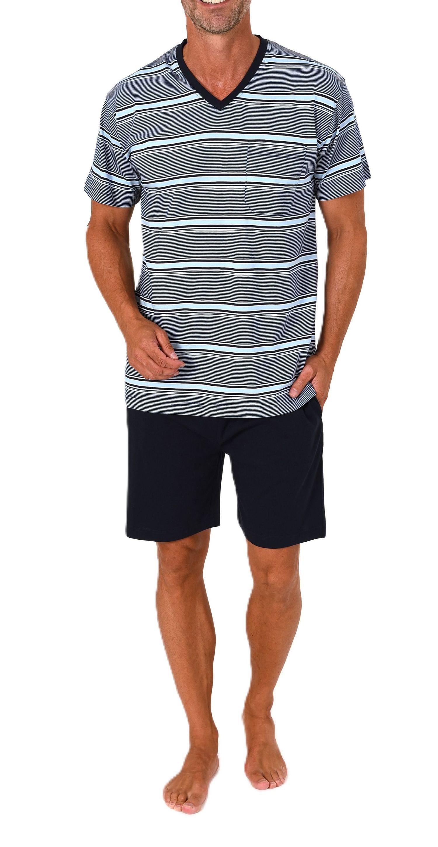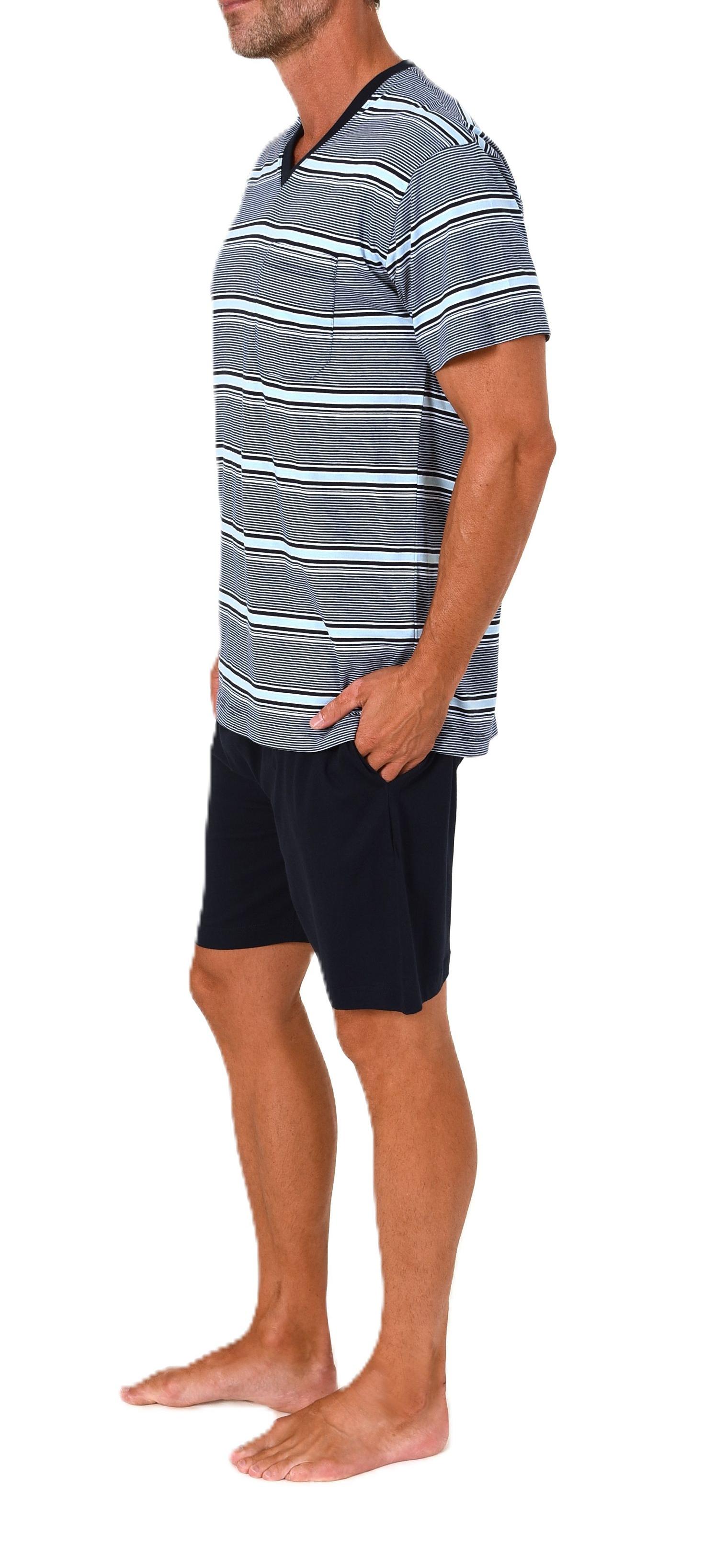 Normann Herren Schlafanzug Shorty kurzarm Pyjama in Streifenoptik – auch in Übergröße