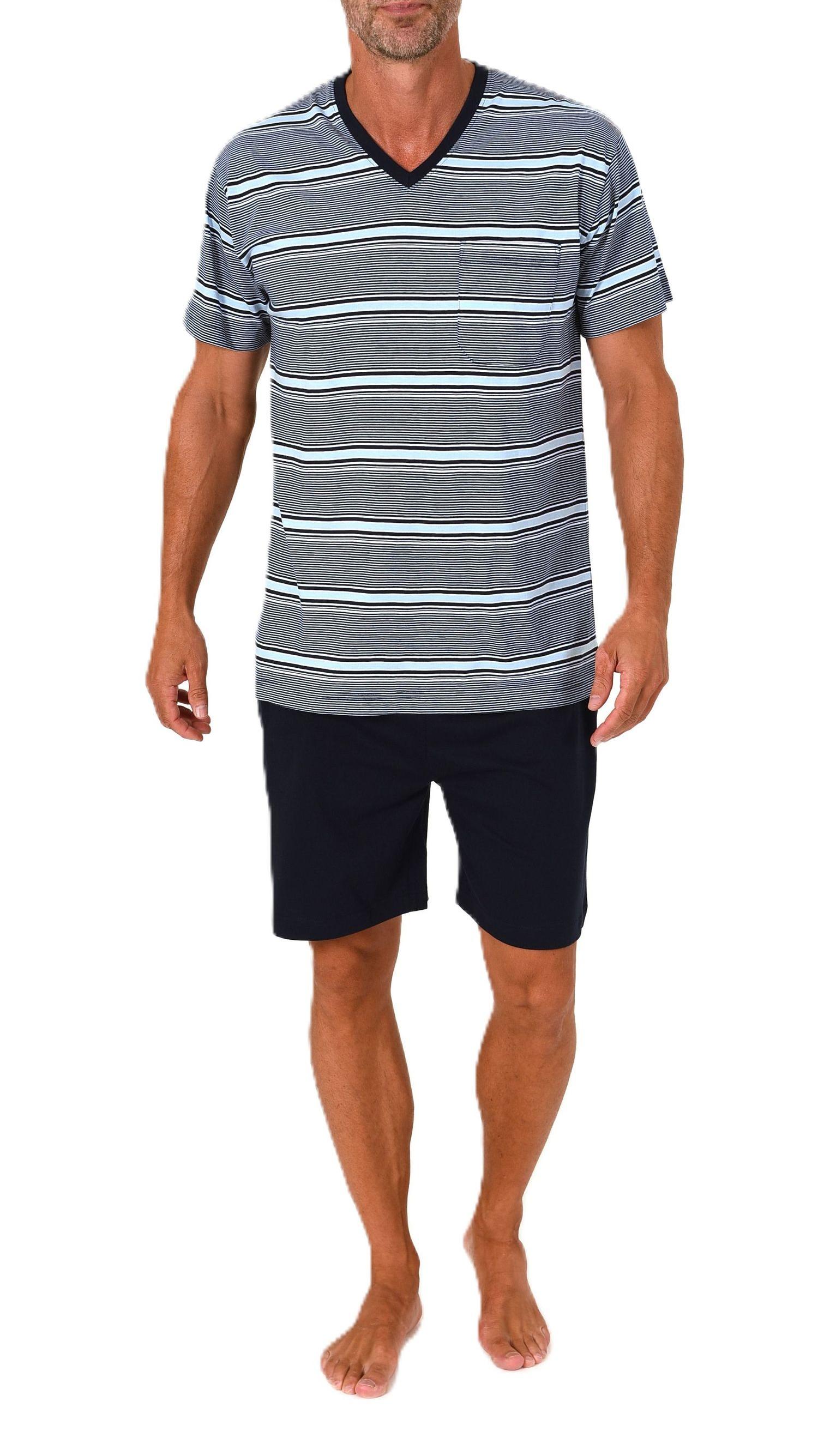 Normann Herren Schlafanzug Shorty kurzarm Pyjama in Streifenoptik – auch in Übergrößee