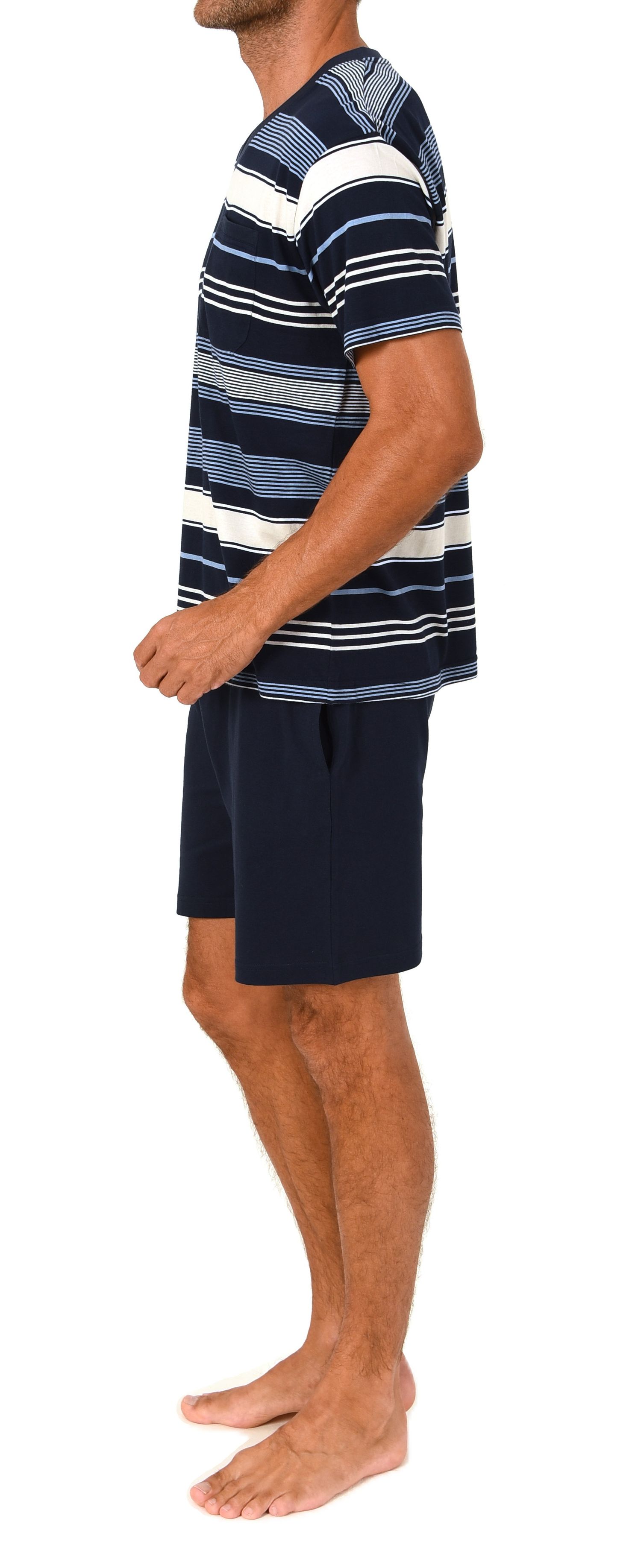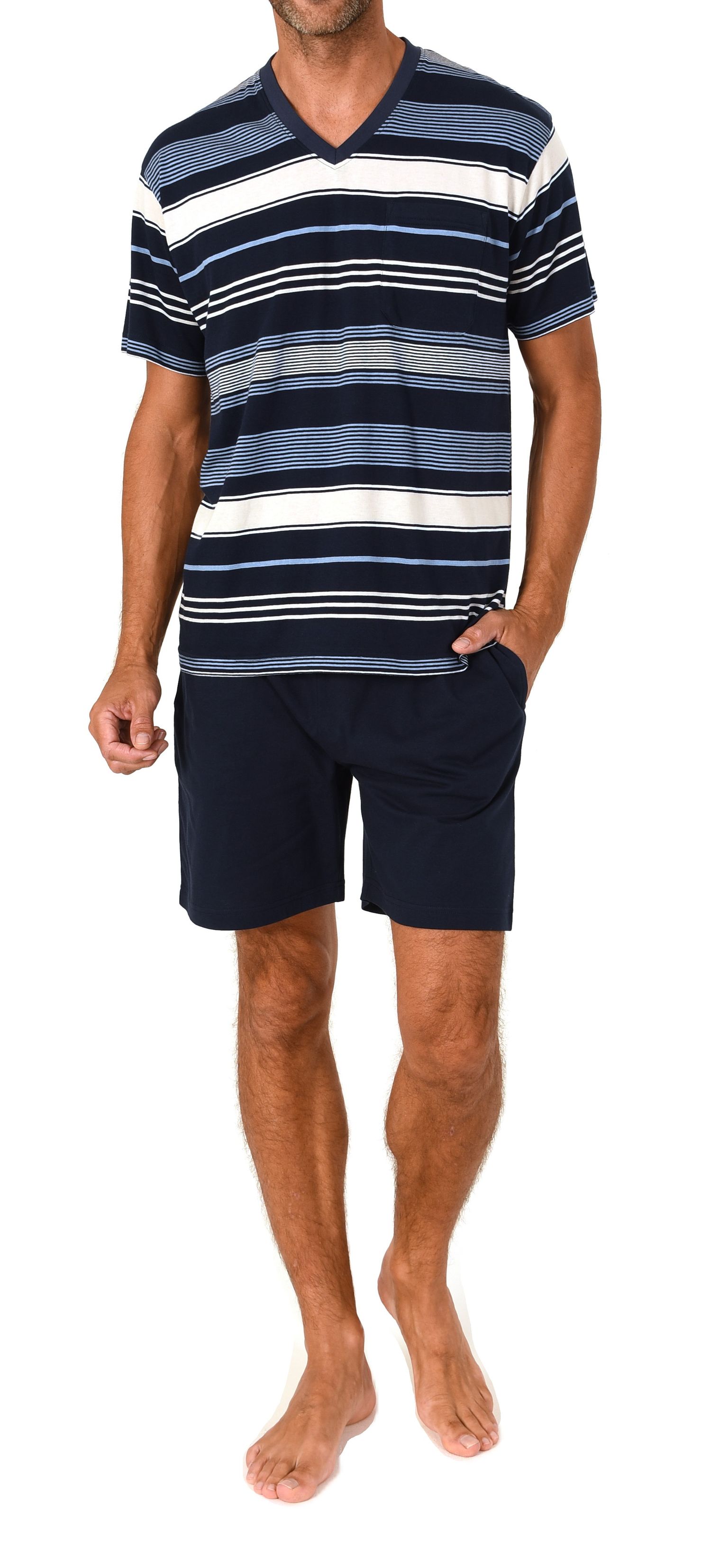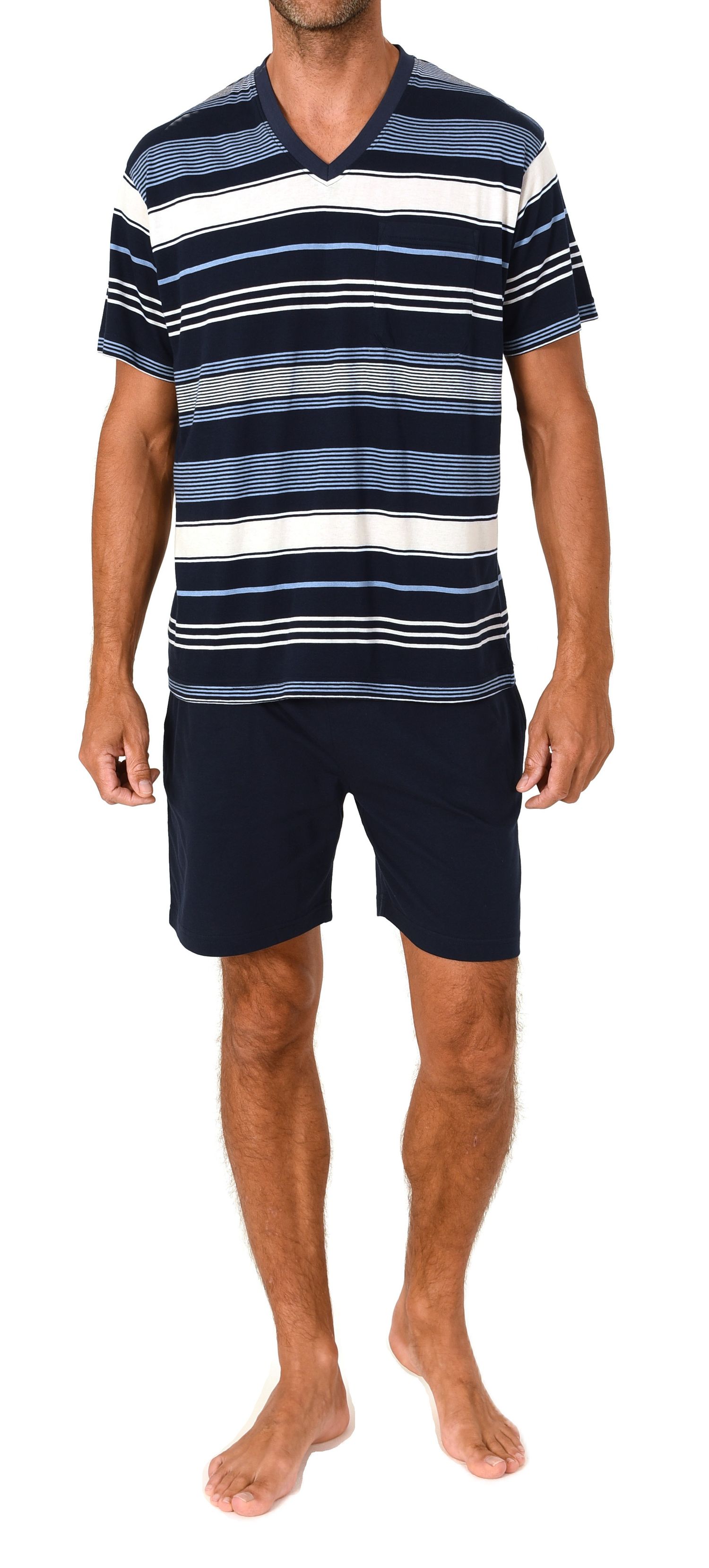 Normann Herren V-Neck Shorty – Gestreifter Sommer-Schlafanzug in toller Optik