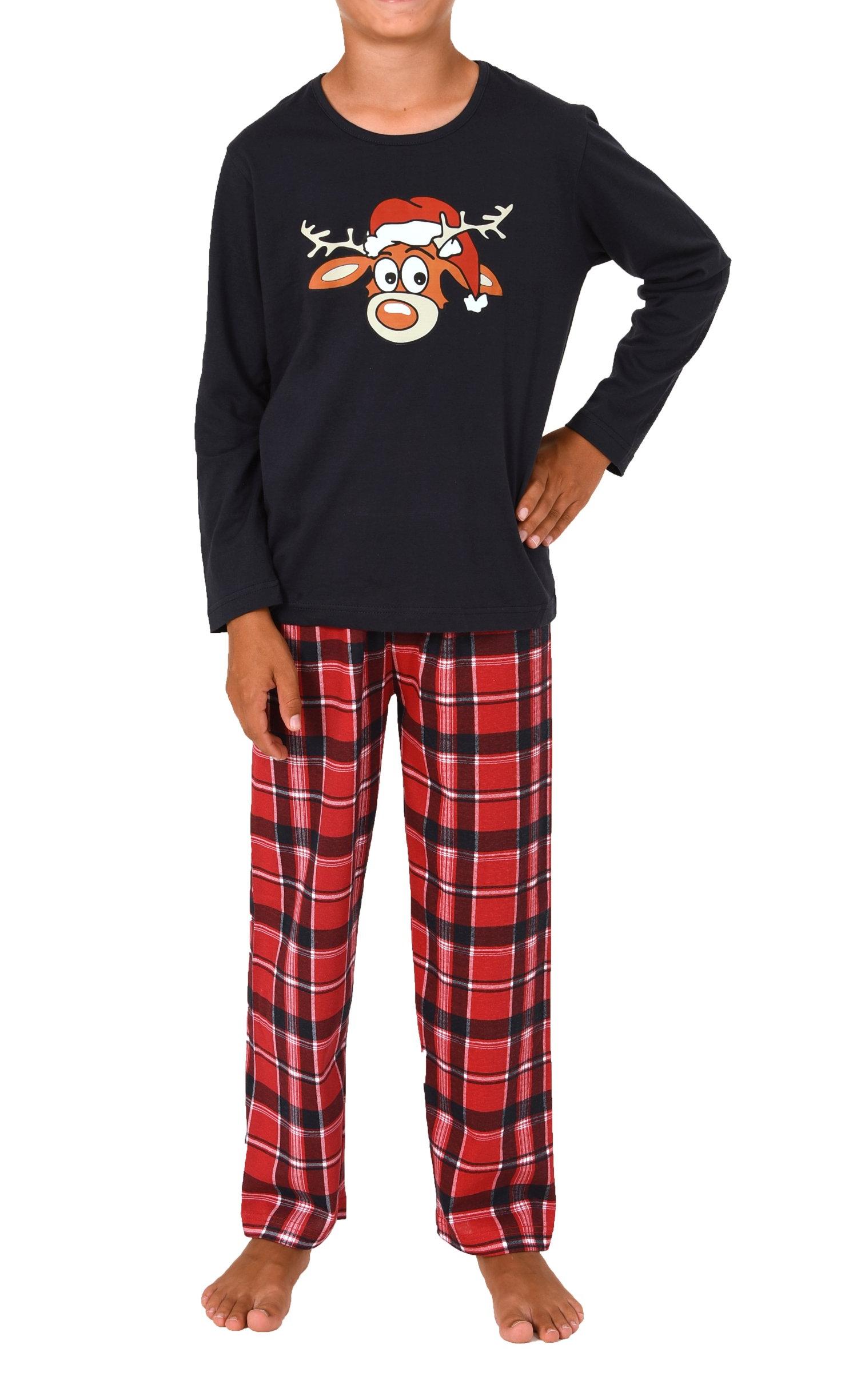Normann Kinder UNISEX langarm Weihnachts Schlafanzug Pyjama mit lustigen Renntier Motiv